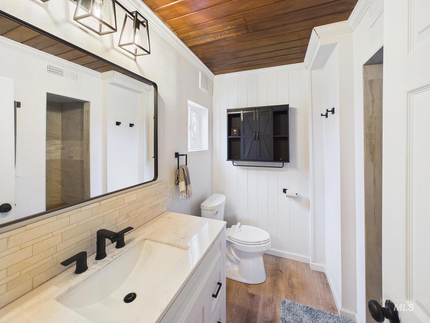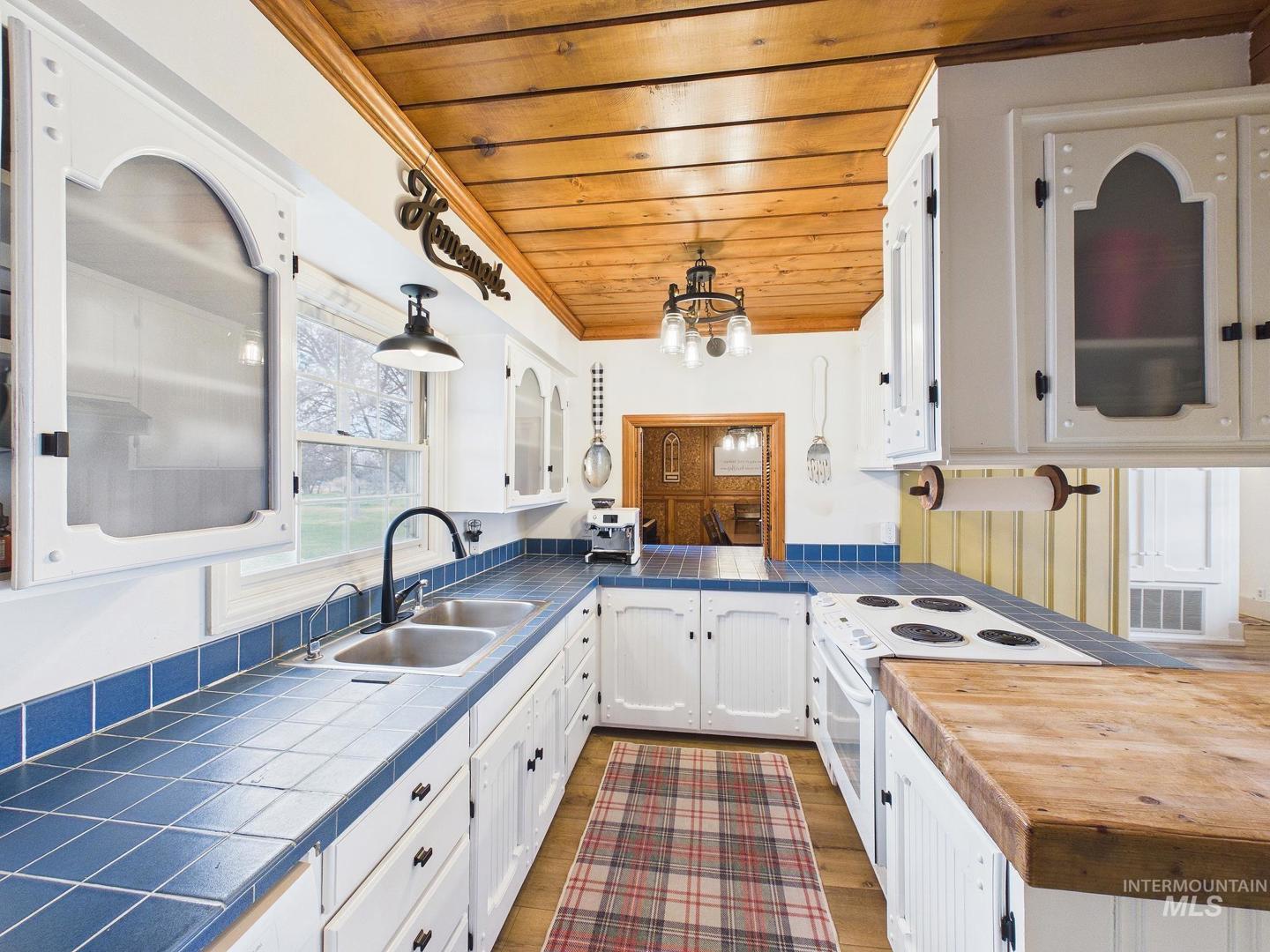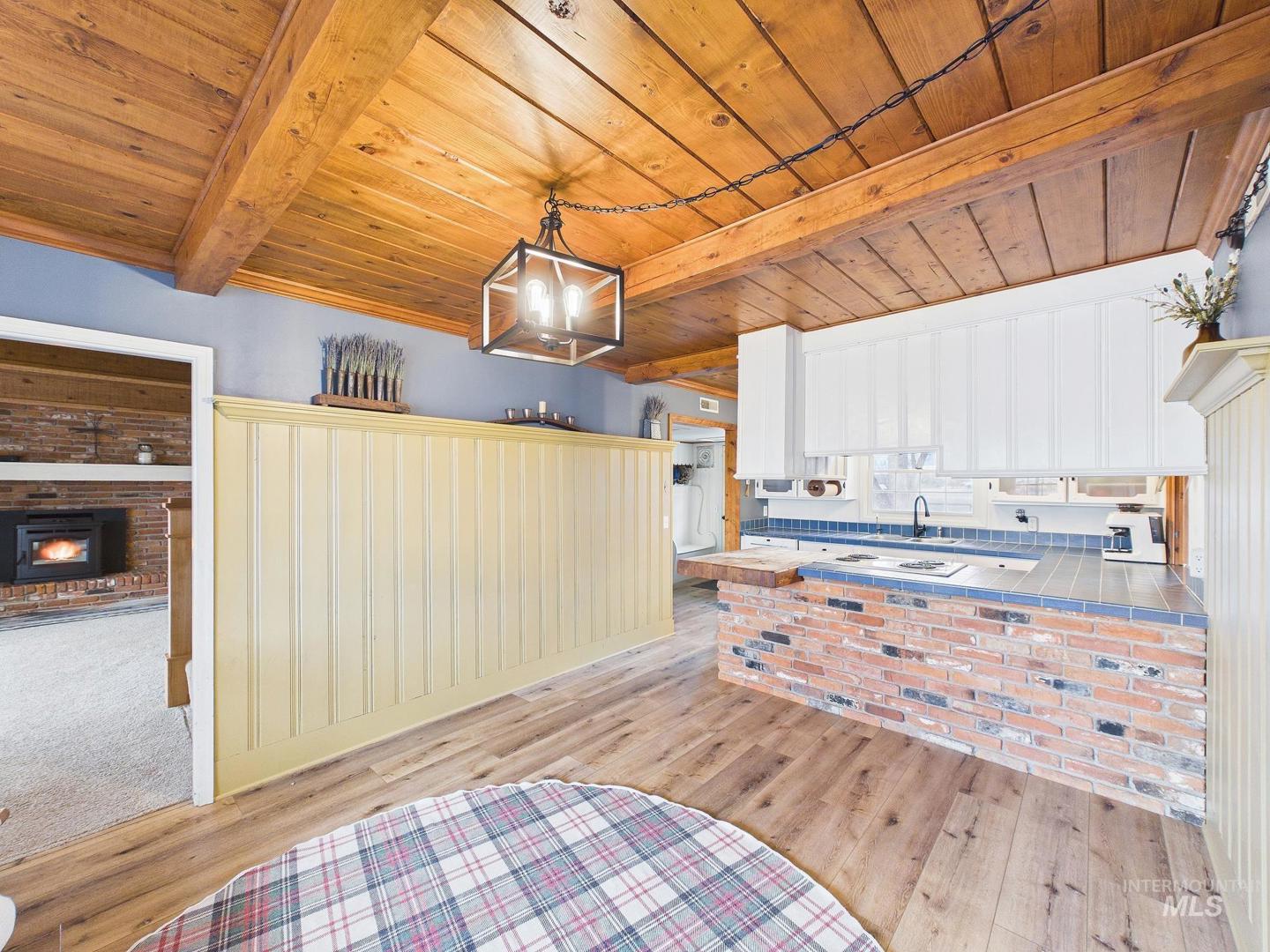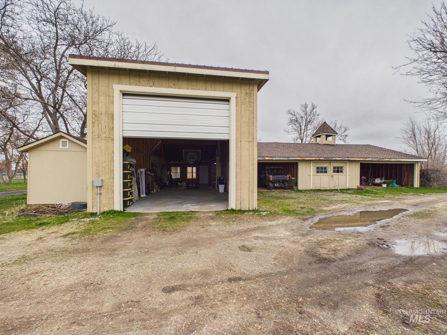Amazing property with endless possibilities. Total of 15.445 acres that can be rezoned into 2 acre parcels. Beautiful ornate wood trimmed walls, open beams and brick accents are present throughout the home. The home heater and AC is only 2 years old. The great room has a brand new pellet stove. The galley style Kitchen boasts a pass through window to the dining area/den area. 3 bedrooms on the main level and 2 more bedrooms upstairs. The 2 acres surrounding the home have a park like setting w/mature trees, flowers and shrubs and views of the Butte. The RV shop w/30amp, mechanics bay and additional 8x14 she-shed. The 4 place carport was built to look like horse stalls. Approximately 10 flat irrigated acres behind the house.