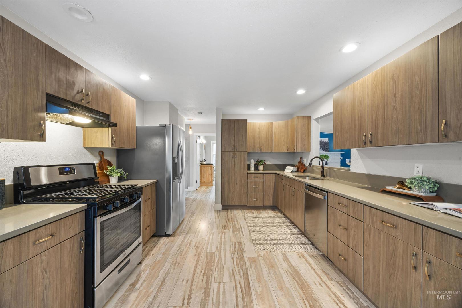 NO HOA and located in the coveted Historic East End! This beautifully updated home offers over 3,100 sq ft, 5 bed, and 2 baths in one of Boise’s most sought-after neighborhoods. The expansive great room—just under 700 sq ft—is filled with natural light from abundant windows and features LVP flooring, a new Blaze King fireplace insert, and a custom granite-topped buffet, creating the perfect space! A main-level bedroom adds flexibility for guests or home office use. The gourmet kitchen boasts charming cabinetry, SS appliances, and a 5-burner gas range. Glass French doors open to an outdoor oasis featuring a raised paver patio, flagstone seating area, fresh sod, and multiple garden boxes—designed for entertaining, play, and relaxation. New fencing provides privacy and security, along with bike storage and a shed. Alley access leads to a convenient parking pad, with P&Z approval for a two-car pad, allowing future construction of a carport, garage, ADU, or RV parking. The upper level includes a spacious primary bedroom, full bath, and second bedroom. The lower level offers two additional bedrooms and over 250 sq ft of storage. Enjoy top-rated schools and an unbeatable location—near St. Luke’s, Downtown Boise, Boise River, Greenbelt & BSU. Just minutes from Micron, Hyde Park, shopping, dining, foothill trails & recreation!