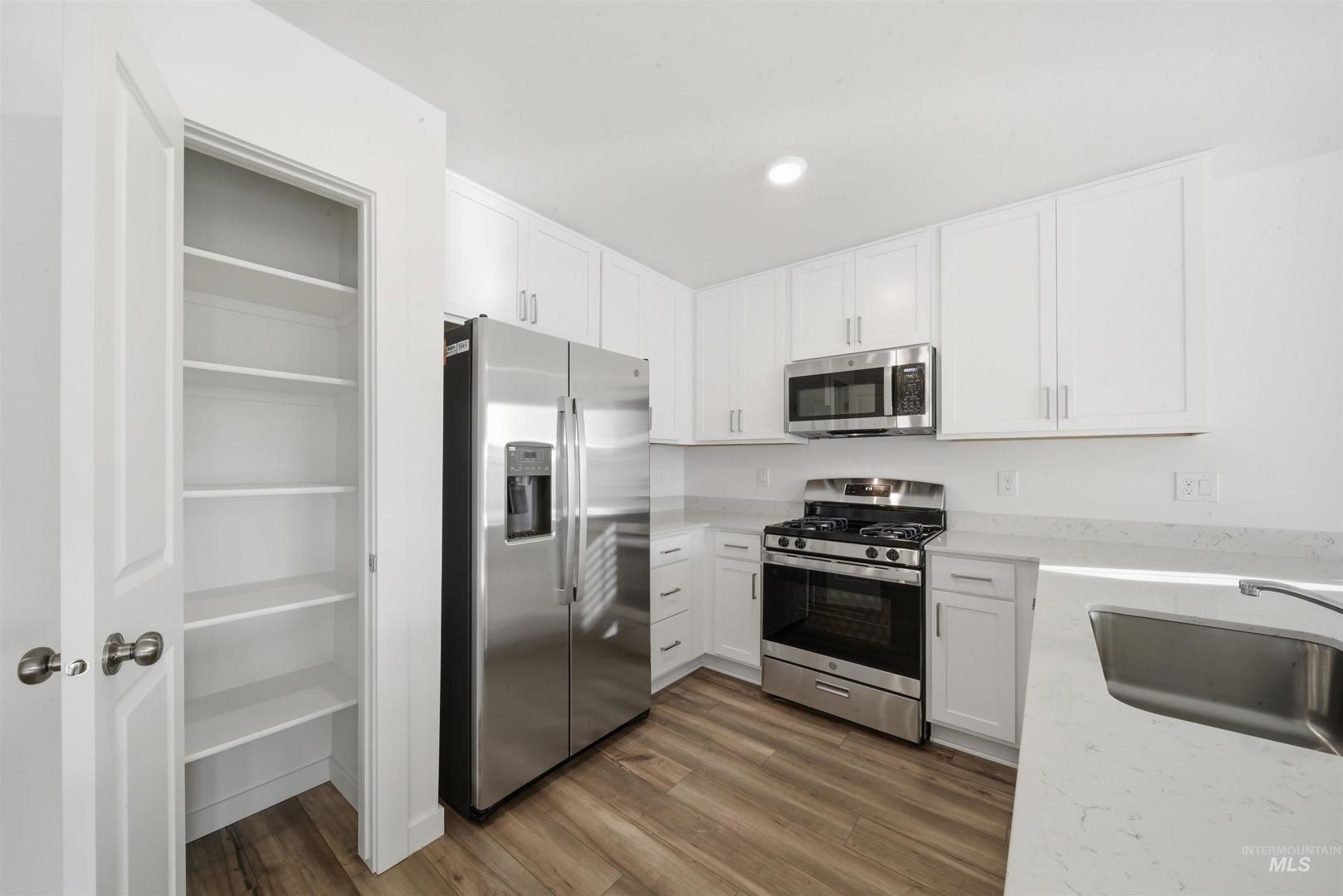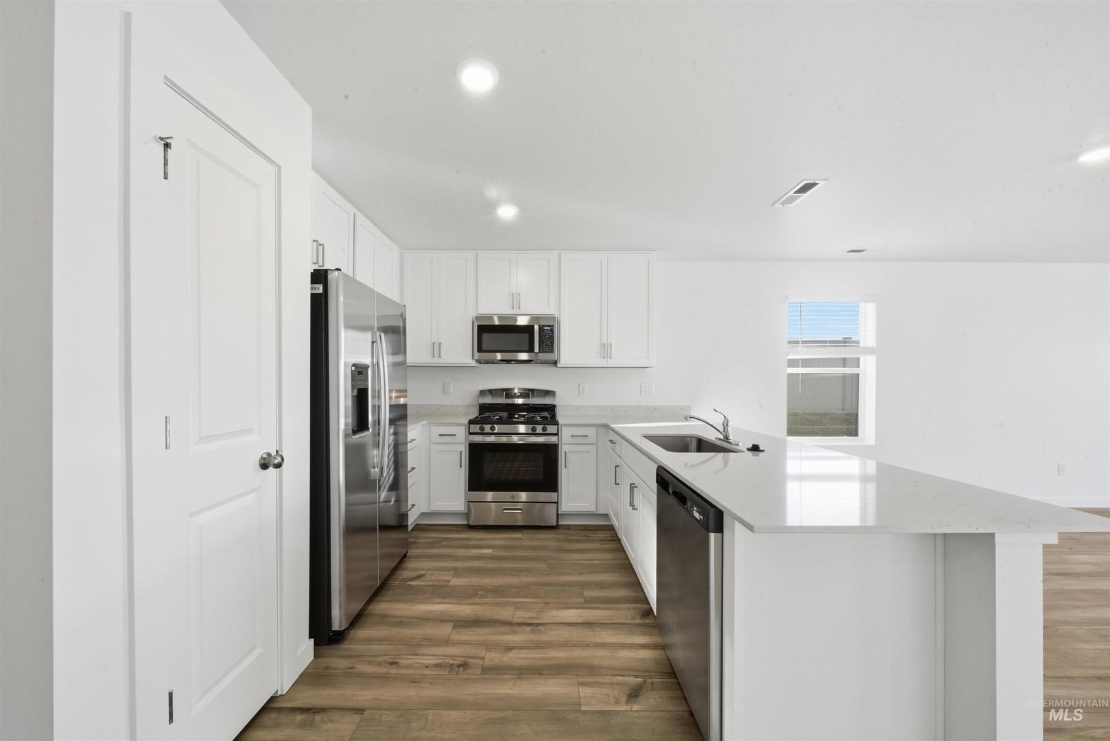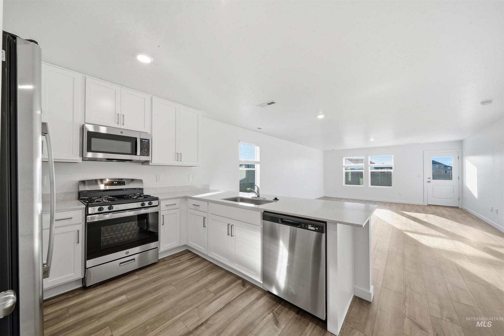 Welcome to Sweetwater Glen and this beautifully designed single-story home providing 3 bedrooms and 2 full baths - everything a modern home needs in a smart, functional layout. At the heart of the home, the open-concept living area brings the living room, dining space, and kitchen together in one bright, welcoming space making it perfect for everyday living and entertaining. The kitchen features quartz countertops, white Shaker-style cabinetry, and stainless-steel appliances, with luxury vinyl plank flooring throughout the house. The two secondary bedrooms are located at the front of the home and share a hall bath, while the private primary suite is positioned for comfort and separation. Enjoy the community green spaces and walking paths, a tot lot, clubhouse, and a community pool—plus the convenience of being just minutes from downtown Nampa and Meridian. Thanks for viewing!