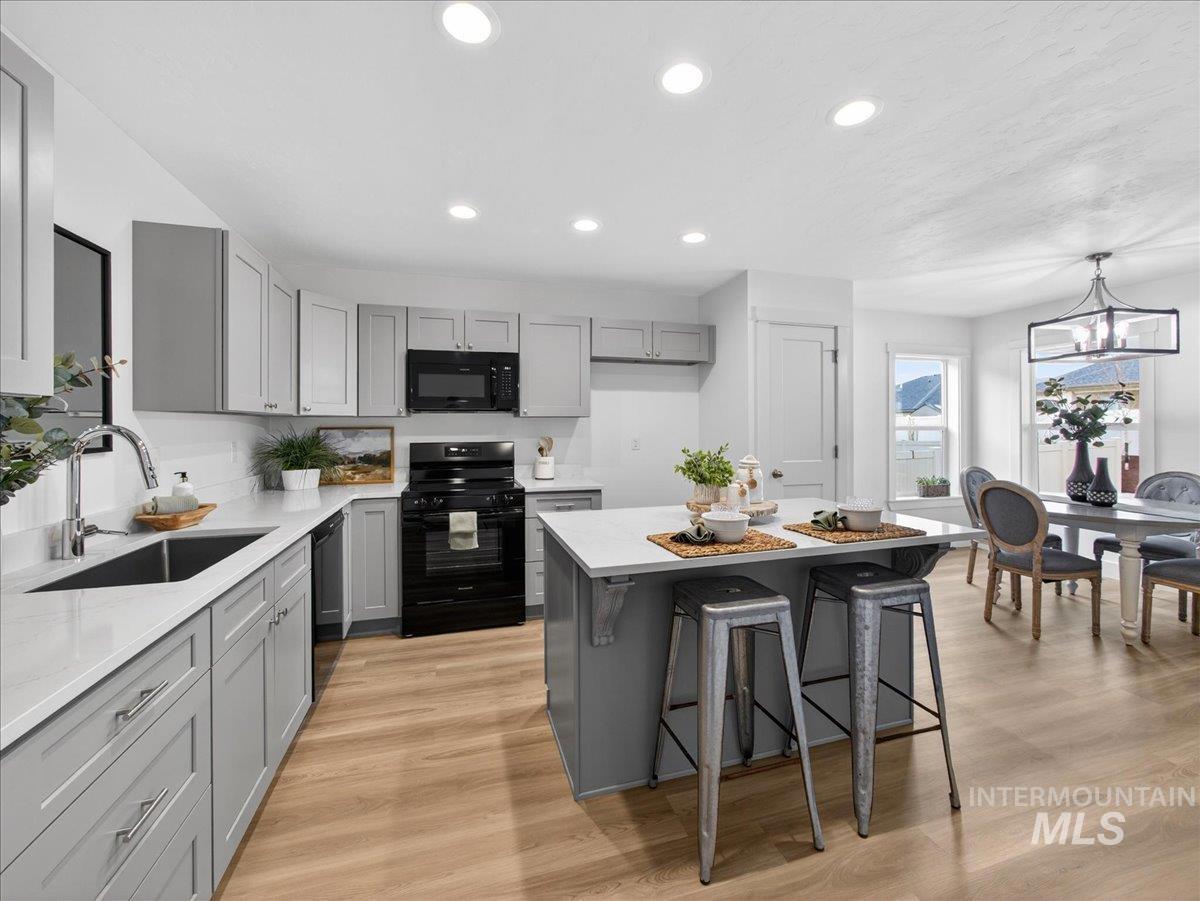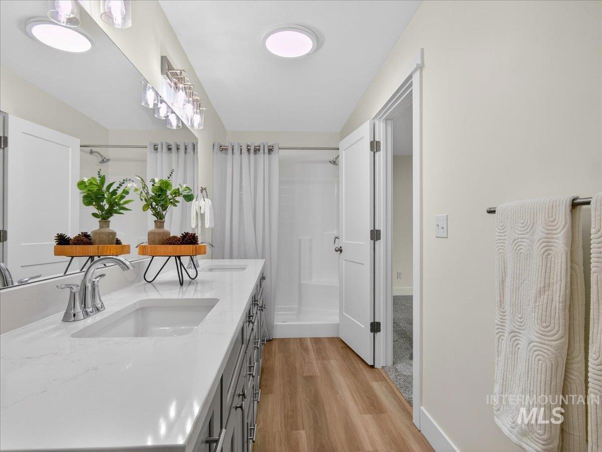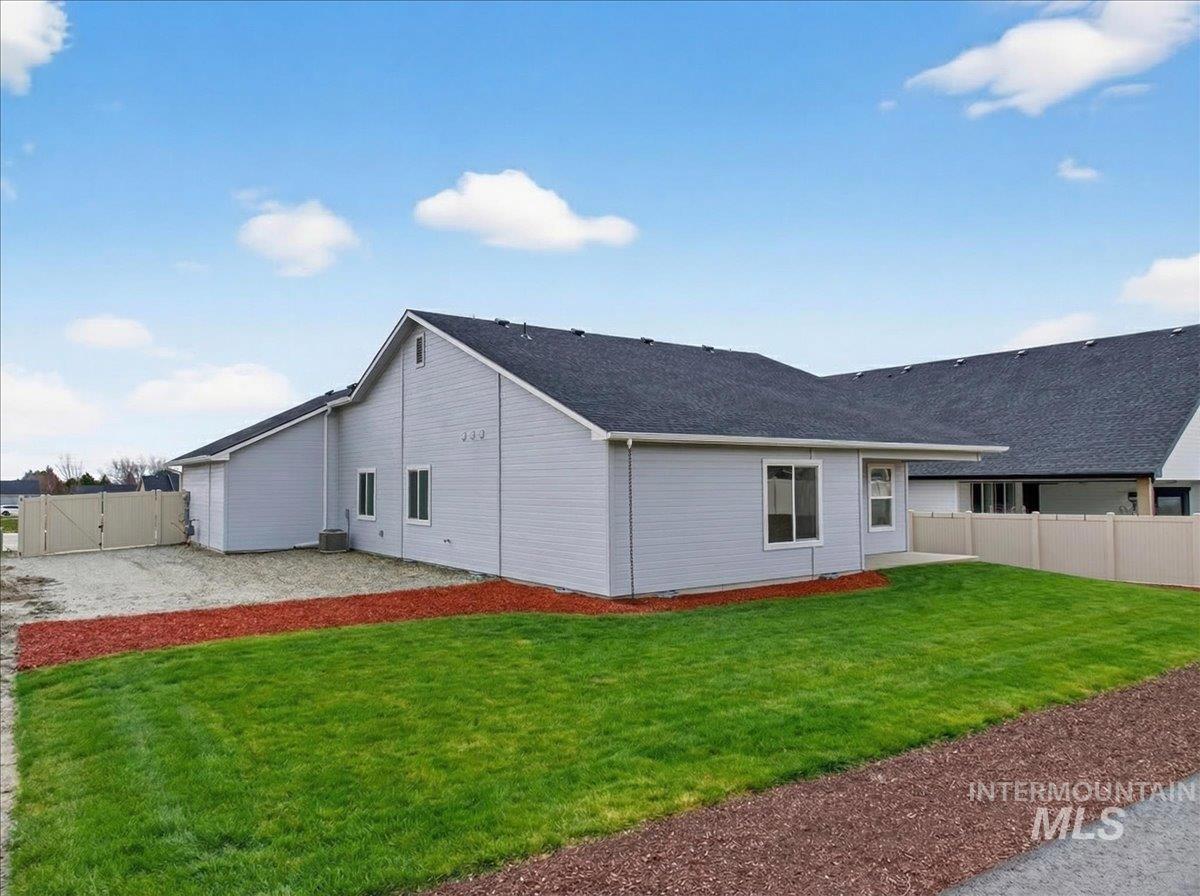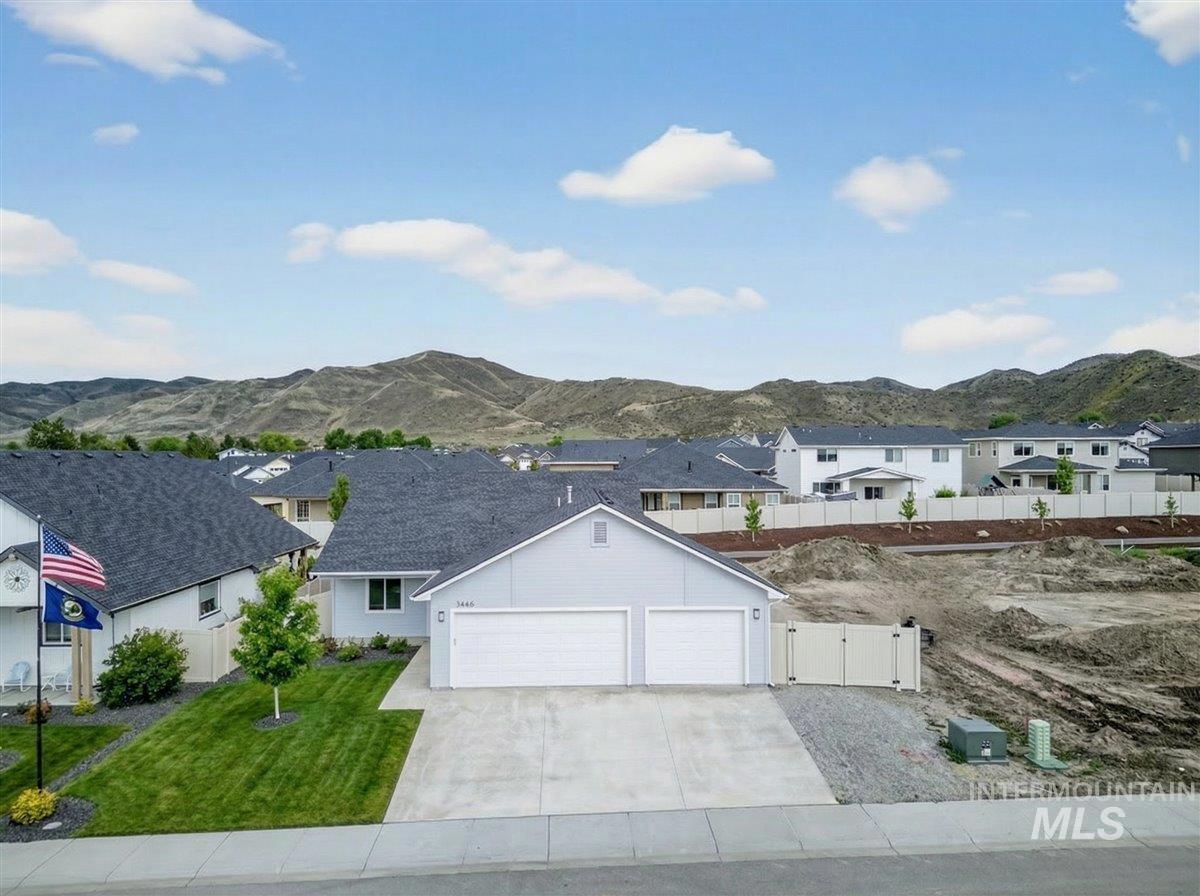 Offering 2.99% interest rate! This beautifully crafted new construction home in Legacy Heights, Emmett, Idaho, offers 1,504 sq. ft. of thoughtfully designed living space that perfectly blends modern style with everyday functionality. The home features 3 bedrooms, 2 bathrooms, a 3-car garage, and additional RV parking for all your recreational needs. Situated with no direct backyard neighbors, the property backs up to the neighborhood walking path, allowing you to enjoy the tranquility of wide-open spaces and stunning mountain views. Step inside to a well-designed layout filled with quality finishes. The kitchen serves as the heart of the home, featuring granite countertops, a spacious island, and plenty of room for gathering and entertaining. Whether hosting friends or enjoying a quiet night in, this space is designed to bring people together. The private primary suite offers a peaceful retreat, complete with dual vanities and a generous walk-in closet, creating a spa-like feel and plenty of room to unwind. Step outside to enjoy relaxing evenings and beautiful Idaho sunsets. The 3-car garage provides ample space for vehicles, recreational toys, or a workshop setup, while the side yard offers convenient RV parking. This home perfectly combines comfort, flexibility, and location for the best of Idaho living.