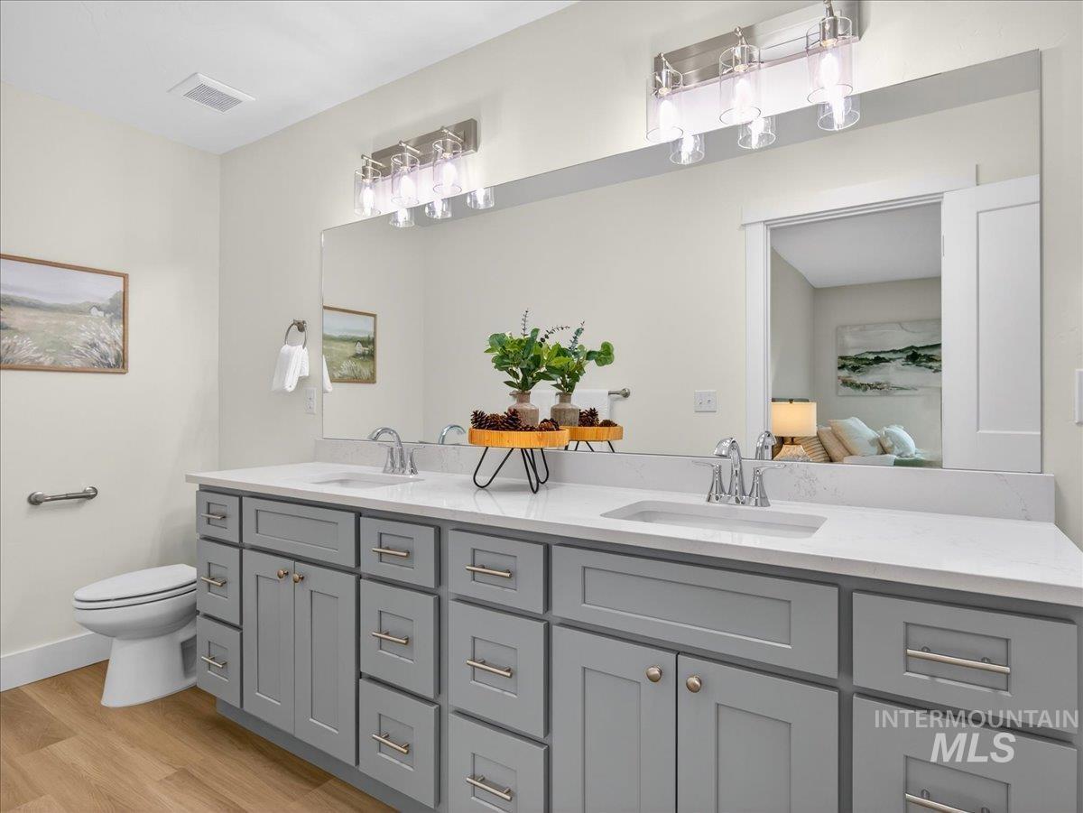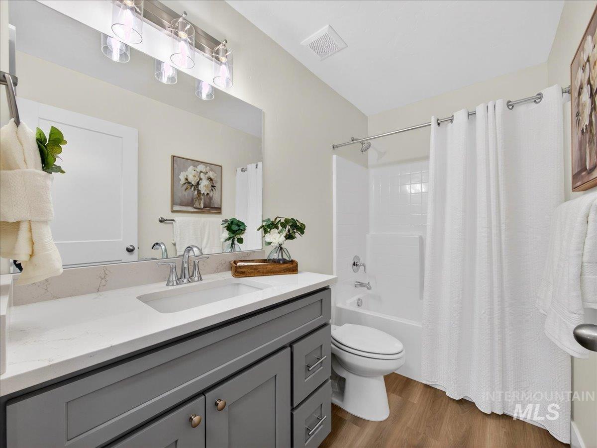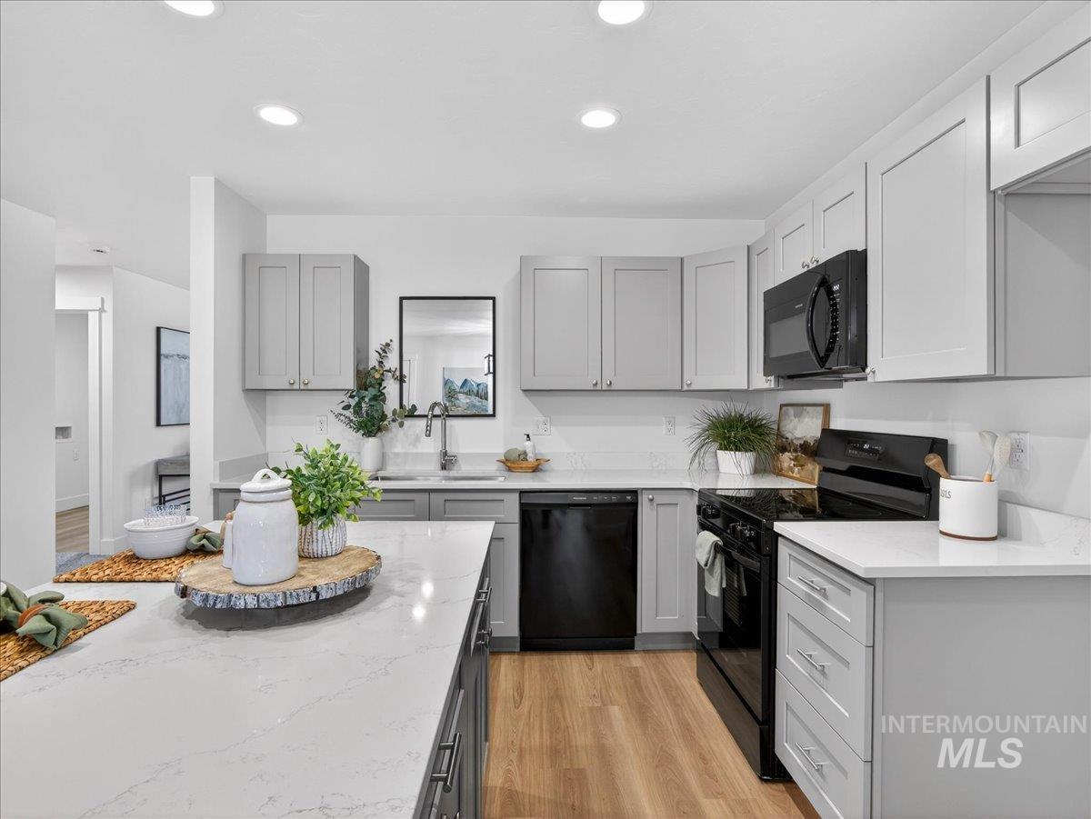 Offering 2.99% interest rate! This beautifully crafted new construction home in Legacy Heights, Emmett, Idaho, offers 1,504 sq. ft. of thoughtfully designed living space that perfectly blends modern style with everyday functionality. The home features 3 bedrooms, 2 bathrooms, a 3-car garage, and additional RV parking for all your recreational needs. Situated with no direct backyard neighbors, the property backs up to the neighborhood walking path, allowing you to enjoy the tranquility of wide-open spaces and stunning mountain views. Step inside to a well-designed layout filled with quality finishes. The kitchen serves as the heart of the home, featuring granite countertops, a spacious island, and plenty of room for gathering and entertaining. Whether hosting friends or enjoying a quiet night in, this space is designed to bring people together. The private primary suite offers a peaceful retreat, complete with dual vanities and a generous walk-in closet, creating a spa-like feel and plenty of room to unwind. Step outside to enjoy relaxing evenings and beautiful Idaho sunsets. The 3-car garage provides ample space for vehicles, recreational toys, or a workshop setup, while the side yard offers convenient RV parking. This home perfectly combines comfort, flexibility, and location for the best of Idaho living.