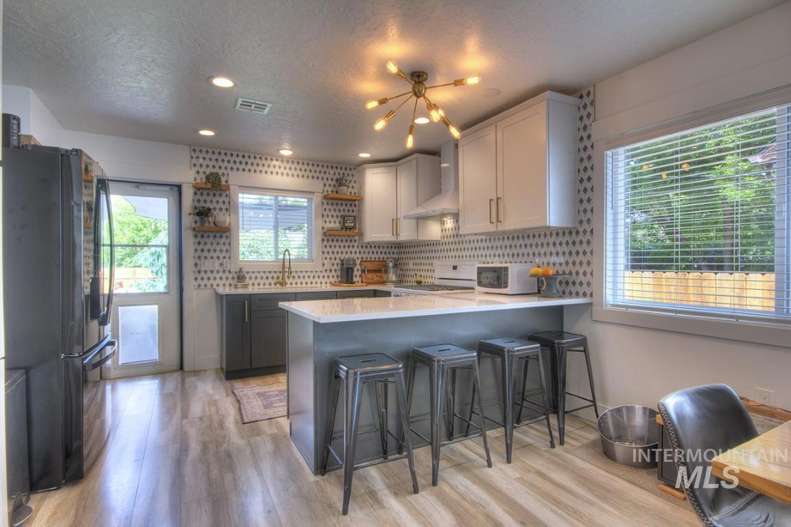 This gorgeous bench home sits close to Boise`s Green Belt and is nicely situated on a spacious lot. Perfectly situated for strolls or bike rides along the greenbelt and Boise River. Nicely remodeled, this 4 bedroom, 3 bathroom home has a detached 2-car garage with a spacious shop area, a large backyard with a deck and fire pit, fully fenced, beautifully landscaped with pavers and curbing, cozy kitchen with quartz countertops and pantry cabinets, upstairs bedrooms with luxury vinyl plank flooring, master bathroom with walk-in shower, office space and second living area located in the finished basement, partial wrought-iron fence surrounding the front yard, this home has just about everything you could want. See today!