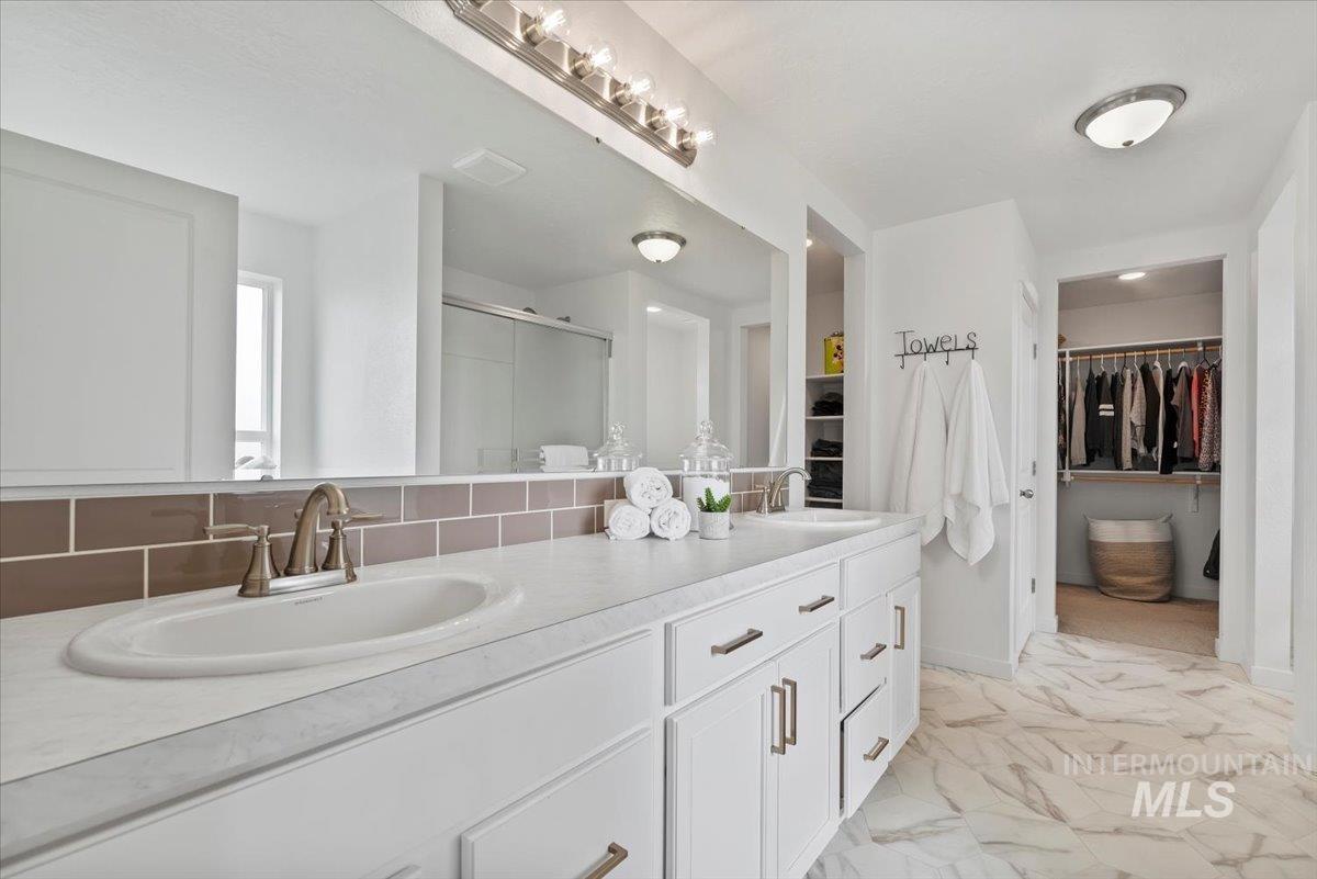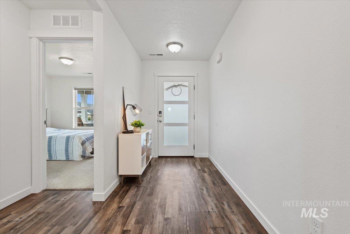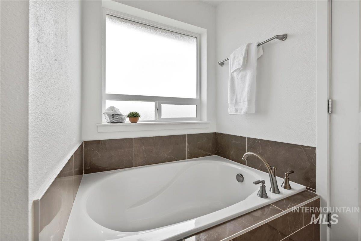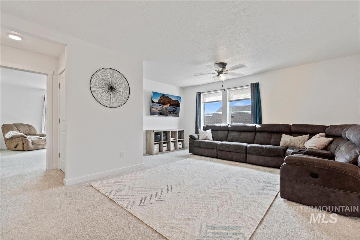 Backs to open space & the private neighborhood park! This coveted floorplan features a covered front porch and an open foyer with warm LVP flooring that flows seamlessly into the HUGE great room. Just off the entry sits a versatile first floor bedroom & full bathroom PLUS an office/flex room. The chef’s kitchen is impressive with a 9-foot island, granite counters, full-tile backsplash, gas range & walk-in pantry. The split-bedroom floorplan ensures privacy for the expansive primary suite, featuring two large closets with built-ins, step-in shower, separate soaking tub, dual sinks, lots of cabinetry & stunning views of the mountains! Upstairs includes a large loft for added living space, three additional bedrooms, two full baths & a convenient laundry room. The backyard, with no rear neighbors, includes a concrete patio and firepit area, perfect for entertaining family and friends. An insulated two-car garage with 220 volt outlet for large appliances or power tools, provides ample storage space.