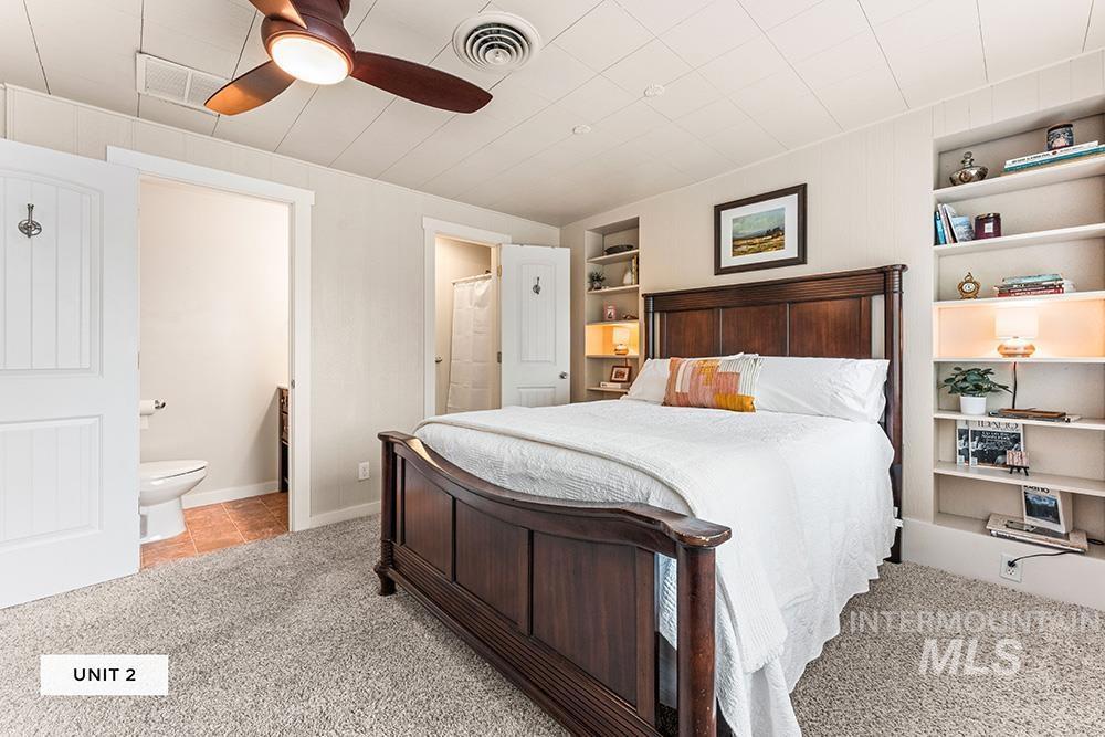 A rare opportunity in Boise’s foothills—this distinctive mid-century property is both a home and a story. History lingers & character shines, reflecting the principles of Frank Lloyd Wright`s innovative designs. Commissioned and built in 1954, the residence bears the hallmarks of MCM architecture: flat rooflines, stone fireplaces, log-beamed ceilings, expansive windows, and handcrafted cabinetry. Originally a single-family home and later expanded into a duplex, it has since evolved into four unique units: a warm 2-bedroom main house with a stacked-stone hearth, a charming studio, and a versatile 2-bedroom, 2-bath suite with balcony views and a fireside living room—rented as one or divided into two with hotel-style lock-off doors. Each unit exudes character, with abundant light and cozy interiors tucked into the hillside. Renovated in 2011 with updates to the roof, windows, plumbing, electrical, radiant floors, and kitchen, the home offers a strong foundation for its next chapter. Live in one unit and rent the others, restore it to a single residence, or continue its legacy as a darling inn or Airbnb. Privacy, artistry, and history converge in this one-of-a-kind property, minutes from downtown Boise, Hyde Park, and the North End—an extraordinary chance to revive an heirloom home of architectural significance.