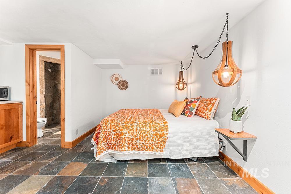 A rare opportunity in Boise’s foothills! This distinctive property exudes history & character, reflecting the principles of Frank Lloyd Wright`s innovative designs. Built in 1954, the residence showcases MCM architecture: flat rooflines, stone fireplaces, log-beamed ceilings, & expansive windows. Originally a single-family home and expanded to a duplex, it has since evolved into four unique units: A large 2-bedroom main level unit & a cozy Airbnb studio; plus a versatile upper level, 2-bedroom, 2-bath unit (which converts to two units with private lock-off for Airbnb). Each unit exudes unique character and charm. Renovated in 2011 with updates to the roof, windows, plumbing, electrical, radiant floors & kitchen, the home offers a strong foundation for its next chapter. Live in one unit and rent the others, restore it to a single residence, or continue its legacy as an Inn or Airbnb. Privacy, artistry, & history converge in this one-of-a-kind property, minutes from downtown Boise, Hyde Park, and the North End.