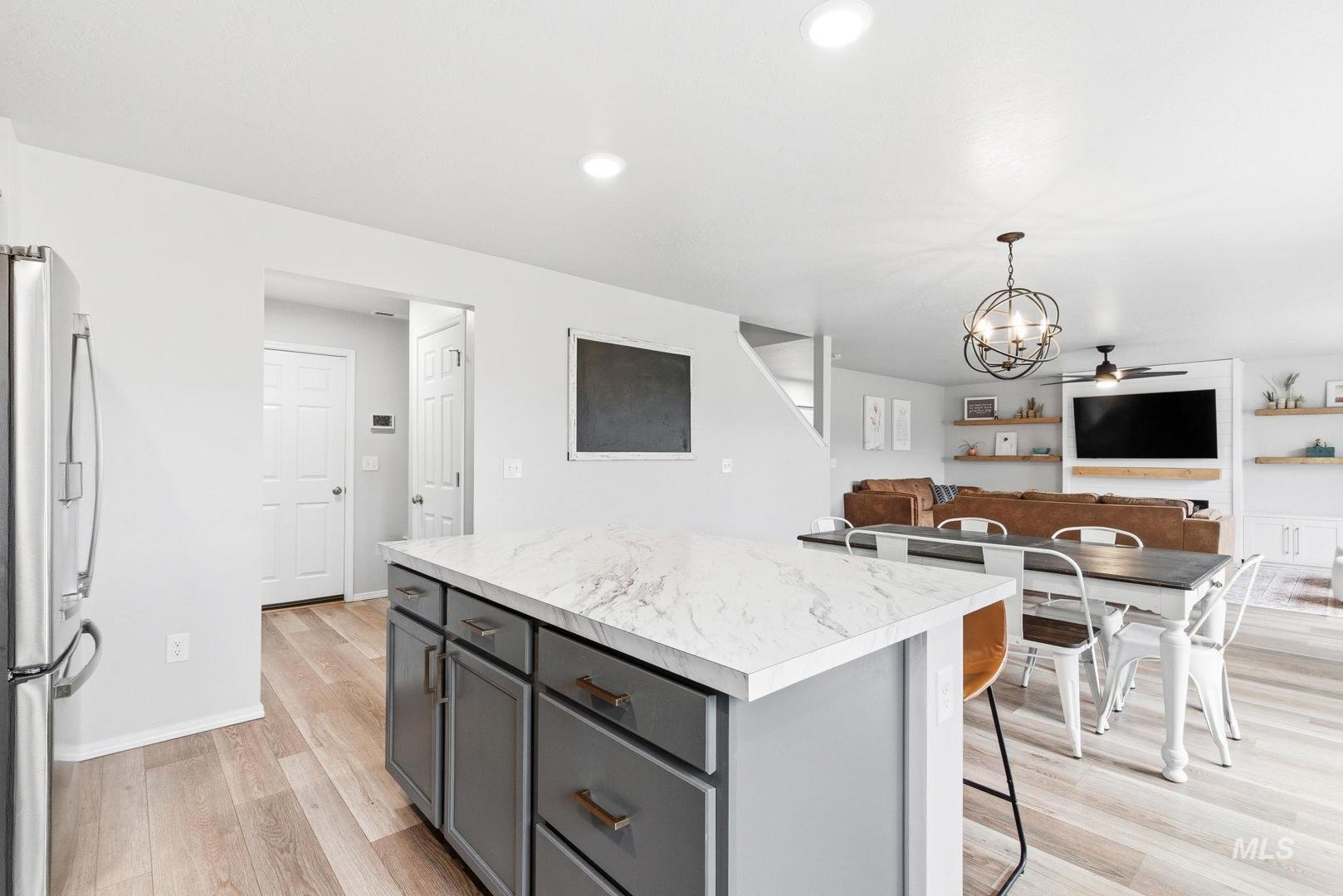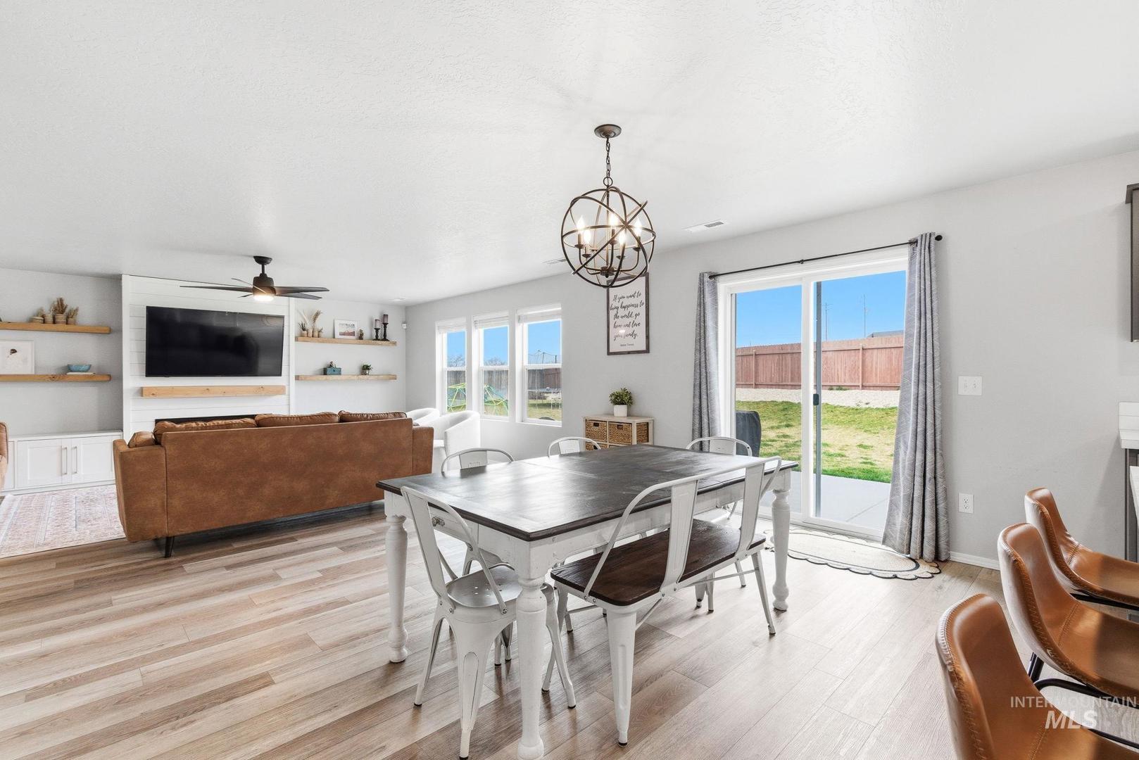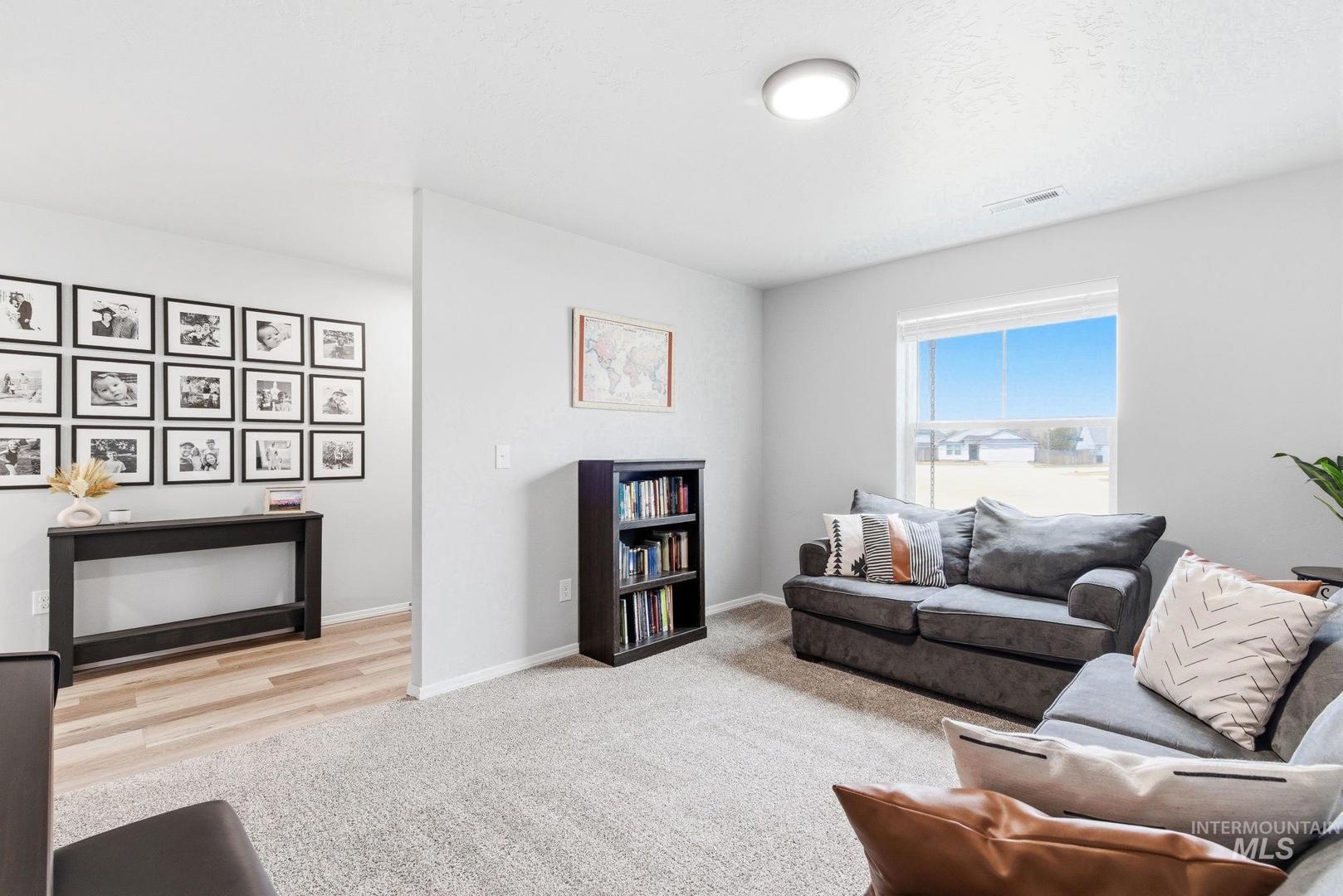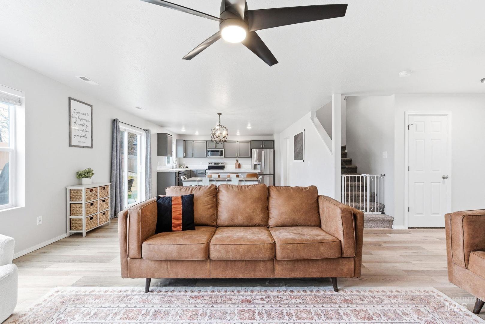 Welcome to this beautiful 4-bedroom, 2.5-bath home located in a quiet cul-de-sac. The open-concept main level features a spacious living room with a stylish electric fireplace, with shelving and cabinets, and upgraded LVP flooring throughout. The kitchen is designed for both function and entertaining with a large island, abundant cabinetry, and a generous pantry. Upstairs, you`ll find a versatile loft space perfect for a playroom, office, or second living area. The primary suite offers a relaxing retreat with double vanities and a large walk-in closet. Step outside to enjoy the fully fenced backyard with automatic sprinklers—perfect for entertaining, relaxing, or pets. Refrigerator, range, washer, and dryer are included—making this home truly move-in ready. BTVAI