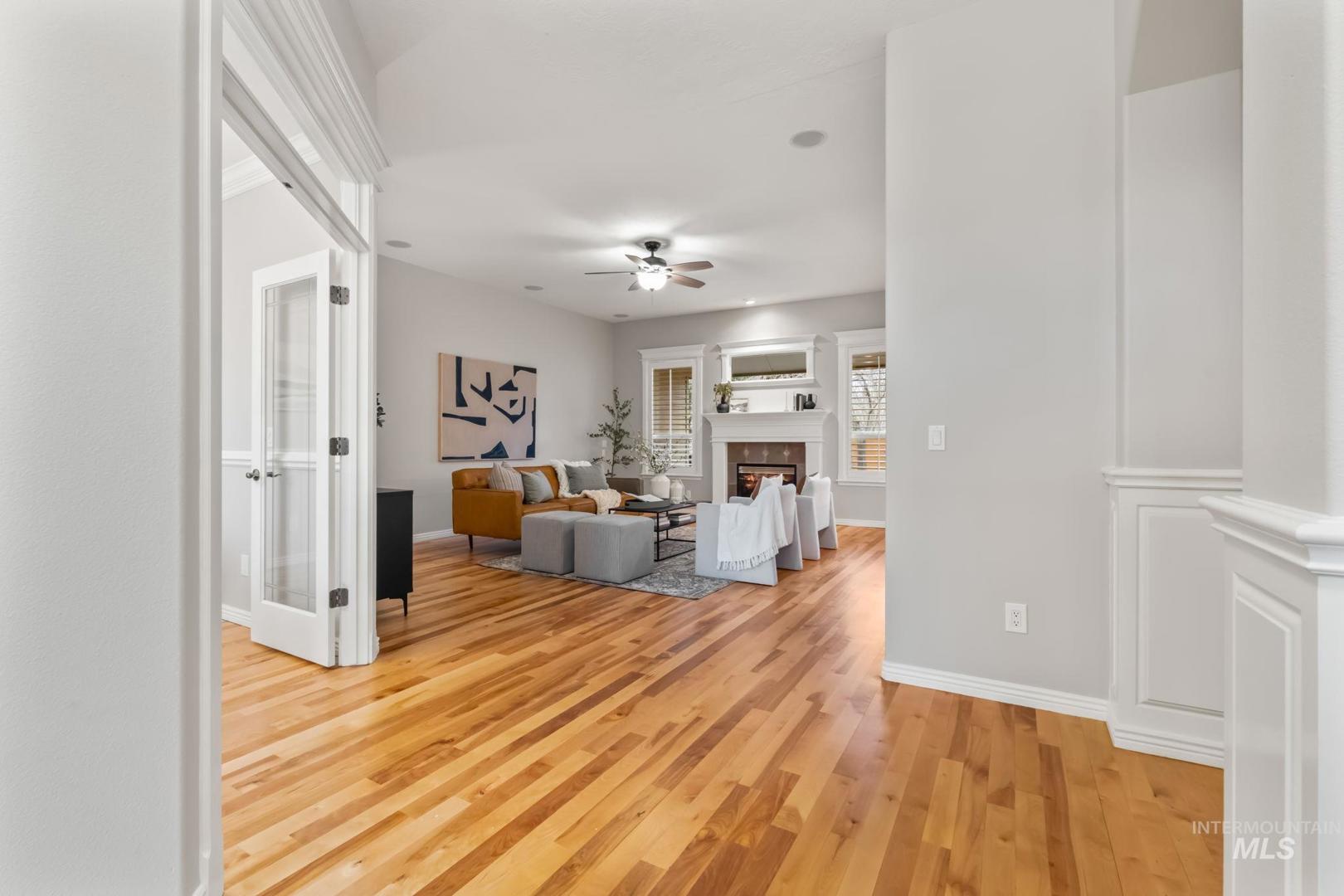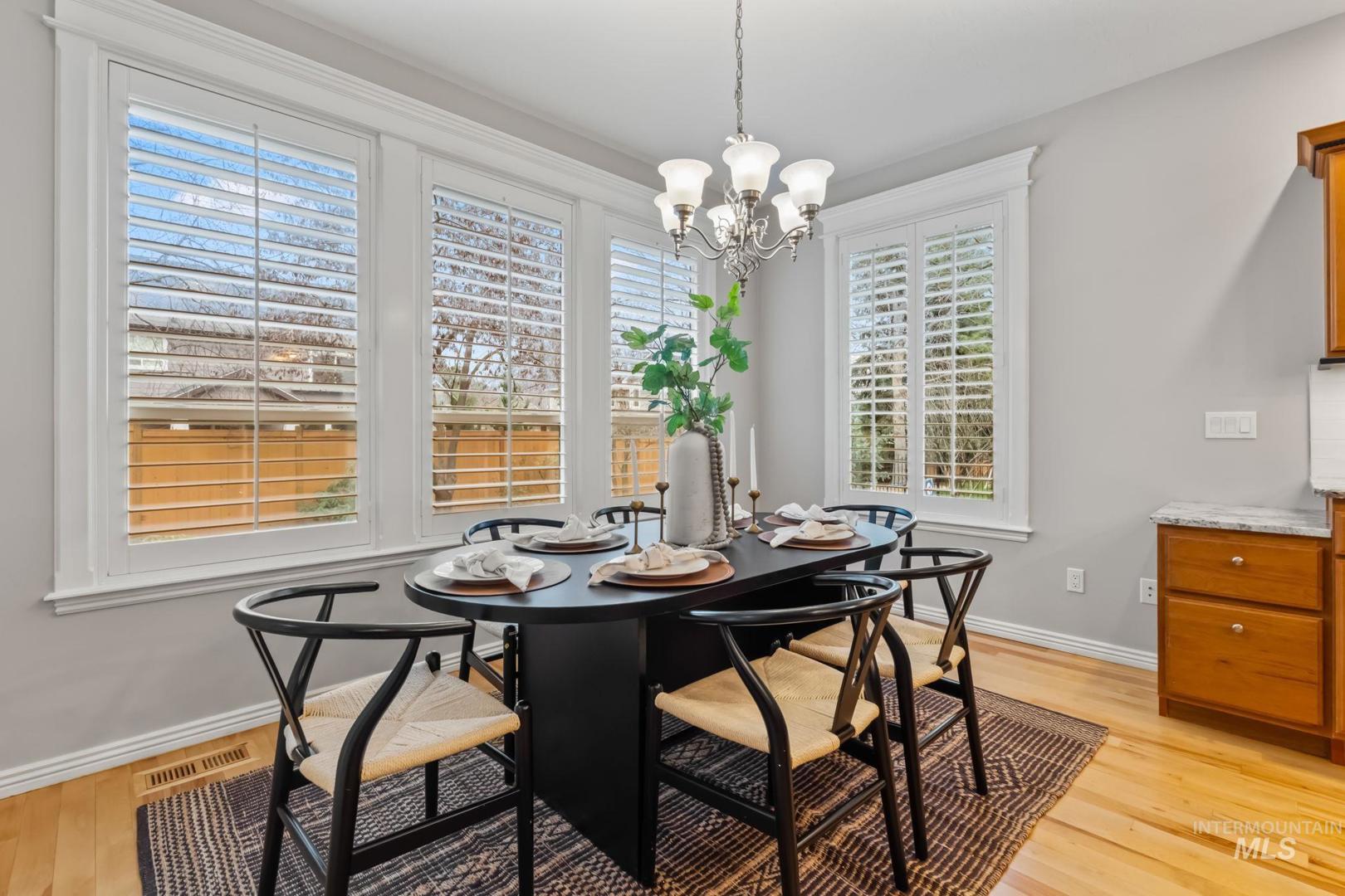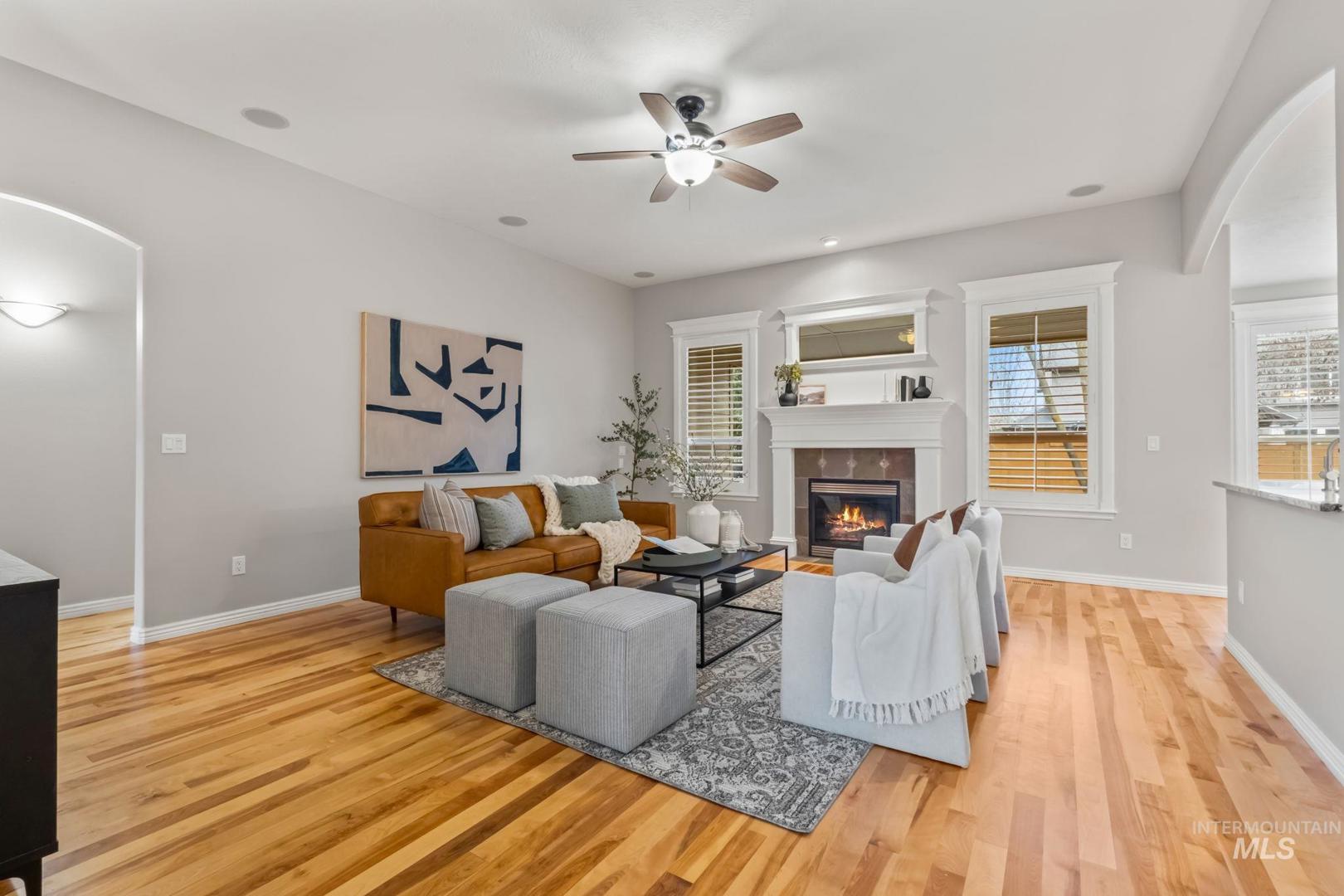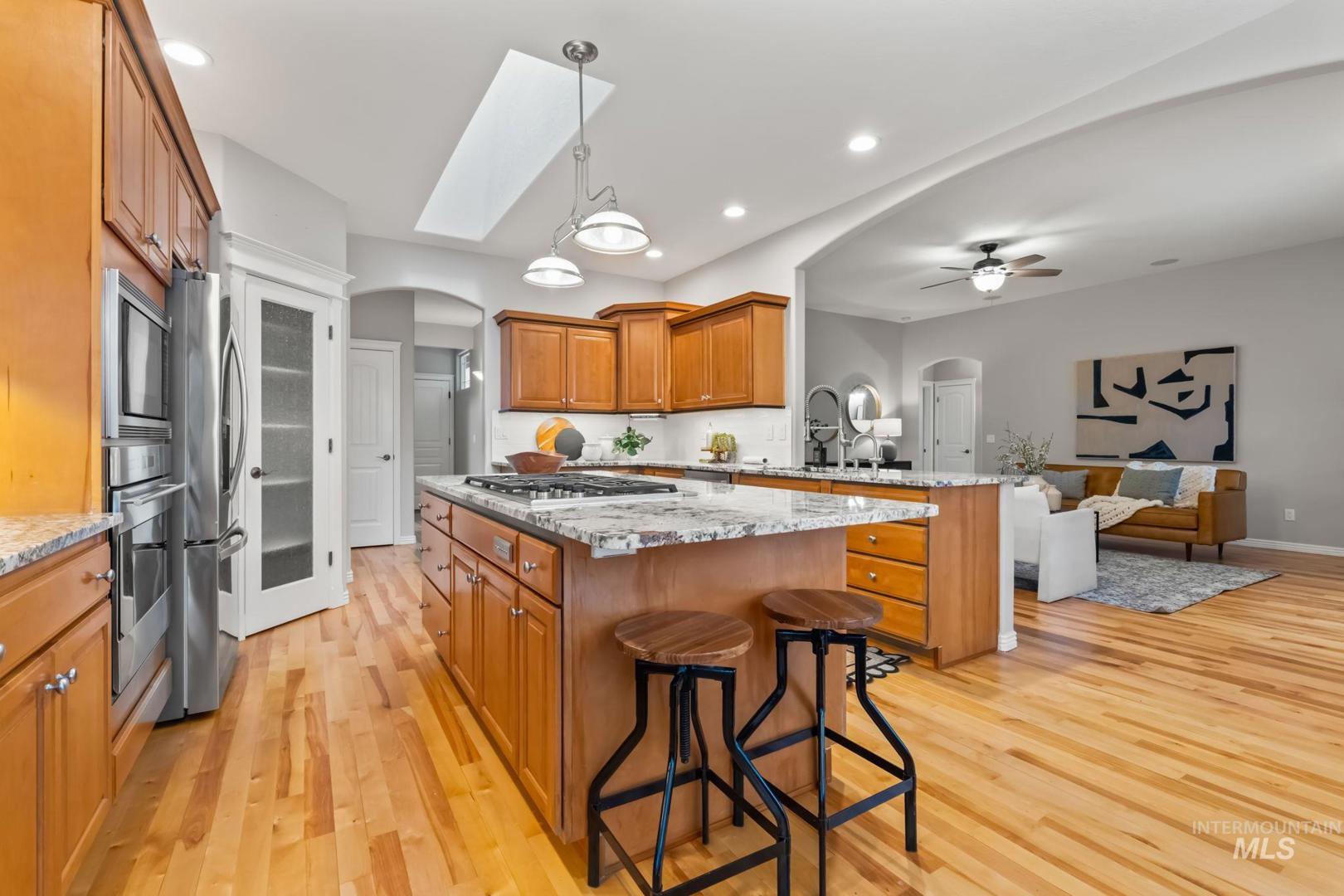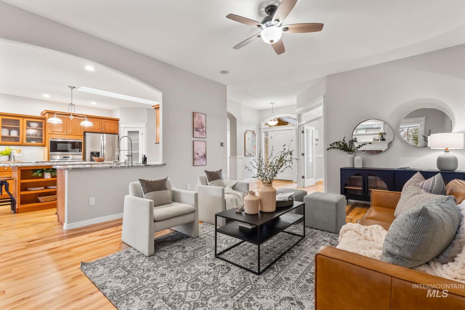 Stunning home in the highly sought-after Brookwood community in Eagle! This beautifully maintained property features mature landscaping and a desirable single-level layout with a bonus room and full bathroom upstairs, offering flexibility for guests, hobbies, or additional living space. The home includes 3 bedrooms, 3 bathrooms, a dedicated office, and a versatile bonus room with a functional split floor plan and abundant natural light throughout. The spacious kitchen and living areas are ideal for living and entertaining. The kitchen features a premium Wolf 5-burner gas cooktop, instant hot waterspout, and great connection to the main living space, which includes built-in living room speakers. Recent upgrades include newer hardwood flooring, updated countertops, full interior paint, and plantation shutters. Additional perks include dual-zone HVAC, central vac, and gutter leaf guards. The 3-car garage offers epoxy floors, a work counter/cabinet, and an electric vehicle charging station. Retractable screen doors on the front, back, and garage doors provide great airflow and indoor-outdoor living. Enjoy a beautifully remodeled backyard with an extended patio, built-in BBQ, and retractable awning—perfect for relaxing or entertaining. Brookwood residents enjoy fishing ponds, walking paths, open green space, and a community pool near the Eagle foothills, Boise River, and Greenbelt.