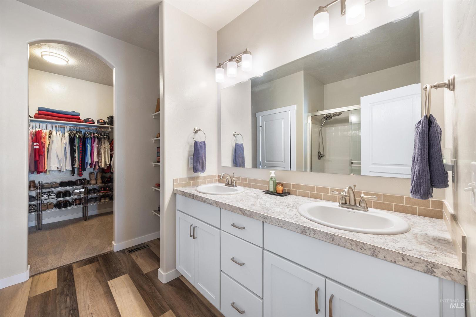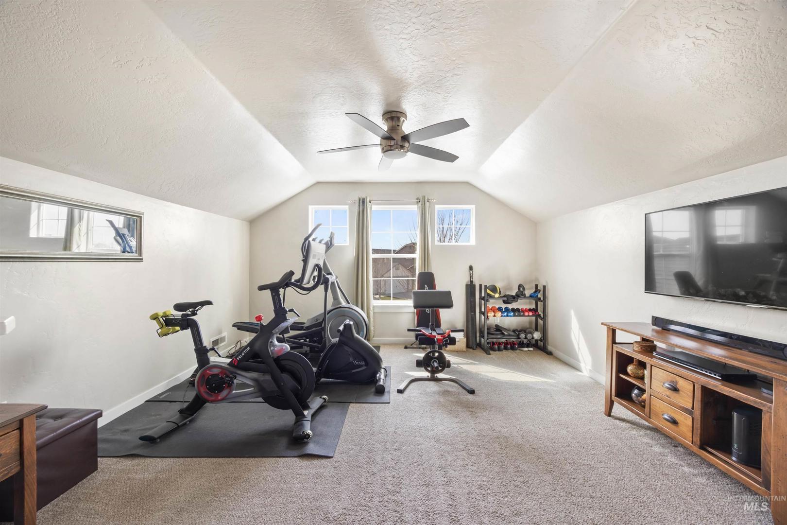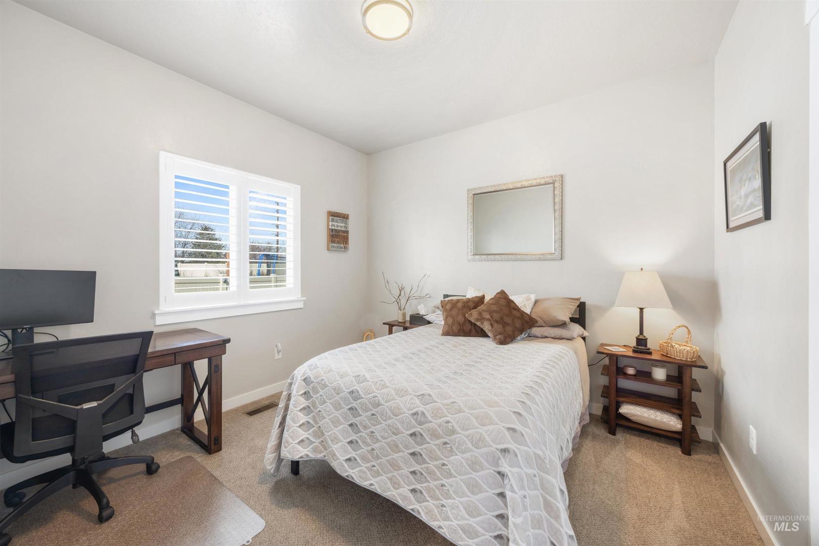 Welcome home ~ this beautifully maintained single-level residence with a spacious bonus room upstairs, ideally located in Meridian. Featuring 3 bedrooms, 2 bathrooms, and soaring 9-foot ceilings throughout. This home offers a bright and inviting open layout designed for comfortable living. Luxury vinyl plank flooring flows through the main living areas, with carpet only in the bedrooms and bonus room for added comfort. The kitchen is both functional and stylish, showcasing granite countertops, abundant cabinetry, and plenty of natural light that fills the home. The Sun Valley textured walls add a warm, and modern finish throughout the interior. The large primary suite provides a peaceful retreat with a walk-in closet and direct access to a private patio. The backyard has been thoughtfully enhanced with additional concrete for a future hot tub, upgraded landscaping, a retaining wall, shrubs, and three raised garden beds—perfect for outdoor enjoyment. With no backyard neighbors and added privacy plants, the space feels secluded. Ideally located just 5 minutes from Scheels, restaurants, and coffee shops, with Costco in Meridian only a 10-minute drive away. Enjoy easy access to I-84, making commuting and daily errands simple and convenient.This home has been meticulously cared for, very clean, and is move-in ready for its next owners.