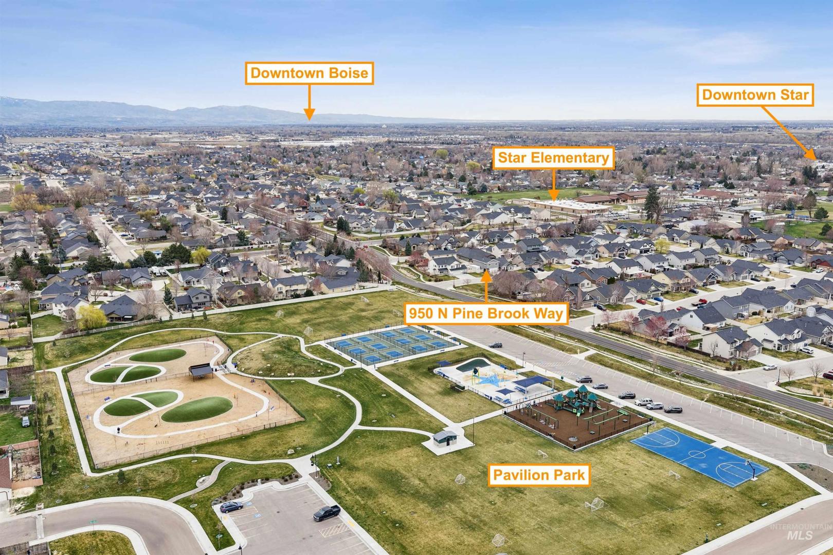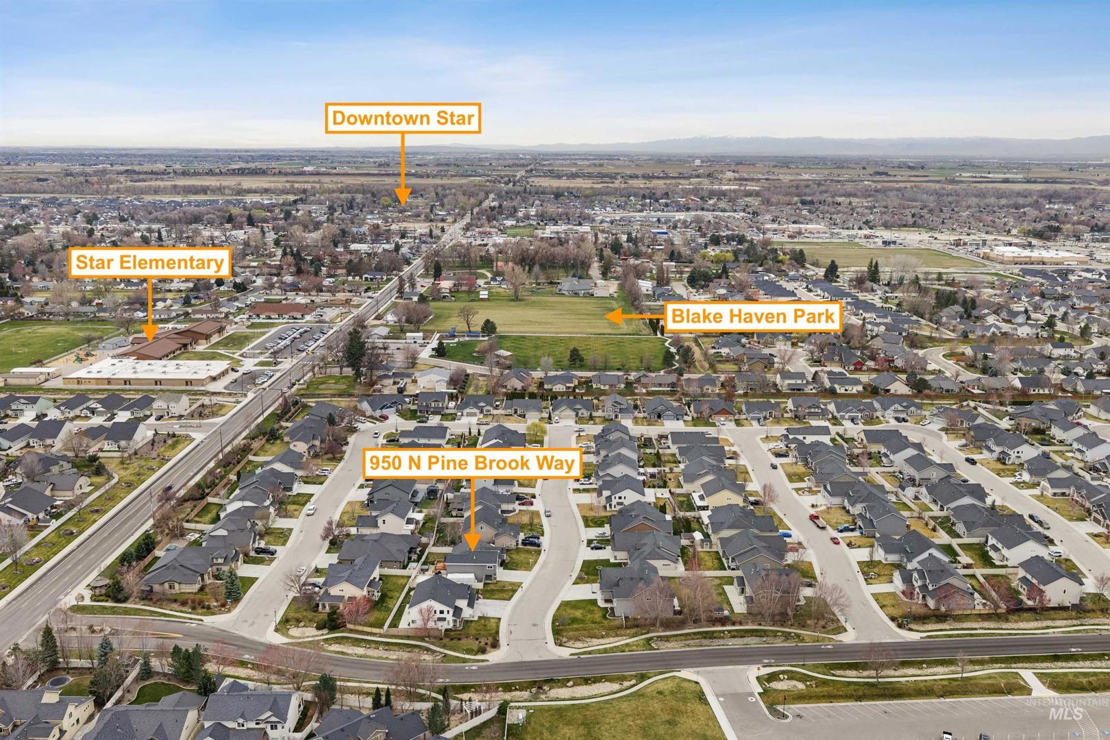 Rare multigenerational floor plan in the heart of Star Idaho. This spacious 4 bedroom 3 bath home offers something hard to find in the Treasure Valley, a fully functional main level plus a massive upstairs bonus suite that works as a complete second living space for in-laws, adult children or guests. The main floor features an open concept kitchen, living and dining area with stainless steel appliances, a large island and pantry. The Primary Suite includes a soaker tub, dual vanities and walk-in closet with three (3) additional bedrooms and two (2) full baths completing the main level. Upstairs the bonus suite includes a bathroom with walk-in shower, walk-in closet, wet bar, and a private balcony overlooking the fully fenced backyard. A newer hot tub, firepit, two entertaining areas and a double gate for RV, boat or trailer storage make the backyard just as impressive as the interior. Brand new `whole house` water softener system included. SUPER LOW TAXES! Star Idaho is one of the most sought after communities in the Treasure Valley. Walk to Star Elementary, community parks with pickleball & play structures and the dog park. The Boise River is just minutes away and the 4th of July parade rolls right through the neighborhood. Schedule your showing today - MOVE-IN READY!