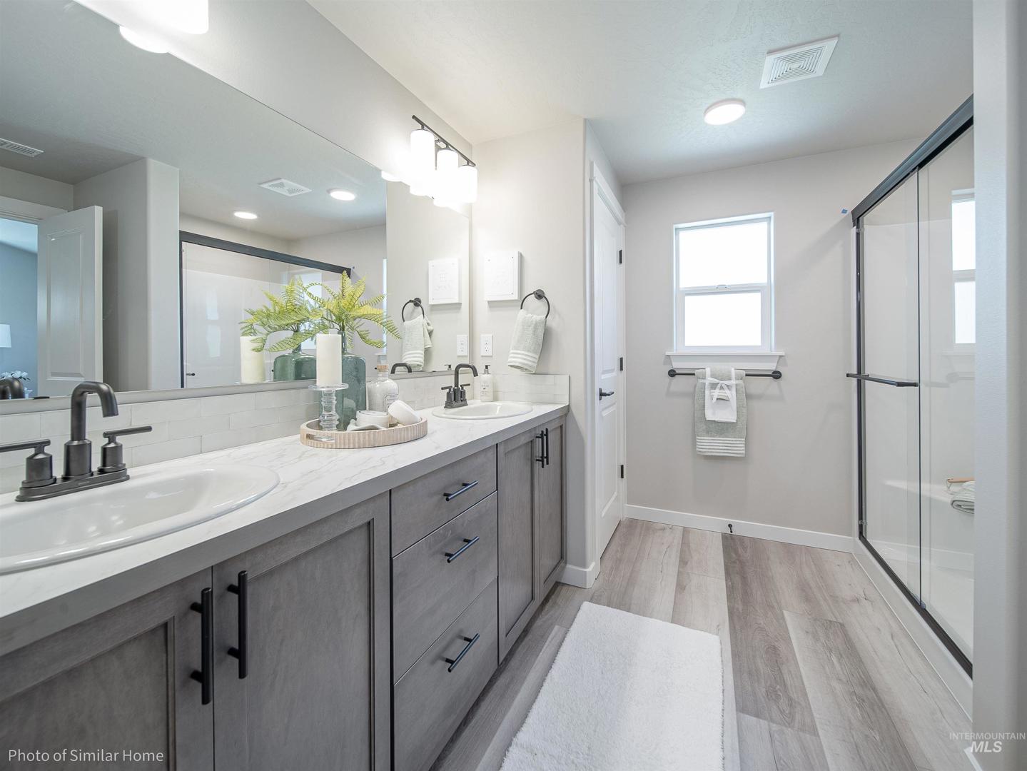 Welcome to Cayuse Ridge, Hayden Homes newest luxury community in South Nampa! The Pacific floorplan offers a well designed single level layout with upgraded TWO bedrooms featuring private ensuite bathrooms, plus a third bedroom and third full bathroom. Enjoy an open kitchen with a large island, spacious pantry, and dedicated dining area. Quartz countertops, LVP in the main living areas and covered patio. Cayuse Ridge offers walking paths and a community basketball court. Photos Similar and no not depict upgraded ensuite package.