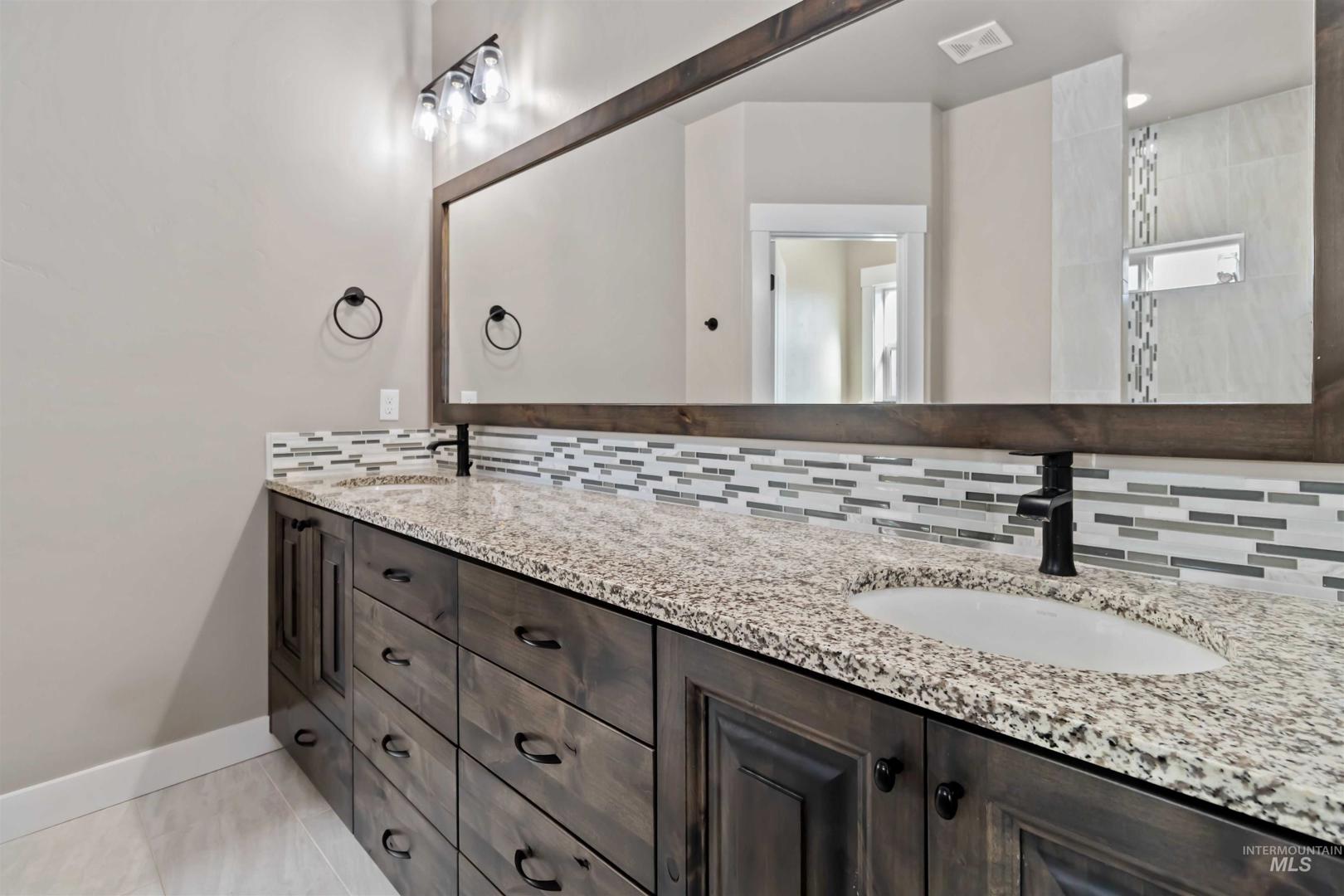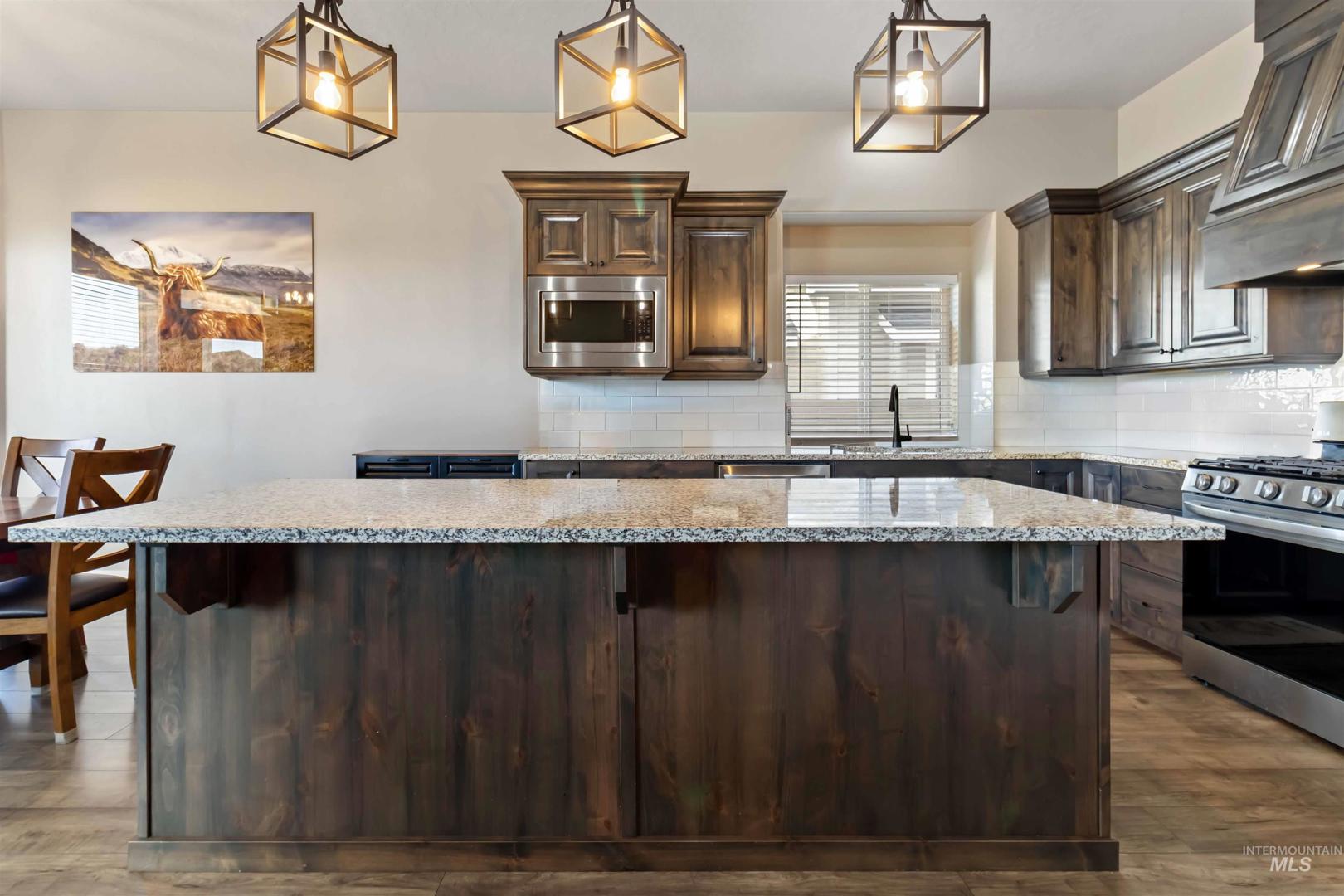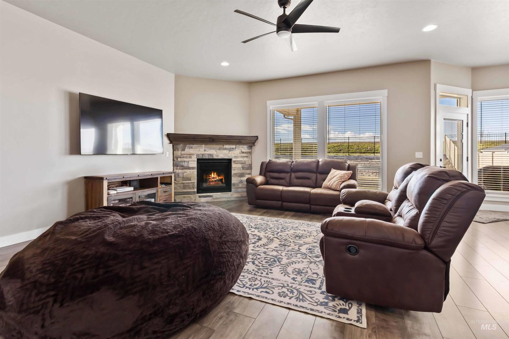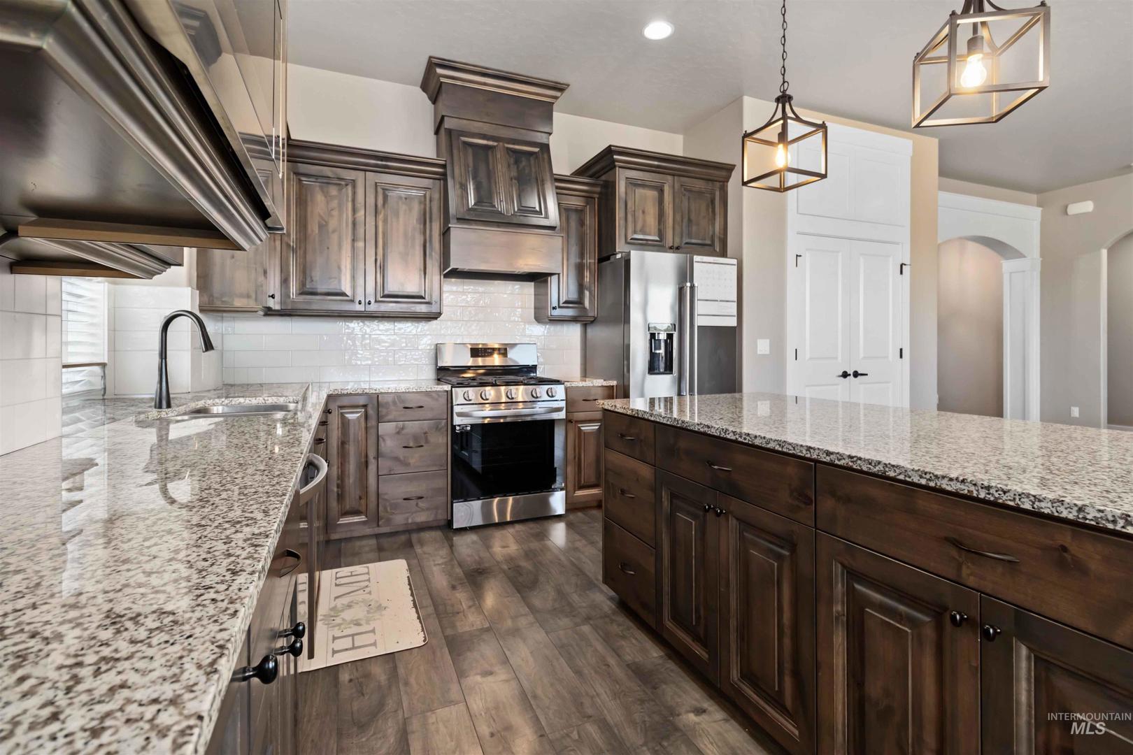 Desirable Heron Ridge. Newly built 4-bed, 2-bath home offering 1,917 sq ft with an open layout, 10’ ceilings, corner fireplace, and a bright kitchen featuring a large island, granite counters, stainless appliances, and gas range. Massive garage and RV storage totaling approx. 1,686 sq ft—rare at this price. The RV bay is 15.5’ × 52.8’ with 14.6’ height and a 12.9’ × 12’ door, ideal for large RVs or boats. The secondary garage is 38.2’ × 20.1’ plus a 10’ × 10’ extension for additional vehicles, storage, or shop space. Private fenced corner driveway fits up to six vehicles, plus a large covered patio and fenced backyard on a generous lot.