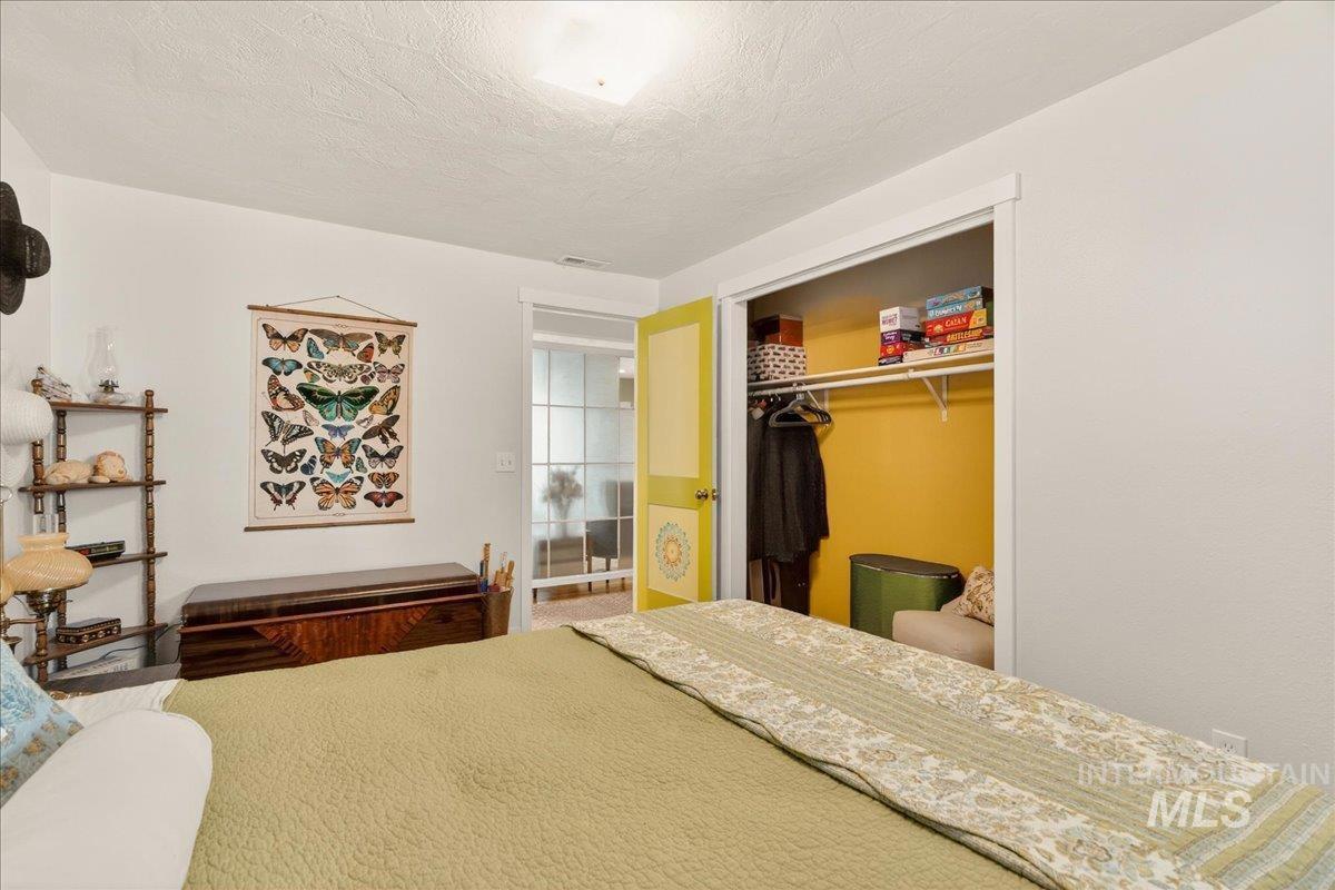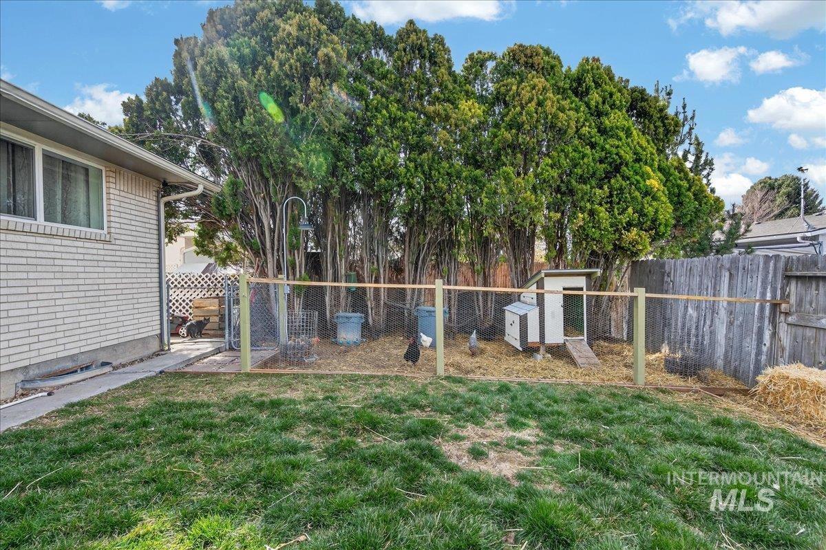 Spacious single-level home with basement offering 6 bedrooms and 2.5 baths, plus RV parking, ideally located on a quiet cul-de-sac near downtown Meridian. Meticulously maintained and thoughtfully updated while preserving its 1970s character, this residence features a dedicated office, an in-home gym/workout room, and a cool finished basement—perfect for relaxing on hot summer days. Modern comforts include newer upstairs HVAC, a mini-split downstairs, whole-home water filtration, LED and step lighting throughout, and updated bamboo flooring that enhances the home’s style. Entertain under the enormous covered patio with plenty of space for grilling and gatherings, and enjoy a beautifully constructed powered chicken coop for those seeking a touch of homestead living. Additional highlights include RV parking with 120V and 240V hookups, a custom linen closet, raised flower beds, and numerous tasteful upgrades that blend vintage charm with today’s conveniences. This home truly needs to be experienced in person to appreciate the space, character, and care that has gone into it. A welcoming, well-cared-for property in a prime Meridian location just minutes from shopping, dining, and freeway access.