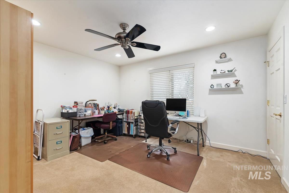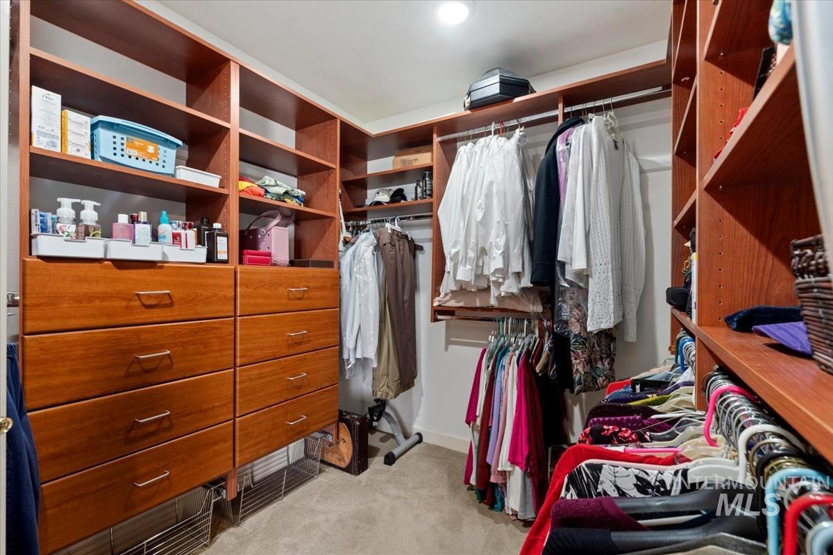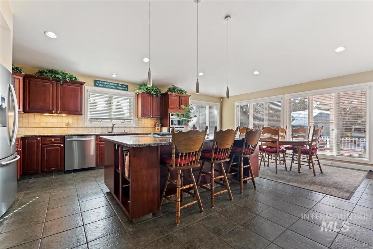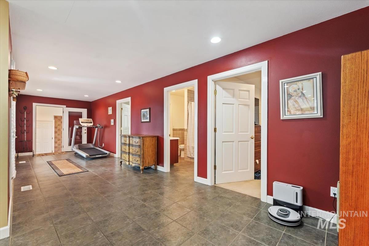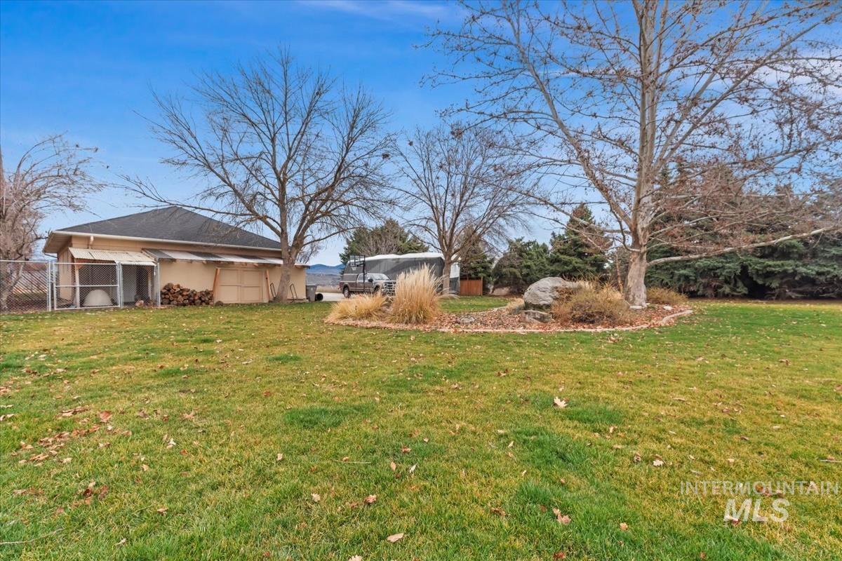 Lovely, spacious view home on a rare, level, irrigated, nearly full acre in west Boise. AND NO HOA! Stunning 180 degree view! Very functional kitchen with loads of counter-top area, built-in oven and microwave combination (replaced in February 2026) and built-in gas cook top with down-draft exhaust in the huge granite island with breakfast bar room to spare. Large walk-in pantry and office next to the kitchen are super convenient. Family dining area next to kitchen and formal dining room for special occasions. Expansive entry, great room flooded with natural light, and a wood-burning fireplace. Did I mention the indoor hot tub/spa?! 3 bedrooms and 2 bathrooms on the main floor. Primary bedroom with en-suite has a walk-in closet, garden tub and tiled shower. 2 guest bedrooms share a bathroom, 1 with direct access from bedroom. 2 more bedrooms downstairs and a large bonus/rec room with Bose surround sound system that stays with the house! 3rd bathroom with shower and linen storage, and 2 additional storage areas round out the basement space. Sheltered patio with pergola cover is ideal for grilling & chilling. Large grape arbor to relax under. Deep 4 car garage has tons of storage and work bench. Like living on a country estate, but minutes from all that Boise has to offer. Nampa-Meridian Irrigation.Truly a unique home with amazing amenities, come make it your dream home.