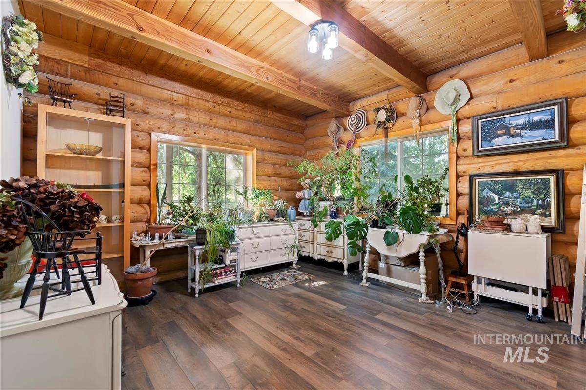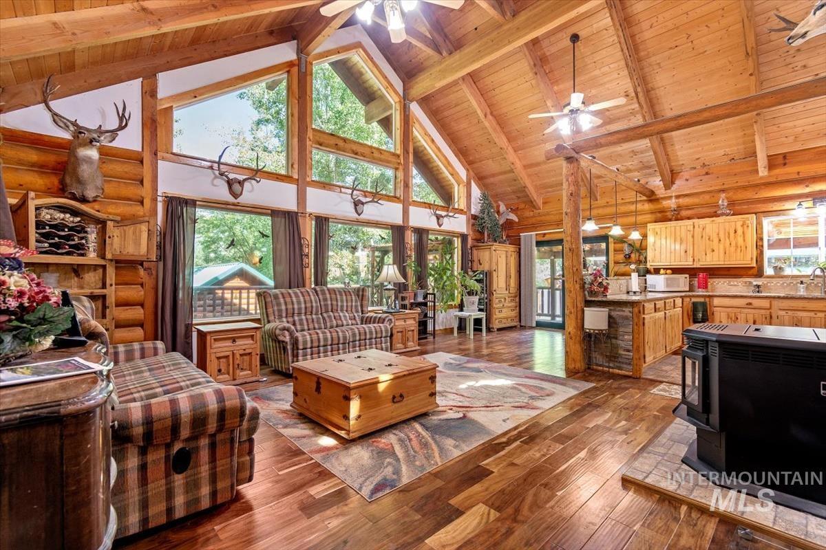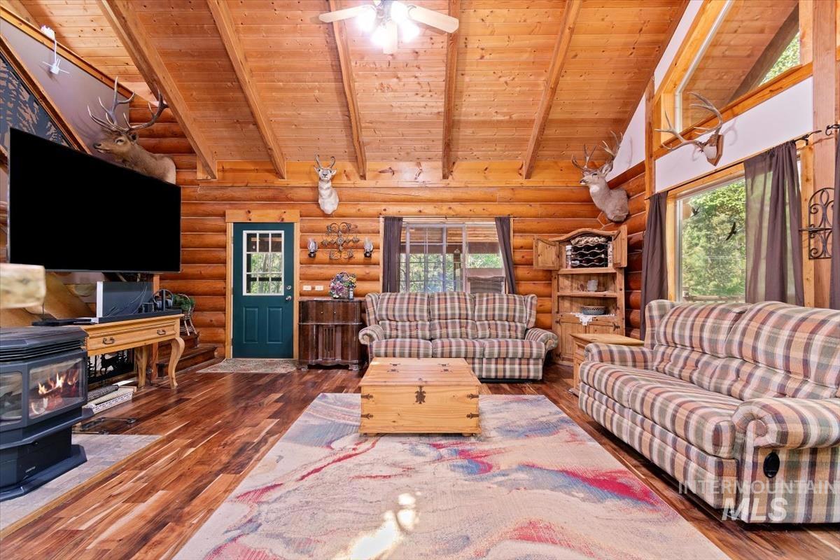 Original owner! PRICED $75,000 BELOW ASSESSED VALUE! Beautiful log home w/full 10 inch round logs.2740 sq. ft 3 bed/ 2 bath home built on 2 lots totaling 7.74 acres. Nearly 2 acres is a beautiful meadow ground perfect for horses or other animals. Wood rail fencing around much of the meadow. This home is nestled in a grove of aspens, maples, cottonwoods & pines that all help keep the home shaded in the summer months. 110 ft well provides 25 gpm of clear cold unfiltered water. No sediment, iron or impurities! Septic was just pumped & inspected last fall. Huge 48x44 barn includes an insulated 24x24 , 2 car garage as well as 3 other bays for vehicles, boats or toys! Kitchen features quartz counters, breakfast bar, gas range, refrigerator. NEW METAL ROOF IN 2022.Older Bull Frog hot tub currently works, but seller is not warranting condition. All catios will be removed prior to closing. Owner/ agent appointment only showings please.