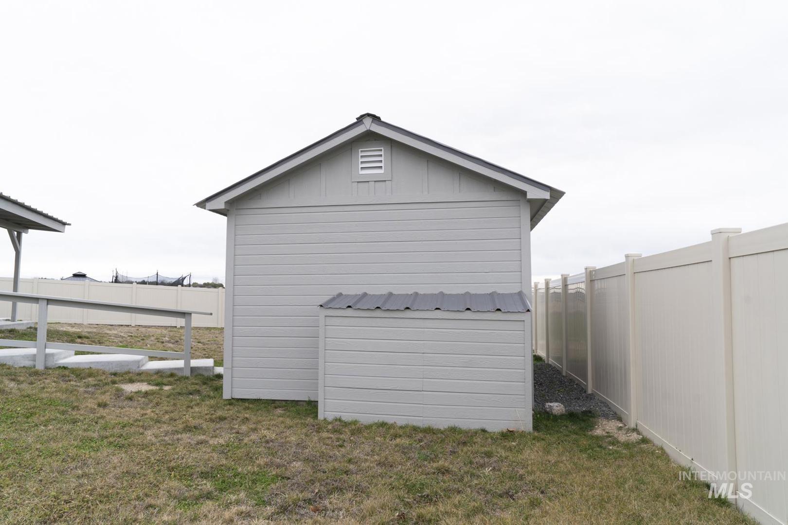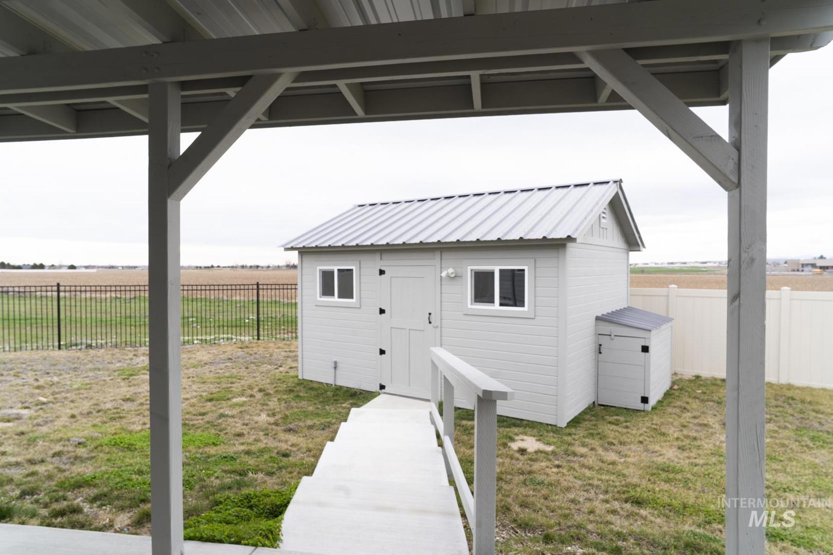 Welcome home to South Meridian! This 4 bed 2 bath home is nestled in one of the most sought-after and growing areas of Meridian, Idaho, this better-than-new home—less than two years old—offers the perfect blend of comfort, style, and thoughtful design with a smart split-bedroom layout that maximizes privacy and functionality. The kitchen, living room, and primary suite are thoughtfully positioned at the rear of the home, creating a peaceful retreat. The spacious kitchen shines with a large island and soft-close cabinetry, while natural light fills the living area. Step outside and fall in love with the privacy of the landscaped and fully fenced backyard with no rear neighbors. Sip your morning coffee while watching breathtaking sunrises, unwind in the evening with stunning Idaho sunsets, or relax on the back patio in the fresh air. Considerable upgrades include additional top soil added, sprinkler system, fully (vinyl) fenced back yard, gutters, patio extended, sidewalks added around home, blinds, breaker box upgraded for EV (Electric Vehicle), as well as an insulated backyard shed with power, adding extra storage for tools, toys, or hobbies. Modern, move-in ready, and ideally located—this South Meridian gem is ready to welcome you home.