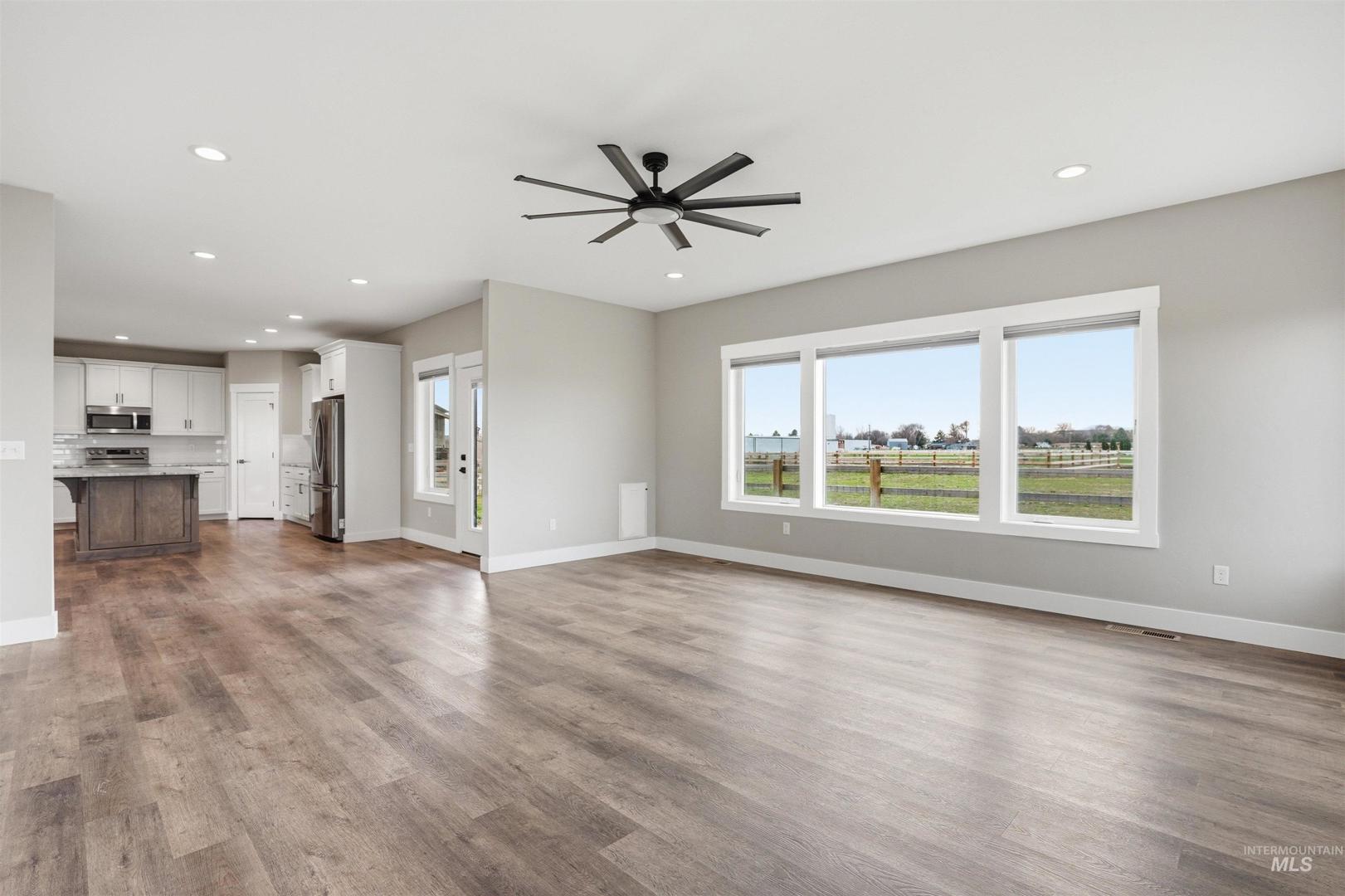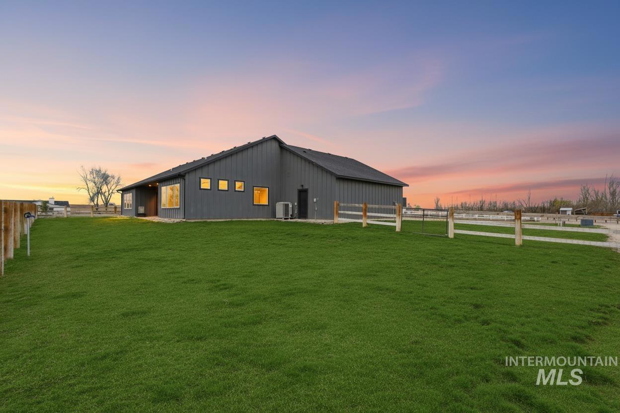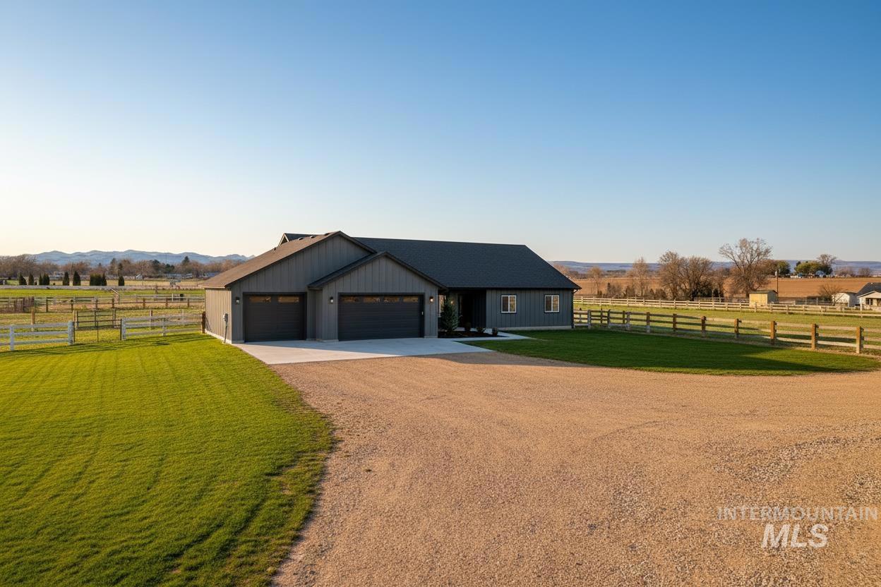 Peaceful acreage living in Idaho’s wine country on 2.5 acres near the Snake River with views of Lizard Butte. No HOA & fully fenced with multiple gates, offering room for animals and a shop. This like new 3 bedroom, 2.5 bath single level home has an open layout filled with natural light & quality finishes throughout. The kitchen features custom cabinetry and granite countertops. A large island with additional storage cabinets & a walk in pantry add both function & convenience. The space opens to the dining and living areas, creating an open layout perfect for entertaining. Electric fireplaces in both the dining room and primary suite add warmth and character. The primary suite includes a generous walk-in closet and direct access to the back patio, creating a comfortable place to step outside & enjoy the peaceful setting. The property features an irrigation pond & fully fenced acreage with custom wire & wood fencing & multiple gates for easy access to the pasture, pond, and yard. The extra deep three car garage provides plenty of space for vehicles, storage, & toys. Additional features include a high efficiency HVAC system, a new water filtration & softener system, along with washer, dryer, and refrigerator. Enjoy views of Lizard Butte & the Owyhee Mountains while having the space and flexibility that acreage living provides.