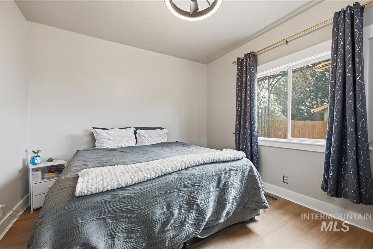 **OPEN HOUSE SAT MARCH 21 12-3PM**Beautifully updated Craftsman-style home tucked in a quiet, private setting. This inviting home offers low-maintenance living with timeless charm and thoughtful updates throughout. The cozy gas fireplace anchors the open living space, flowing into a well-appointed kitchen featuring ample counter space, double ovens, and a functional layout perfect for everyday living or entertaining. Fresh interior paint enhances the bright, welcoming feel of the home. The oversized main-level primary suite provides comfort and privacy, while the fully fenced yard offers a great space to relax, entertain, or enjoy pets. A detached 2-car garage adds extra storage and convenience. Ideally located near shopping, dining, parks, and schools with easy access to everything Boise and Meridian have to offer.