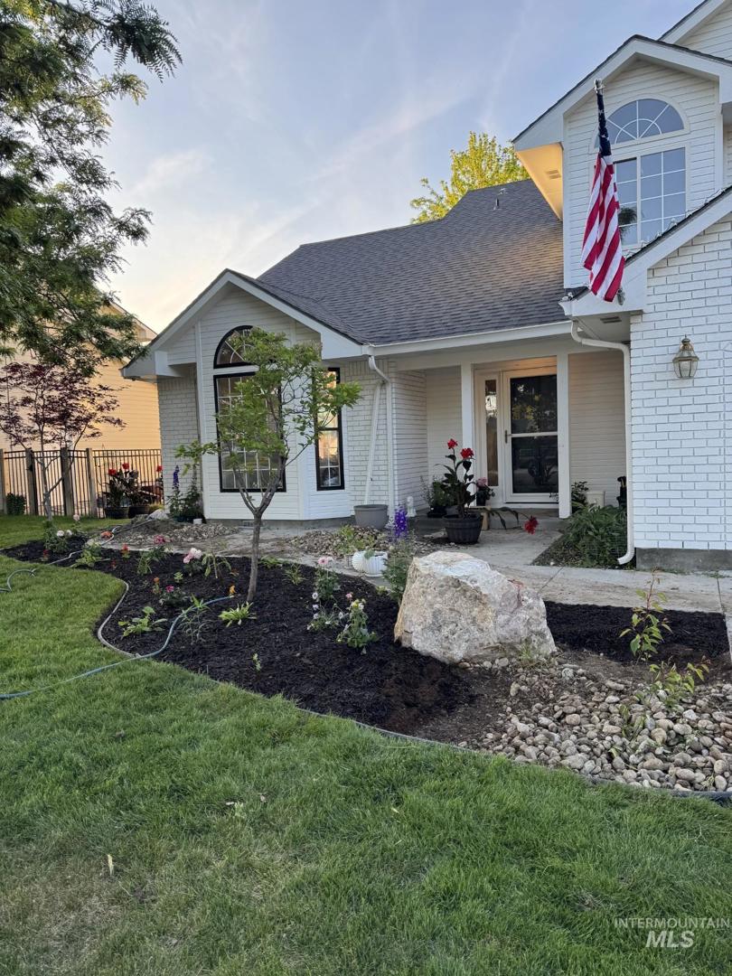 Location! Quiet Meridian neighborhood less than a mile from downtown with close freeway access. Well-maintained home with fresh paint and new baseboards through part of the home. Features a desirable 3-car garage with ample parking, including RV space. The main floor includes a dedicated office, ideal for working from home. The kitchen is conveniently located next to a sliding door leading to the back patio with pergola, perfect for summer entertaining. The master bedroom overlooks the backyard, and the laundry room offers a utility sink with backyard access for added convenience. Enjoy vaulted ceilings, abundant natural light, newer durable carpet with thick pad, and a cozy wood-burning fireplace. Great opportunity in a sought-after Meridian location, close to downtown amenities, shopping, schools and easy commuting.