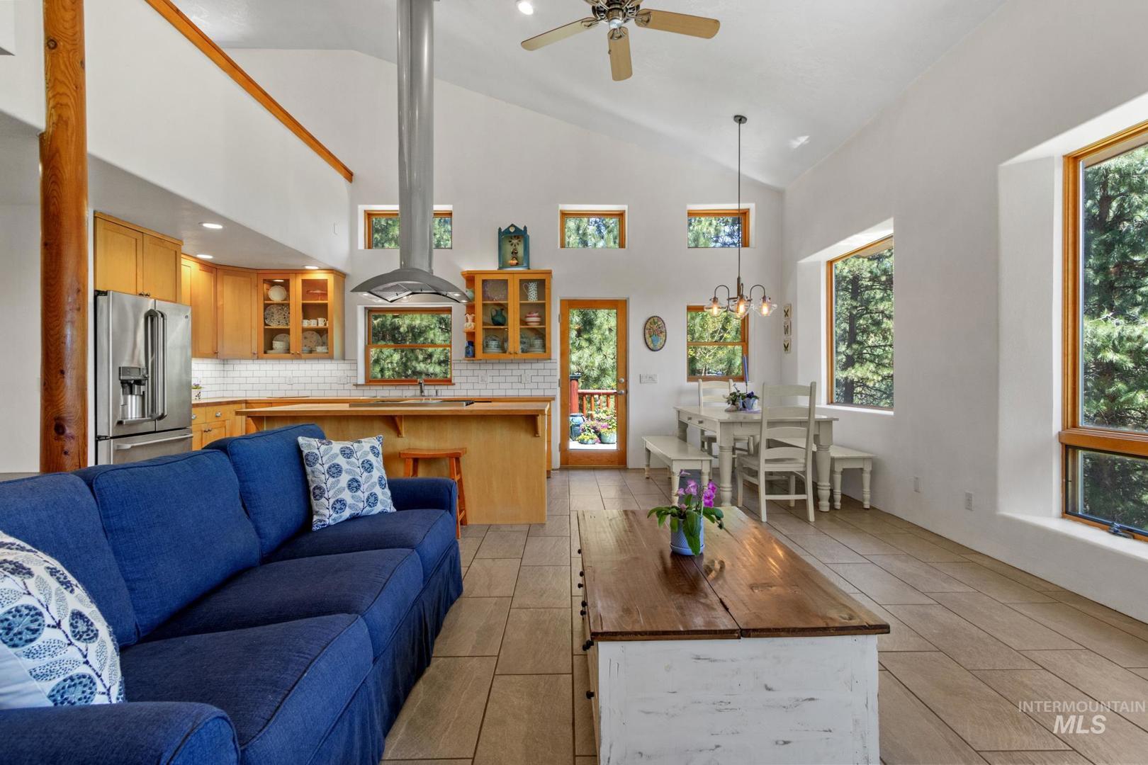 Looking for a private and quiet haven? This Wilderness Ranch property may be your dream come true! Featuring Faswall block construction, this home is energy efficient, as well as beautiful. The soaring two-story ceiling of the great room gives a light and airy feel, with a large loft for lounging, watching TV, or playing games. The kitchen has butcher block counters, white subway tile backsplash, gas range and oven, and plenty of counter space. Large pantry around the corner. Spacious primary bedroom ensuite with walk in closet, and SAUNA! The walk-out, daylight basement leads out onto a sunny deck, with a jacuzzi tub to relax in. Radiant floor heating system on the main and lower levels, plus pellet stove for toasty winter evenings. Home is wired for whole house generator. Did I mention the water softener? Enjoy a green grass yard in the summer with automatic sprinklers, complete with elk, deer, and turkeys visiting your back yard. Pride of ownership is evident in every aspect of this property. SURROUNDED BY/ADJACENT TO 70 ACRES OF COMMON AREA. Drone virtual tour available.