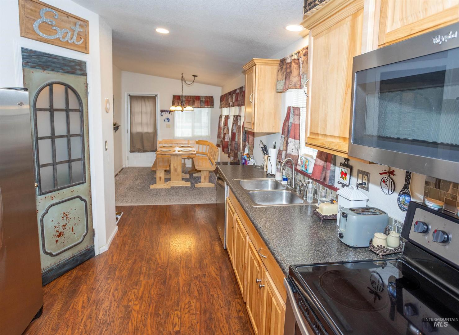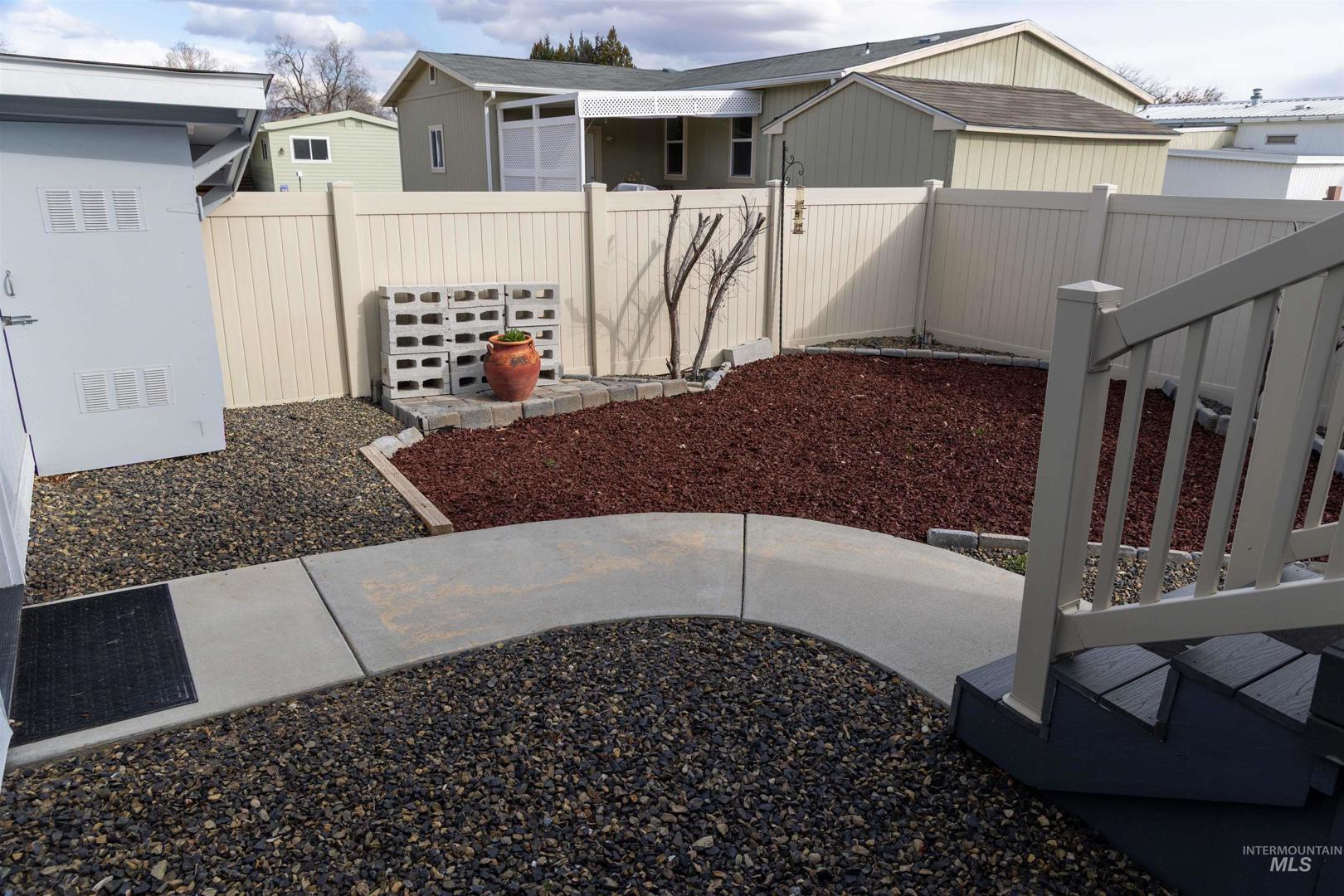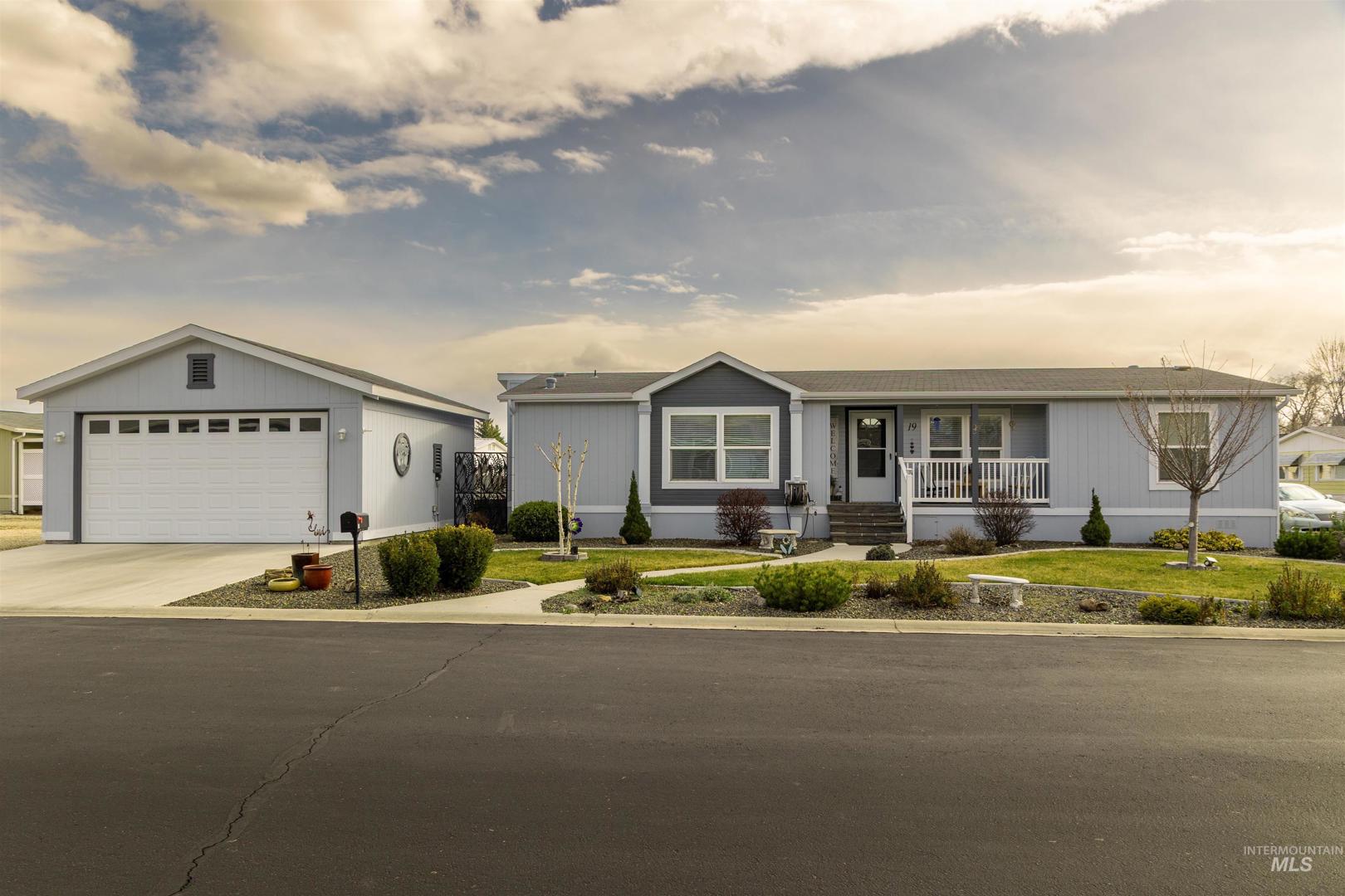 This beautiful home is in one of the nicest and most desirable mobile home parks in the area. Aspen Creek, 55 and over community, provides a very peaceful, friendly and secure neighborhood. This home was built in 1998 and has three bedrooms (split plan) and two bathrooms. The kitchen features modern stainless steel whirlpool appliances and a large lighted pantry. Just off the kitchen, the large dining area provides great morning sunlight. A dramatic vaulted ceiling makes the living room feel extra spacious. The north-facing front window overlooks a beautifully landscaped front yard with auto sprinklers. This is one of the prettiest yards in the park! A cute little front porch is a great place to enjoy your morning coffee. The fenced private back yard has been recently remodeled into a low maintenance area. Recent updates to the home include exterior painting and a brand new modern efficient heat pump/HVAC system, both completed in 2024. A rare two-car garage with ample storage and a built-in workbench makes this house a standout in the neighborhood and adds incredible value. Monthly lot rent includes water, sewer and trash and the use of the club house and pool. There are a lot of activities associated with the club house. Enjoy monthly potlucks, card games, crafts, ladies lunches, bingo night, and other community activities. This home is move-in ready. Welcome to your new home!