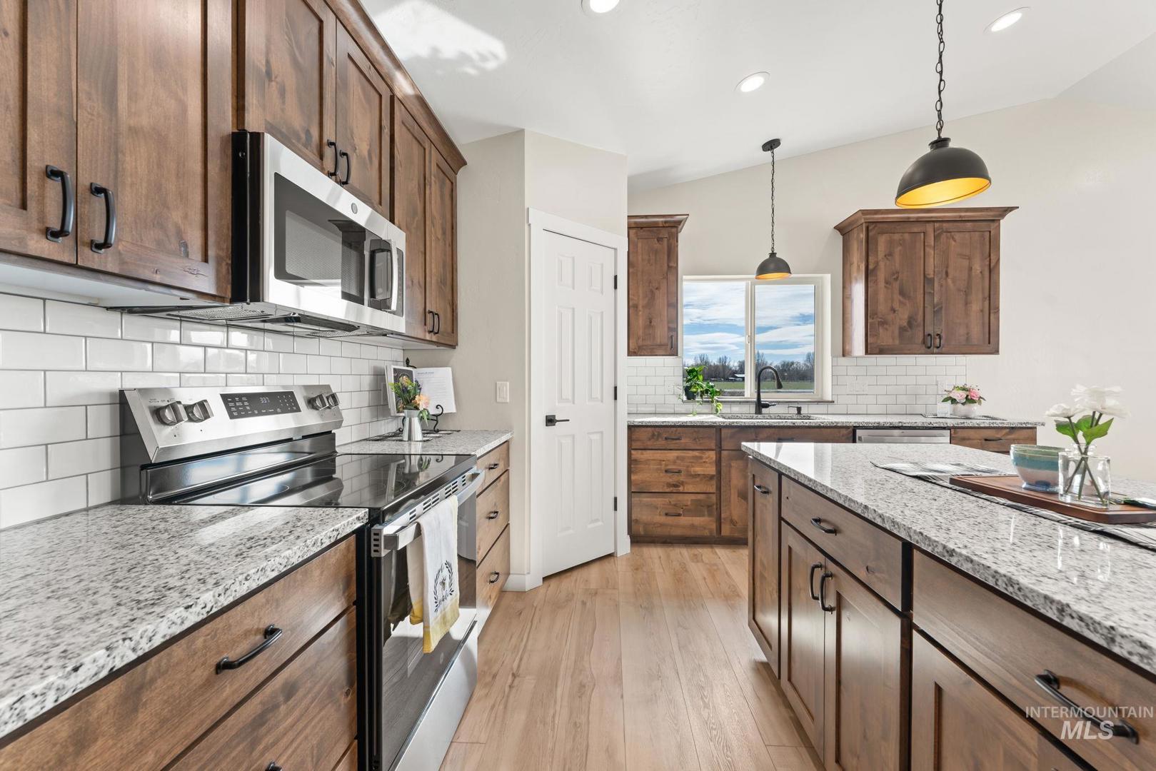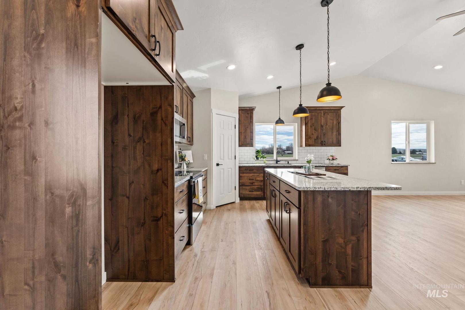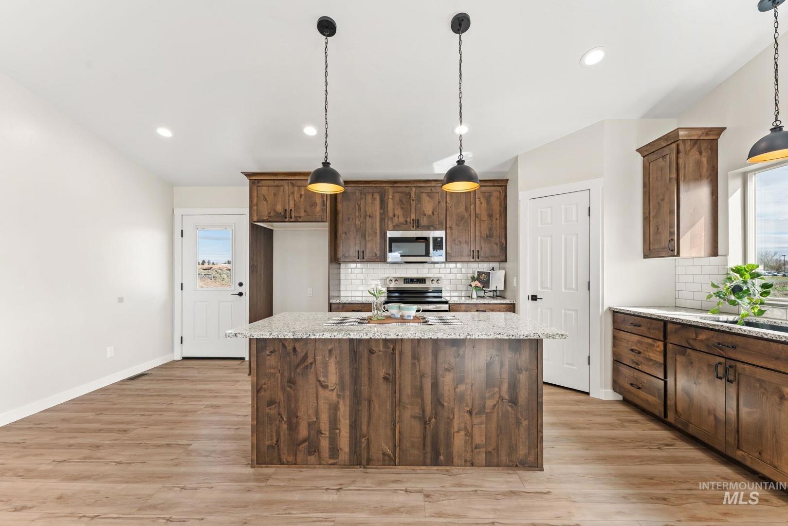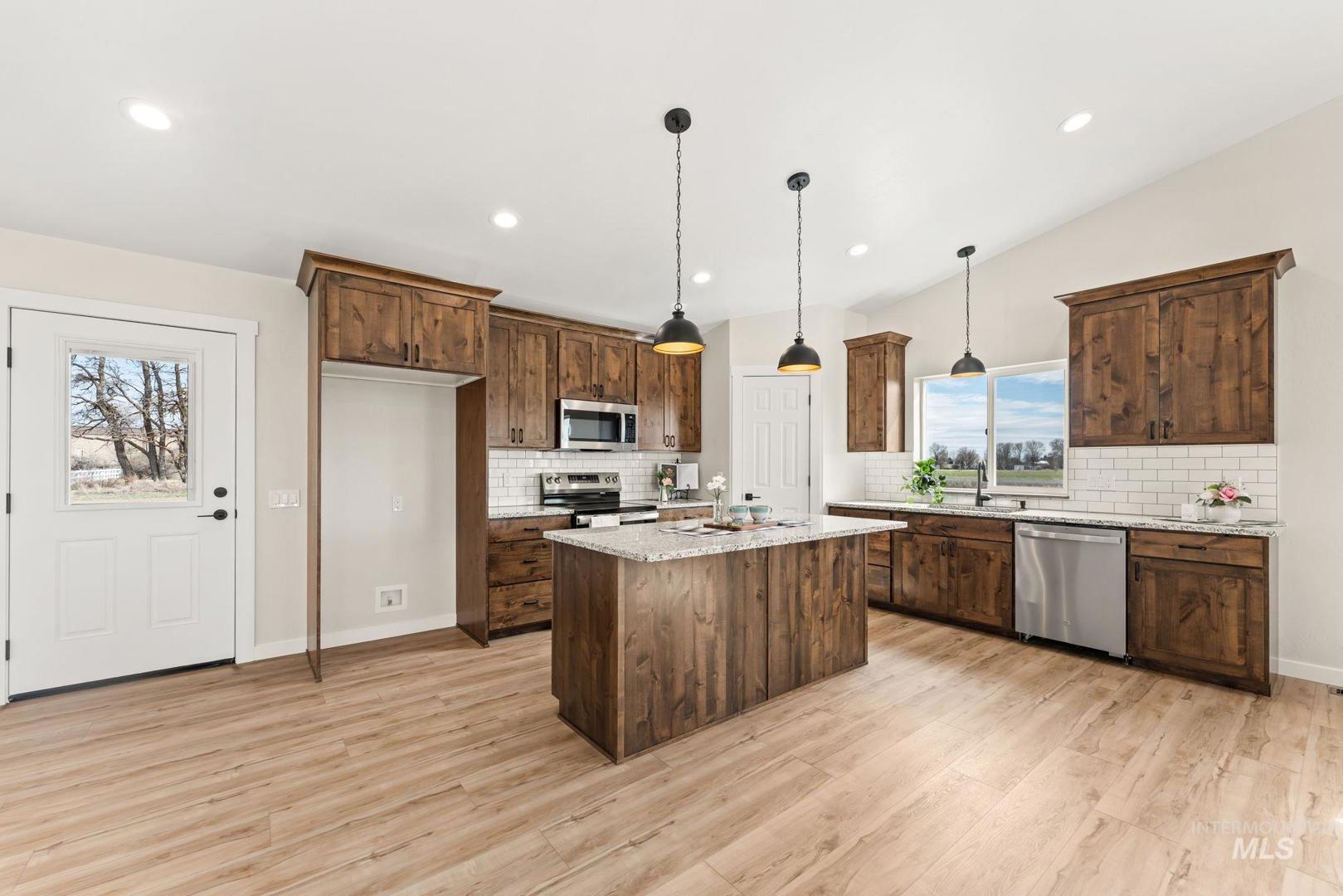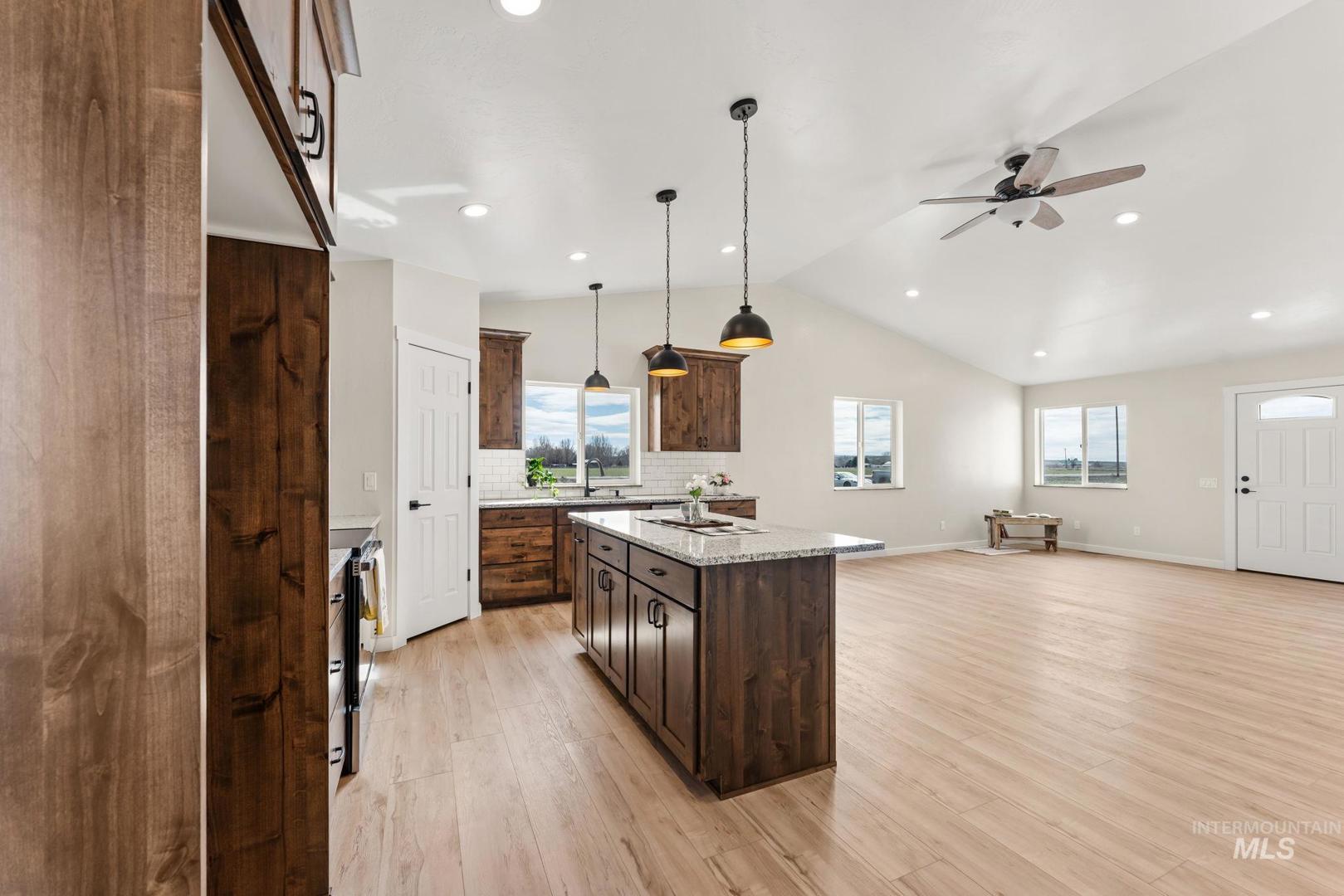 Outwest Properties does it again! This beautiful new single-level home offers 1,600 sq ft with a spacious four-bedroom, two-bath split bedroom floor plan designed for comfort and privacy. Situated on a full 1-acre lot, this property offers the perfect blend of peaceful country living while still being just minutes from town. Inside, you`ll find an open-concept layout with vaulted ceilings that create a bright and airy feel throughout the home. The modern kitchen features granite countertops and a large island, ideal for cooking, entertaining, and gathering. The private primary suite provides a relaxing retreat with its own en-suite bathroom with a solid wood barndoor. With acreage and plenty of outdoor space, there’s room for RV parking, a future shop, animals, or all your Idaho lifestyle needs.BTVAI