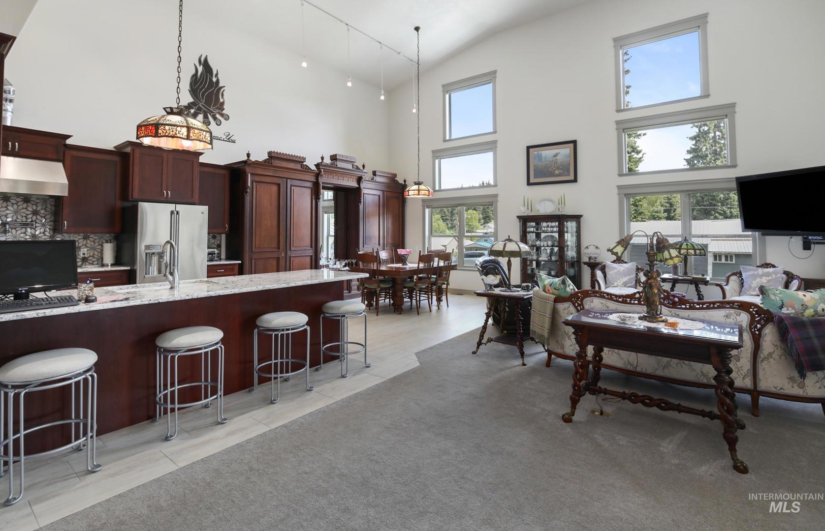 Welcome to a truly unique property that blends historic charm with modern convenience in the quiet mountain town of Pierce. This custom-built shop-house offers the perfect blend of function and comfort, with space, style, and standout features you won’t find anywhere else. Step into the main-level primary suite, where you’ll enjoy the ease of single-level living complete with a private en-suite bathroom. All designed for practical luxury. The kitchen is a showstopper, anchored by a stunning custom-installed black walnut pantry imported from an 1800s home in Philadelphia—an incredible piece of history that sets this home apart. An antique Cherry facade fitted in the master bedroom is breathtaking. The heart of the living area boasts soaring 19-foot vaulted ceilings that flood the space with natural light, creating a warm, open atmosphere perfect for both quiet mornings and entertaining. Garage doors are 14` tall by 10` wide, RV hookups (2) 30 amp outlets. Generator is Generac porpane/electric. Additional lots across the street may be purchased as well.