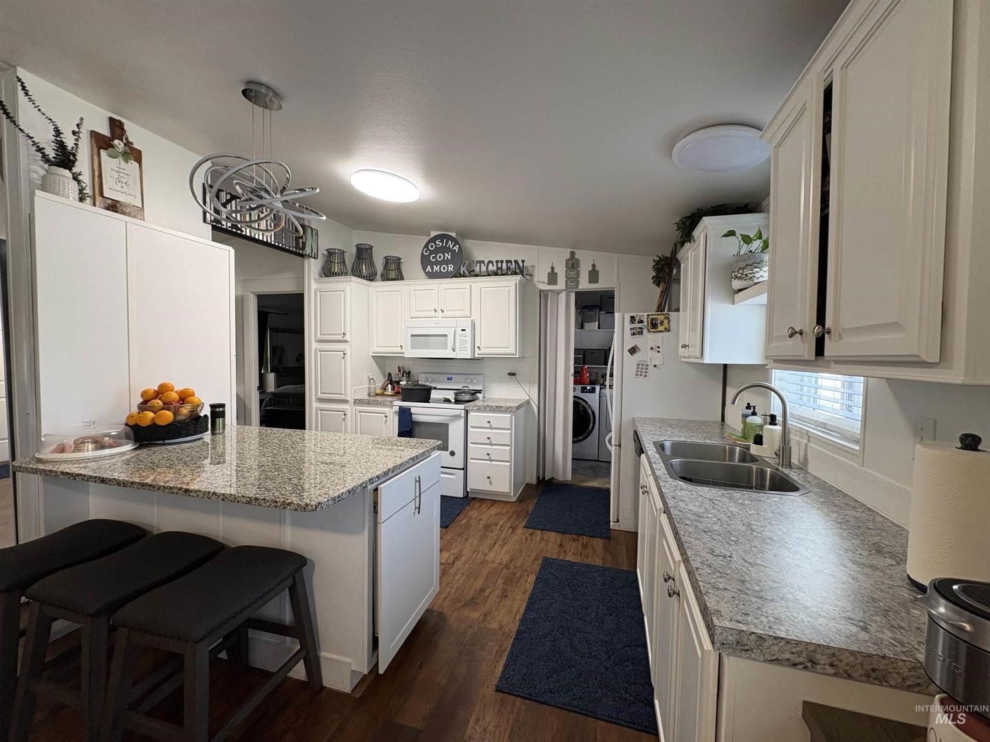 Pride of ownership! Totally remodeled 4 bedroom, 2 bathrooms, new interior and exterior paint, open kitchen concept with breakfast bar that oversees the dining area, large living room, split bedroom, remodeled bathroom, good size Primary bedroom with beautiful remodeled bathroom, glass tile walk in shower with a large walk in closet. This home sits on one of the largest lots in the MH Park, full landscape and full 6 ft cedar fence for privacy, 2 large patios to enjoy your gatherings with no side neighbors also includes a storage unit. This is one of the few affordable MH parks rent is $470 month.
