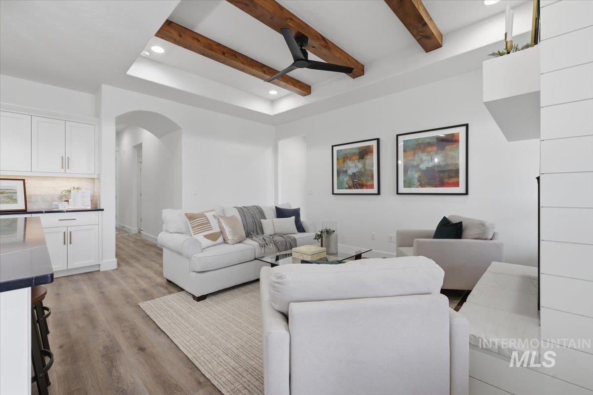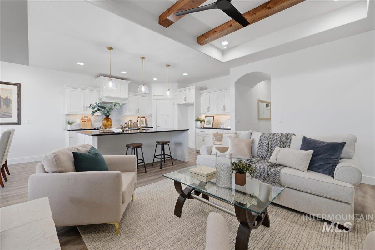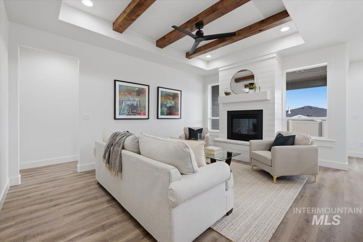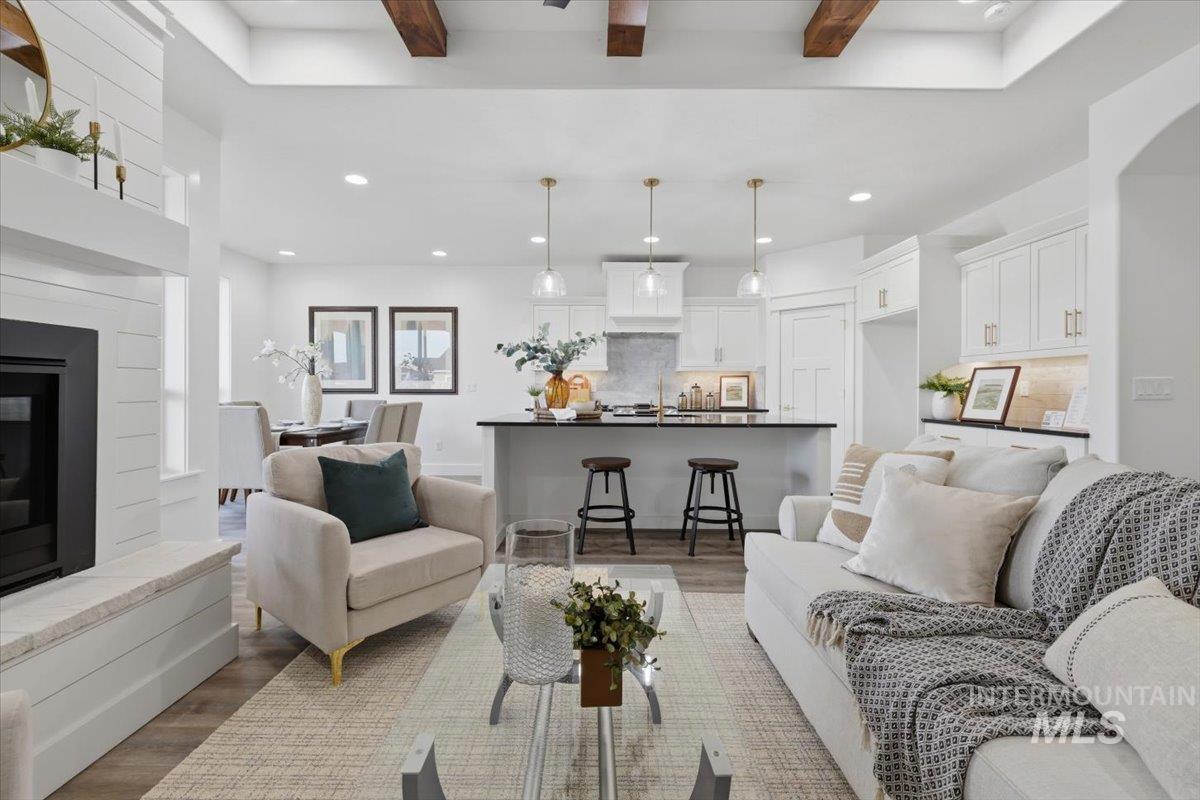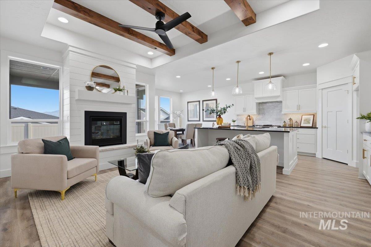 Welcome to the thoughtfully designed “Little Gem” by Sunrise Homes. This 1,676-square-foot single-level home features a smart split-bedroom layout with 3 bedrooms, a dedicated office, 2 full bathrooms, and a roomy RV garage. Inside, you’ll find a warm and open living area anchored by a cozy gas fireplace, perfect for relaxing or entertaining. The kitchen is both stylish and functional, with quartz countertops, custom cabinets, and a full tile backsplash that any home cook will appreciate. The primary suite offers its own en-suite bath, giving you a quiet place to unwind. Two more bedrooms add flexibility for guests, hobbies, or whatever you need. And if you’ve got a love for adventure, the attached RV garage is ready to keep your gear close and your travels easy. Located in Emmett’s Highland Subdivision.