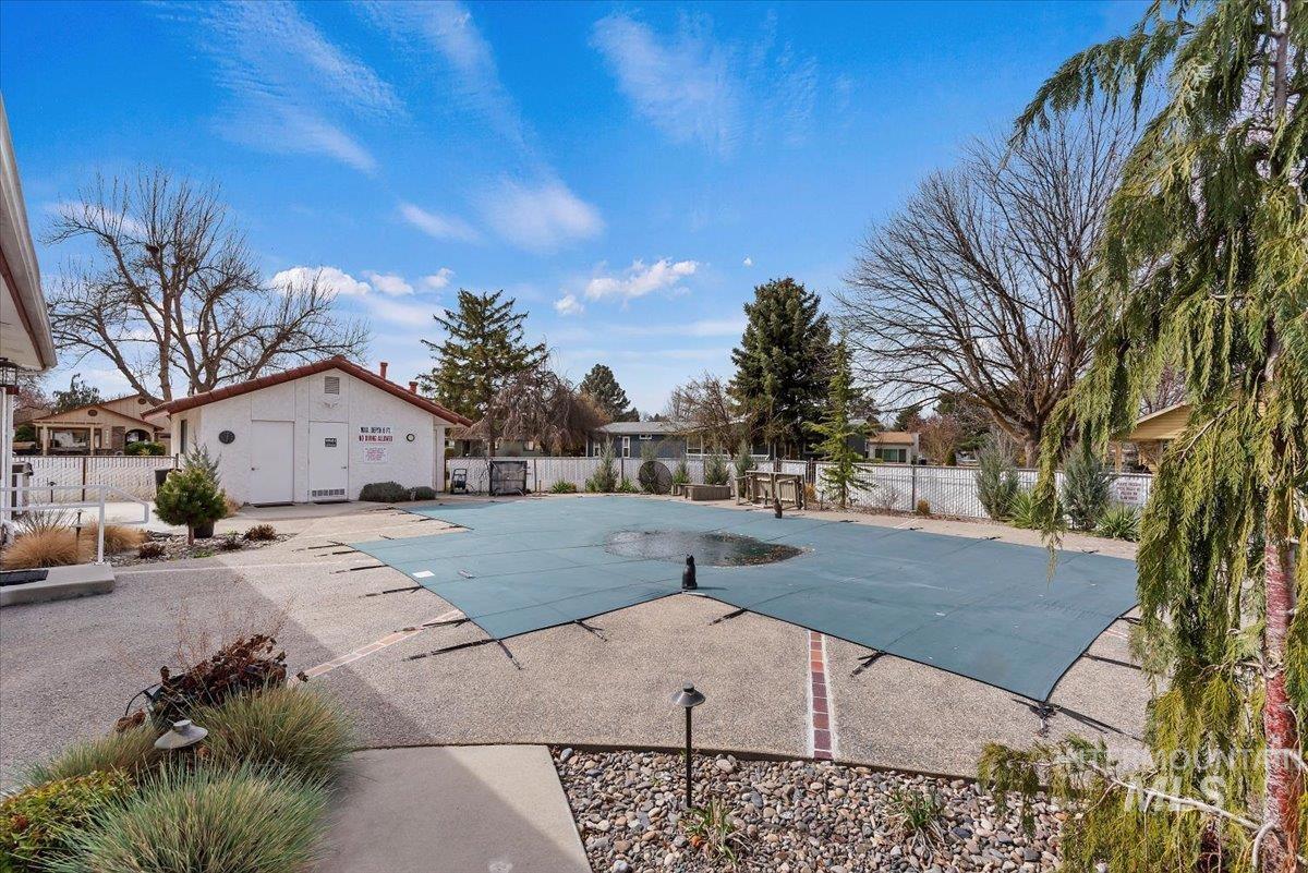 Welcome to easy living at its finest in this beautifully remodeled 2-bedroom, 2-bath home nestled in a vibrant 55+ community designed for both relaxation and connection. Thoughtfully updated, this home blends comfort and style with a bright, open layout and tasteful finishes throughout. The kitchen shines with elegant granite countertops, offering both beauty and functionality for everyday living or entertaining. Custom window coverings including plantation shutters add a polished touch while providing privacy and light control. Step outside to your own peaceful retreat—a backyard pond creates a serene setting perfect for morning coffee or unwinding at the end of the day. This active community offers an exceptional lifestyle with amenities including pickleball courts, a putting green, a sparkling pool, and convenient RV storage, perfect for snow birds —everything you need to stay active and social. Whether you`re looking to simplify, enjoy more leisure time, or just live where every day feels like a getaway, this home checks all the boxes.