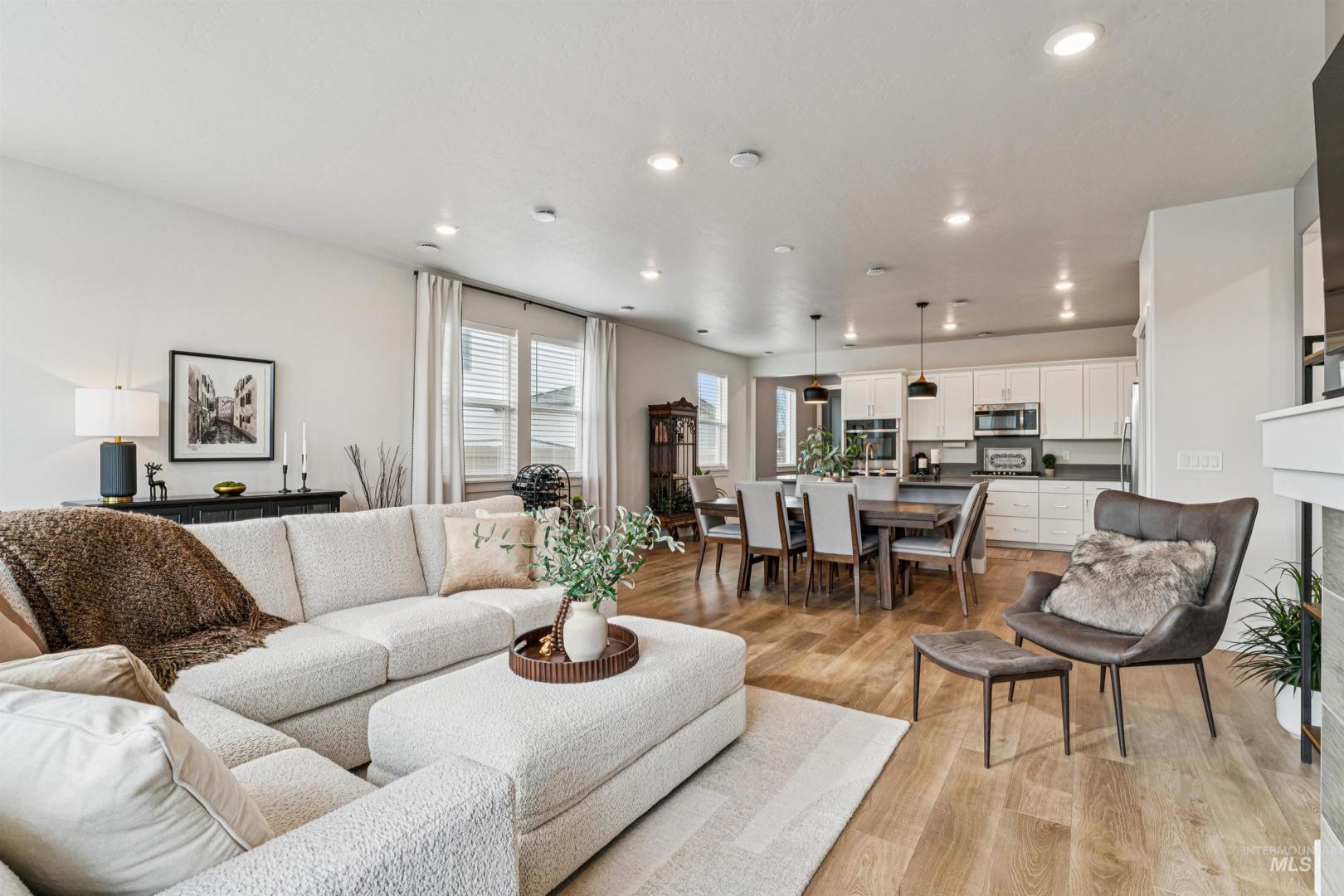 Single-level home with a rare 3-car garage and access to community amenities! This beautifully maintained 3 bedroom, 2 bathroom home offers 1,808 sq ft and is located in a desirable Caldwell, Idaho neighborhood in the heart of the Treasure Valley. The thoughtfully designed floor plan features comfortable living spaces, a functional kitchen, and an open layout ideal for both everyday living and entertaining. Natural light fills the home, creating a warm and inviting atmosphere throughout. The kitchen flows seamlessly into the main living areas, making it perfect for gatherings with family and friends. The primary suite provides a relaxing retreat, while additional bedrooms offer flexibility for guests, a home office, or hobbies. Step outside to enjoy a beautifully landscaped backyard with space to relax, garden, or entertain, creating the perfect setting for outdoor living. The 3-car garage features durable epoxy floors, offering a clean, polished space for parking, storage, or projects. Residents enjoy fantastic community amenities including a community pool, park, children’s playground, green space, and walking trails, providing plenty of opportunities to stay active and enjoy the outdoors. Conveniently located near shopping, dining, schools, and easy access to the Boise metro area, this home offers the ideal blend of comfort, space, and community living.