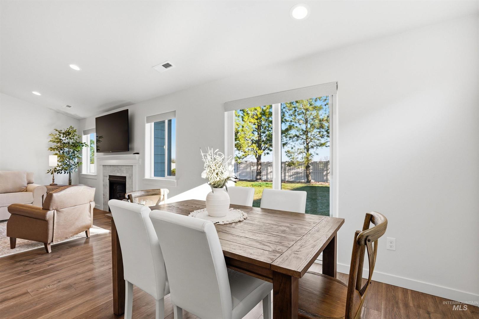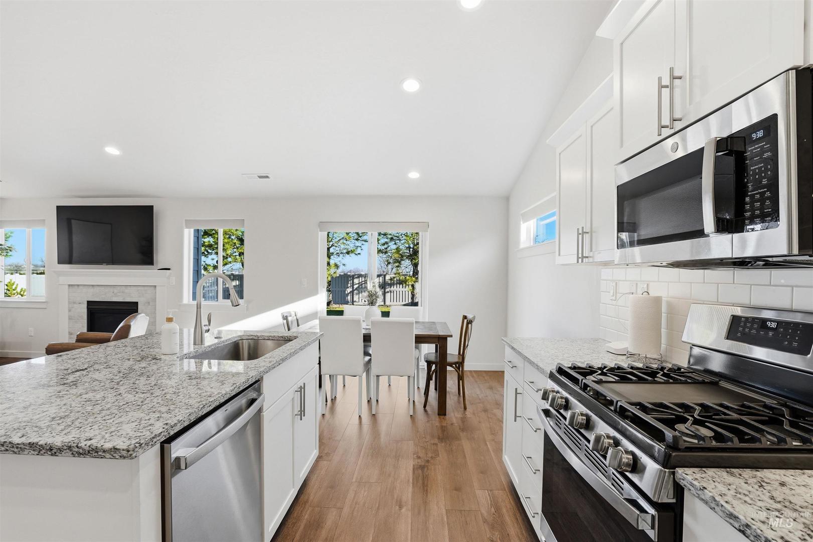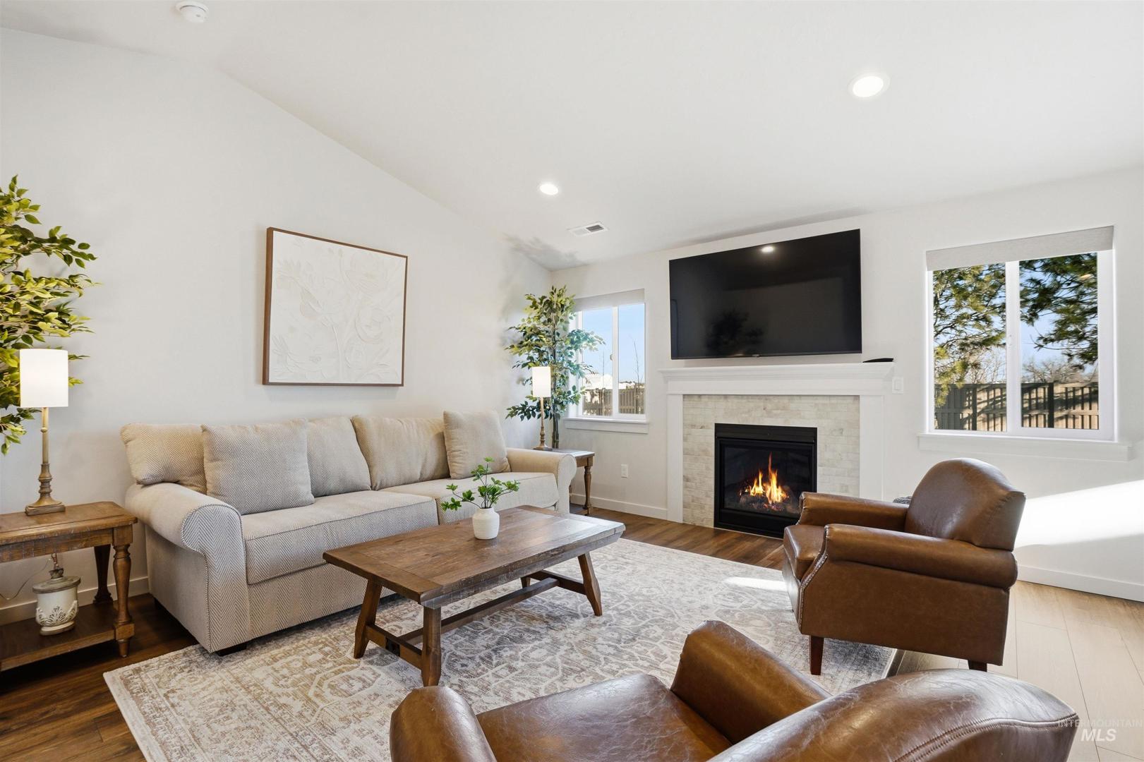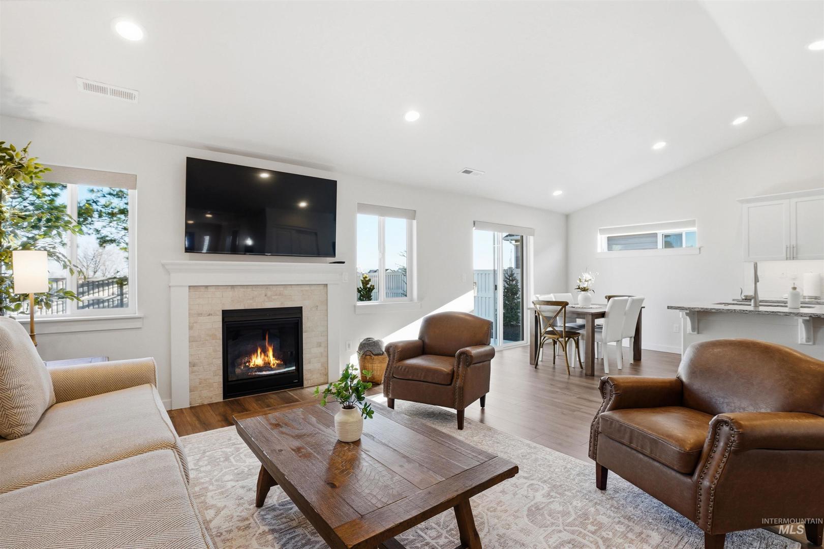 Welcome to this beautifully maintained, better than new home built in 2023, offering 3 bedrooms, 2 bathrooms, and 1408 square feet of thoughtfully designed living space. Situated on a spacious lot that includes RV parking with no rear neighbors and mature trees, you`ll enjoy added privacy and room to relax or entertain. Inside you will find upgrades throughout, including modern light fixtures, plantation shutters with wood framed windows, and a gas fireplace that anchors the main living area. LVP flooring throughout the common living spaces and upgraded carpet pad in the bedrooms. The vaulted ceilings add an open, airy feel, while the gas stove and granite countertops add both function and charm. The primary suite features dual vanities, two walk in closets, and a walk in shower. This home combines modern finishes, a desirable layout, and a peaceful setting ready for you to move in and enjoy. Option to purchase home fully furnished or separately purchase furniture and appliances if desired.