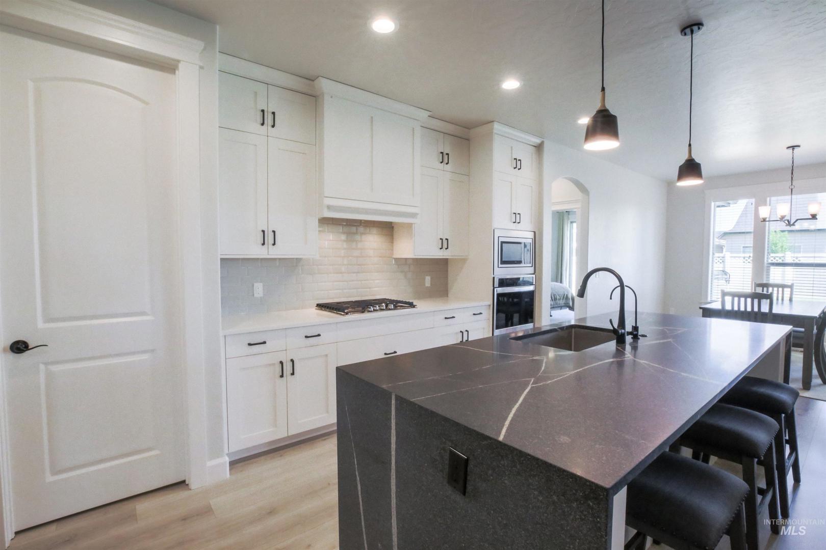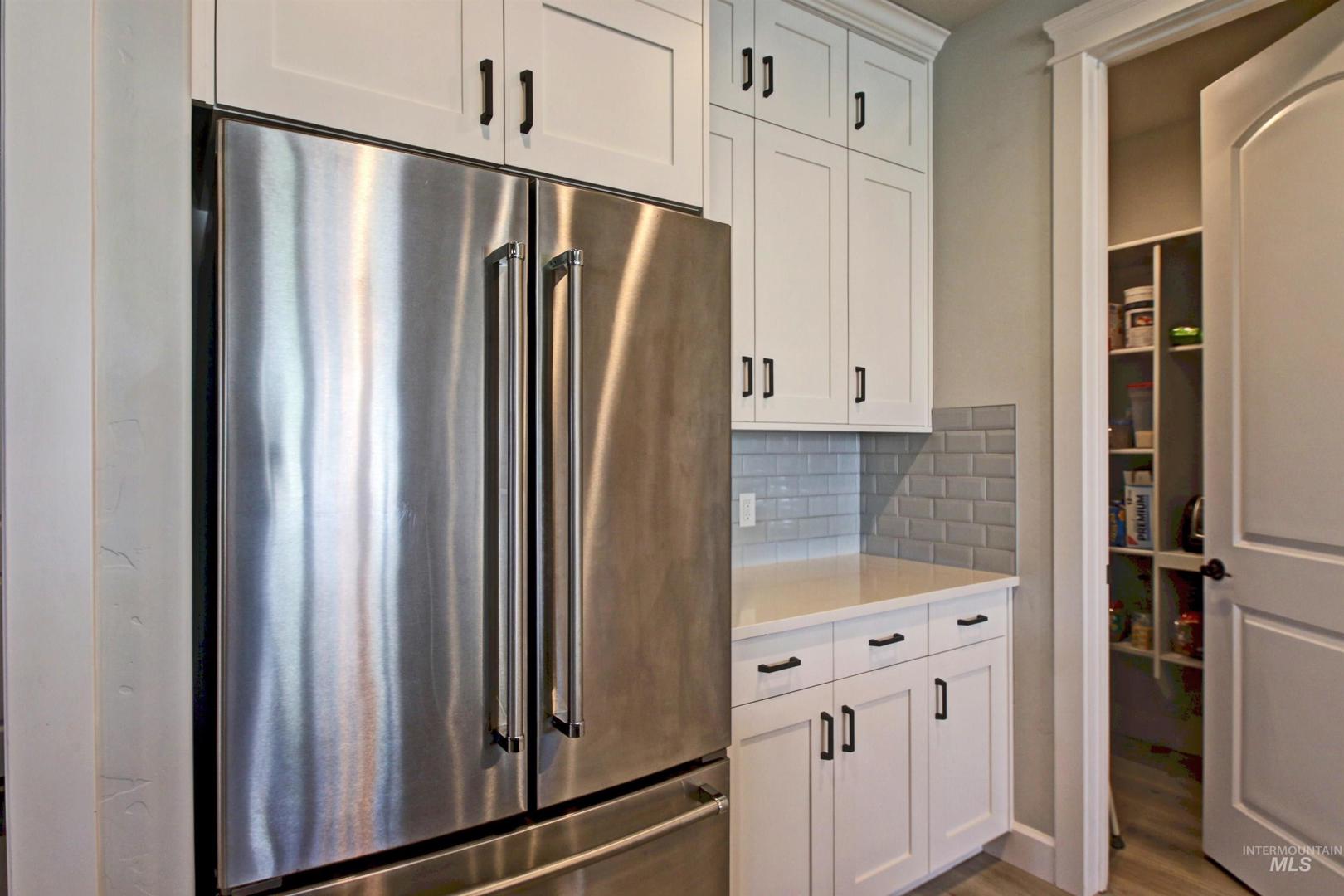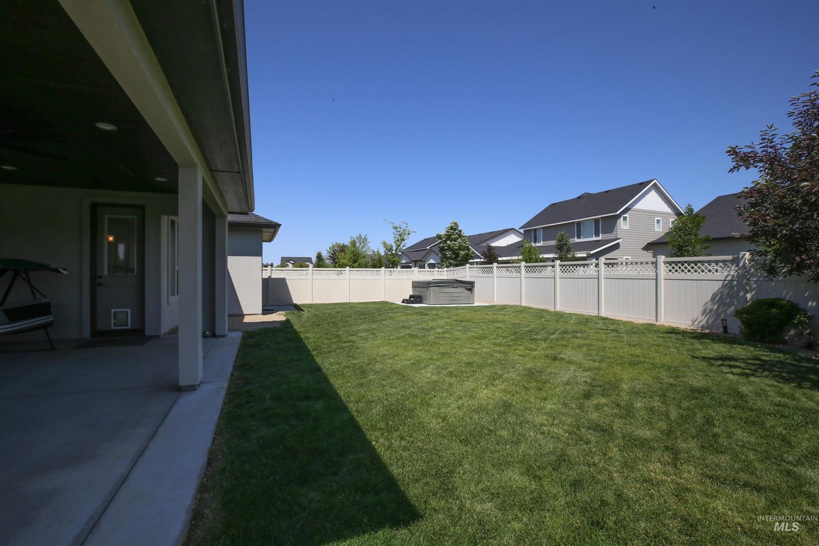 This lovely single level, easy care stucco home with 3 bedrooms, plus an office truly lives large. Stunning custom paint accents, trayed ceiling, and a cozy gas fireplace. Kitchen has quartz countertops and an upgraded stone waterfall over the island that matches the mantle, a farmhouse sink, refrigerator, gas stovetop, and walk in pantry. Additional amenities include a reverse osmosis water filtration system (just upgraded in Jan-26), stand-alone icemaker, 2" blinds, ceiling fans throughout, smart home wiring w/ high speed, and a mud bench area. The primary has a trayed ceiling & door to 2nd patio. Relax in the soaker tub & enjoy tiled floors, dual vanity, walk-in shower & large walk-in closet. North facing backyard with gas stub, gates on both sides, a covered patio and a full sprinkler system with pressured irrigation. Hot Tub also included! Finished garage with epoxy floors, water softener, on demand tankless gas hot water heater. Neighbors on ONE side only (next to community space) with privacy and easy parking. Washer, dryer, fridge, plus Nordic hot tub included. Bridgetower West offers brick paver streets, a community pool, clubhouse, and sport court.