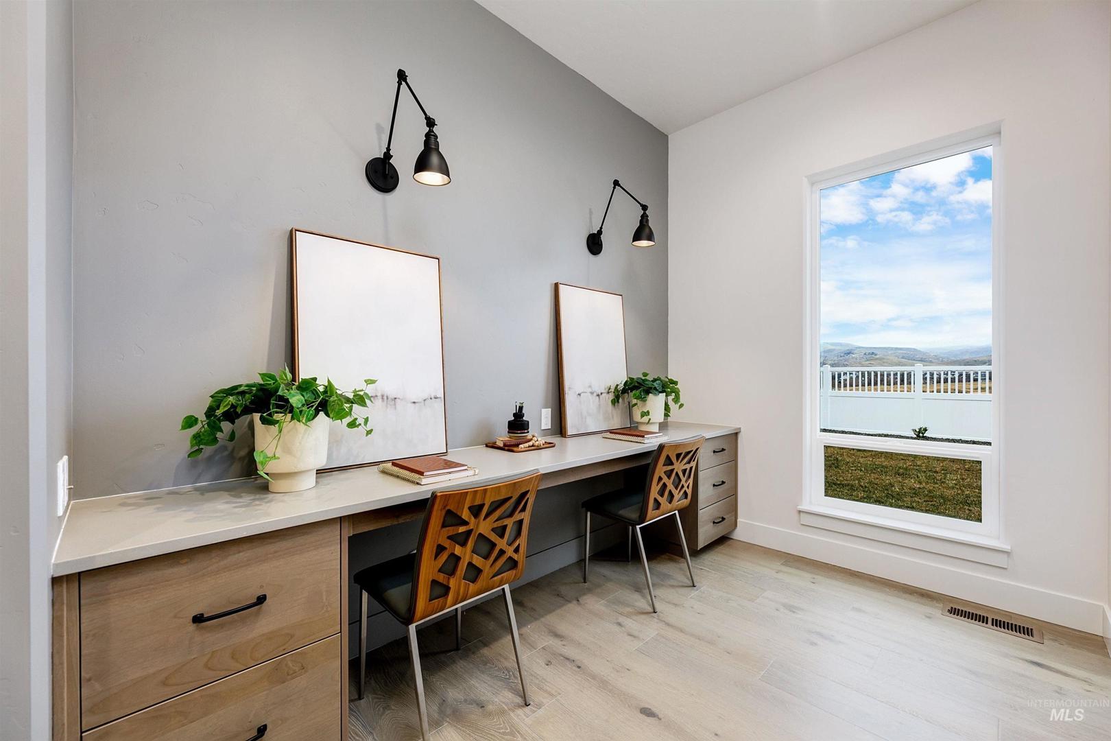Step into this Elkhorn home with an RV garage. With recreation around every corner, this home is the perfect place to enjoy everything the Idaho lifestyle has to offer. Enter the great room, where you can cozy up by the fireplace or take in the views outside. Nearby, the gourmet kitchen impresses with sleek design and standout features, including tall cabinetry, a buffet bar, and a wraparound butler’s pantry. Upstairs, the luxurious primary suite features a morning room, an expansive walk-in closet, and a modern bath centered around a freestanding tub set beneath sunlit windows. A flexible loft, tech room, and several spacious bedrooms complete the home. This is your last opportunity to own a home in Sky Mesa, our signature community in Meridian, Idaho, featuring modern architecture, tree-lined walking paths, two infinity-edge pools, and green spaces, all within a short drive to exceptional schools, dining, and everyday conveniences. Home is To Be Built. Photos similar.