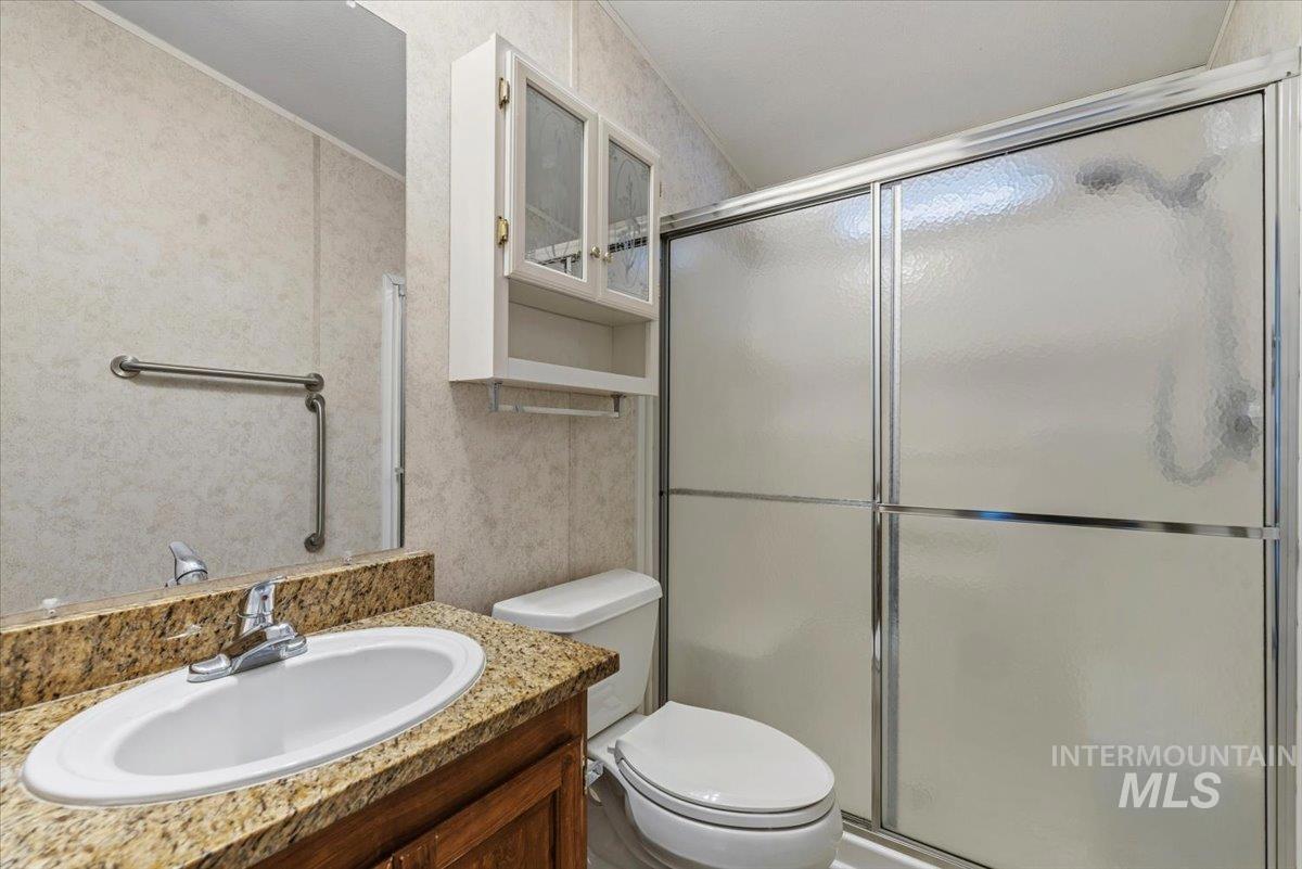 Don’t miss this Lock It & Leave It cozy Manu. in West Boise! This quaint 55+ Community offers amenities that include a clubhouse, in-ground swimming pool & a parking space for your RV or Trailer! Truly a way to keep some roots but continue to travel at will with confidence. This 3 bedroom 2 bath offers a large kitchen with eating area featuring granite countertops & center island. Split bedroom floor plan with a nice sized primary bedroom featuring a large walk-in closet & bathroom. Spacious living/family room with a nice large window for natural lighting. Fresh exterior paint & nice low maintenance Trex decking at both entries. This lot offers two storage sheds & a large carport. Aspen Creek lot rent is $716/month and includes water, sewer & trash services. Interested parties must apply with & be approved by the Management Office prior to offer acceptance. Call Listing Agent with any questions!
