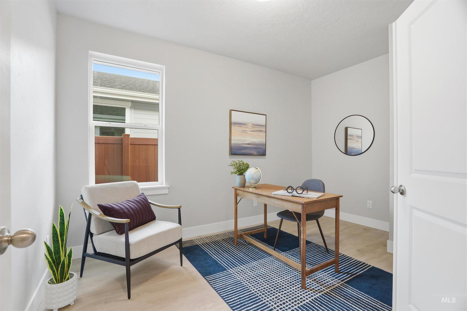 Introducing PrairieFire 55+ Community in Meridian! The Riviera ends your search! This home features 9` ceilings, hard surface throughout, converted flex room to another bedroom, open great room that flows into the kitchen and nook, and so much more! 2 bedrooms plus an office. This home is HERS and Energy Star rated with annual energy savings! HOA maintains front and backyard landscaping. $35k promotion if closing by December 31st, 2025.