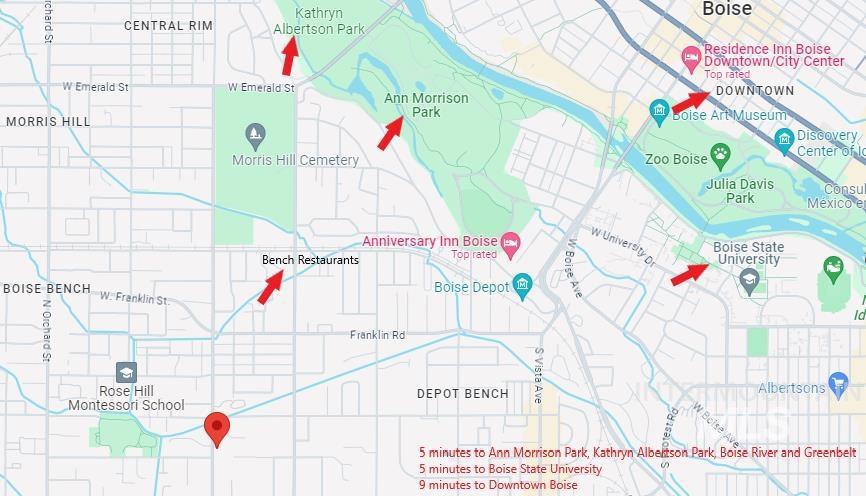 Tucked away from the street, this gorgeous new construction offers privacy and a quiet location, with RV parking & no HOA. Versatile layout with guest bedroom & full bath on the main. Light floods into this 4 bedrooms, 3 full baths, 3 (yes THREE) car garage stunner, upgraded with all the bells & whistles. Architecturally inspiring finishes, LVP, & stylish tilework complement a sprawling kitchen with quartz counters, locally built Euro-cabinetry, pantry & large island. Primary suite offers oversized closet & walk-in shower. Tucked away off the street, in the heart of Boise`s new hot spot on the Depot Bench. The vibrant neighborhood is booming with hip new restaurants, parks, schools, & boutiques, all in walking distance. Ann Morrison park, the river, & downtown, this location is unbeatable. Located behind 914 Roosevelt, and Cassia is the cross street. Exclusively custom builder, Kouba Homes, is known for taking pride in quality construction, paying attention to the details, & thinking outside of the box with innovative design & workmanship. Locally owned and operated, this highly respected builder has been designing & building for 20 years in the Treasure Valley. Due for completion early November.