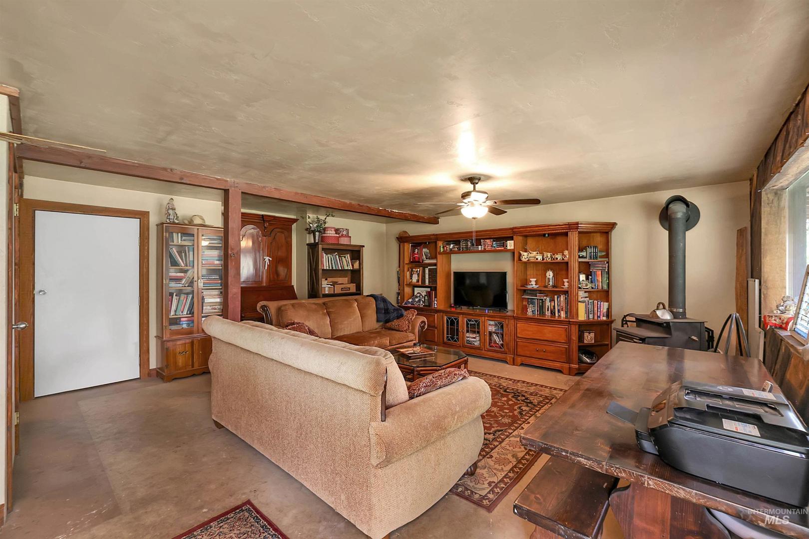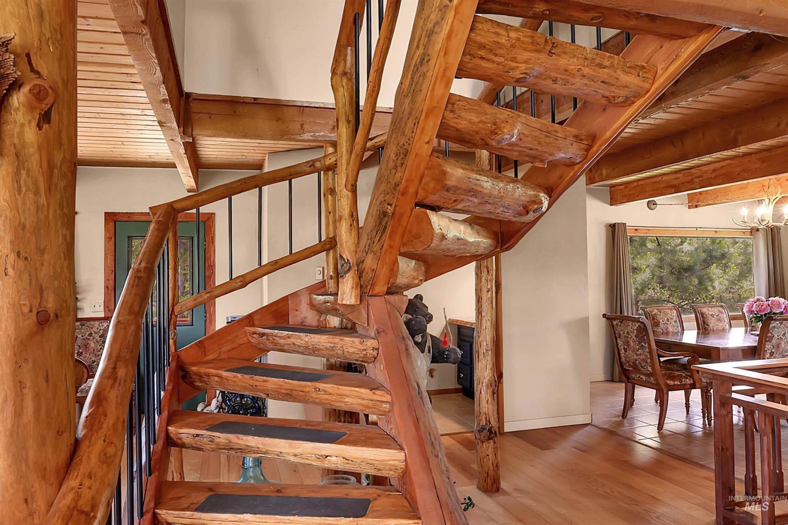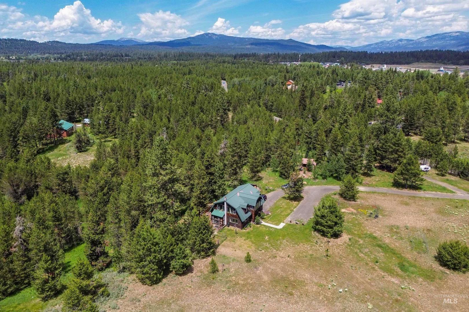 Tucked away on 1.71 acres just minutes from downtown McCall, this inviting mountain retreat blends rustic charm with modern comfort. Step inside and be greeted by natural light, highlighting hardwood floors, tongue-and-groove ceilings, and a striking log staircase at the heart of the home. The spacious living area with a cozy wood stove flows into the dining space and open kitchen—ideal for entertaining. The vaulted primary suite offers a peaceful escape with a private bath and abundant natural light, while three additional rooms upstairs provide flexibility for guests or a home office. The walk-out basement adds a comfortable family room perfect for movie nights or game time. Step outside to enjoy your own private meadow, two chicken coops, and the tranquil sounds of Williams Creek—home to a few trout. A generous deck offers mountain and timber views, perfect for relaxing or hosting. Seller`s operated a successful Airbnb, this property offers income potential as well as the perfect mountain sanctuary.