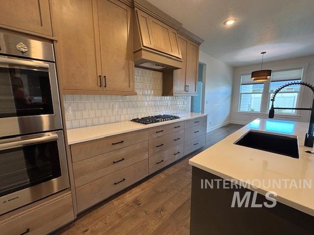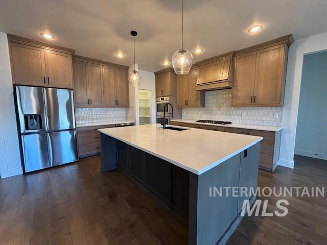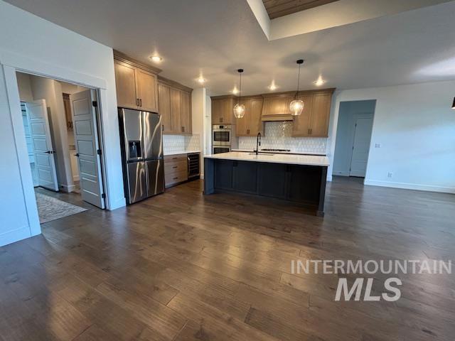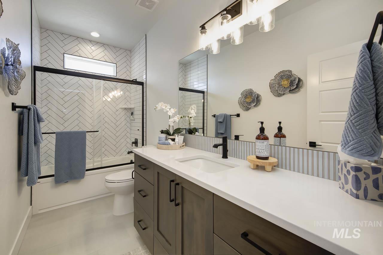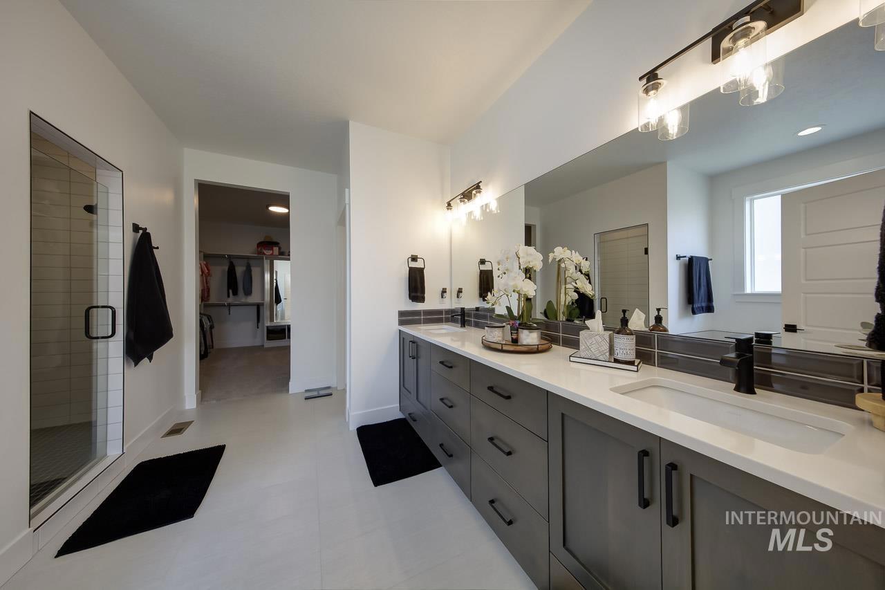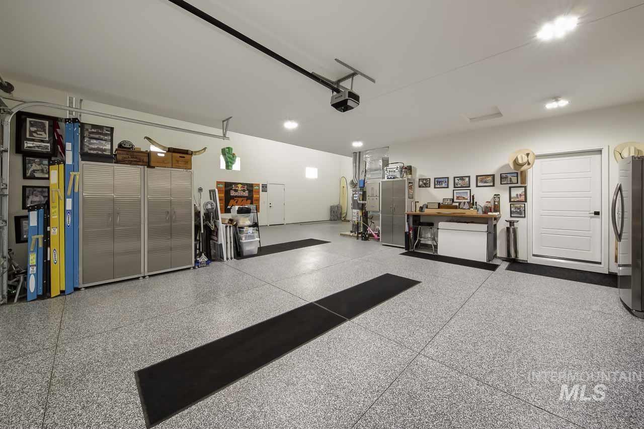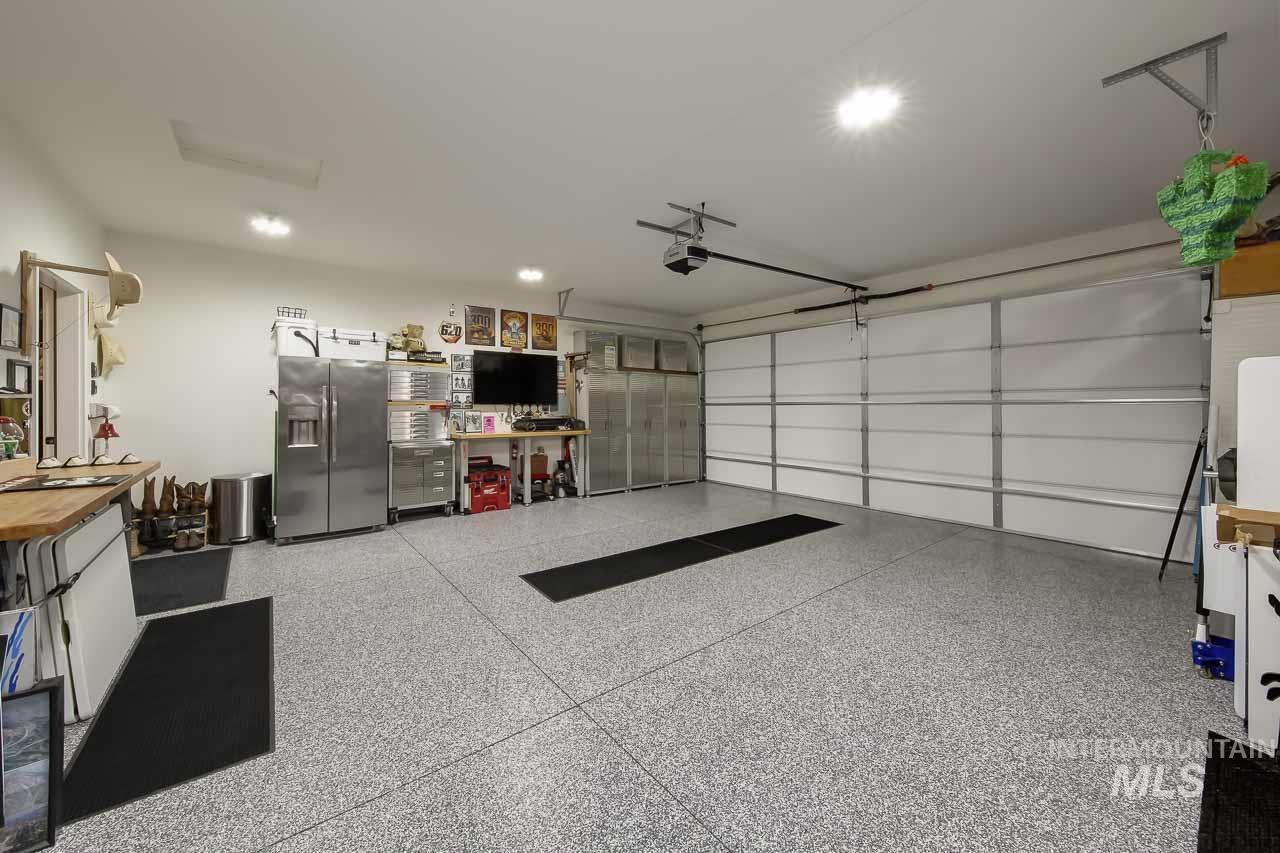 Motivated sellers are offering this stunning single level modern home featuring dual master suites and an impressive 40-foot epoxy finished RV garage. Thoughtfully designed for comfort, flexibility, and style, this move in ready home is perfect for today’s modern lifestyle. The chef inspired kitchen is a true centerpiece, boasting an oversized island, sleek quartz countertops, double ovens, refrigerator, custom cabinetry with soft close pull outs, and abundant storage ideal for entertaining or everyday living. The open concept layout flows seamlessly into the living and dining areas, creating a spacious and inviting atmosphere. The home includes two large master suites, offering exceptional flexibility for multi-generational living, guests, or extended family. The primary suite serves as a luxurious private retreat, complete with a spa like soaking tub, walk in tile shower, dual vanities, and a massive walk in closet. Car and RV enthusiasts will love the expansive 40 foot RV garage with epoxy floors, providing ample space for your RV, boat, workshop, or other toys. Additional features include an easement between backyard neighbors, enhancing privacy and openness. With high-end finishes, a versatile layout, and motivated sellers, this exceptional home is ready for you to make it yours.