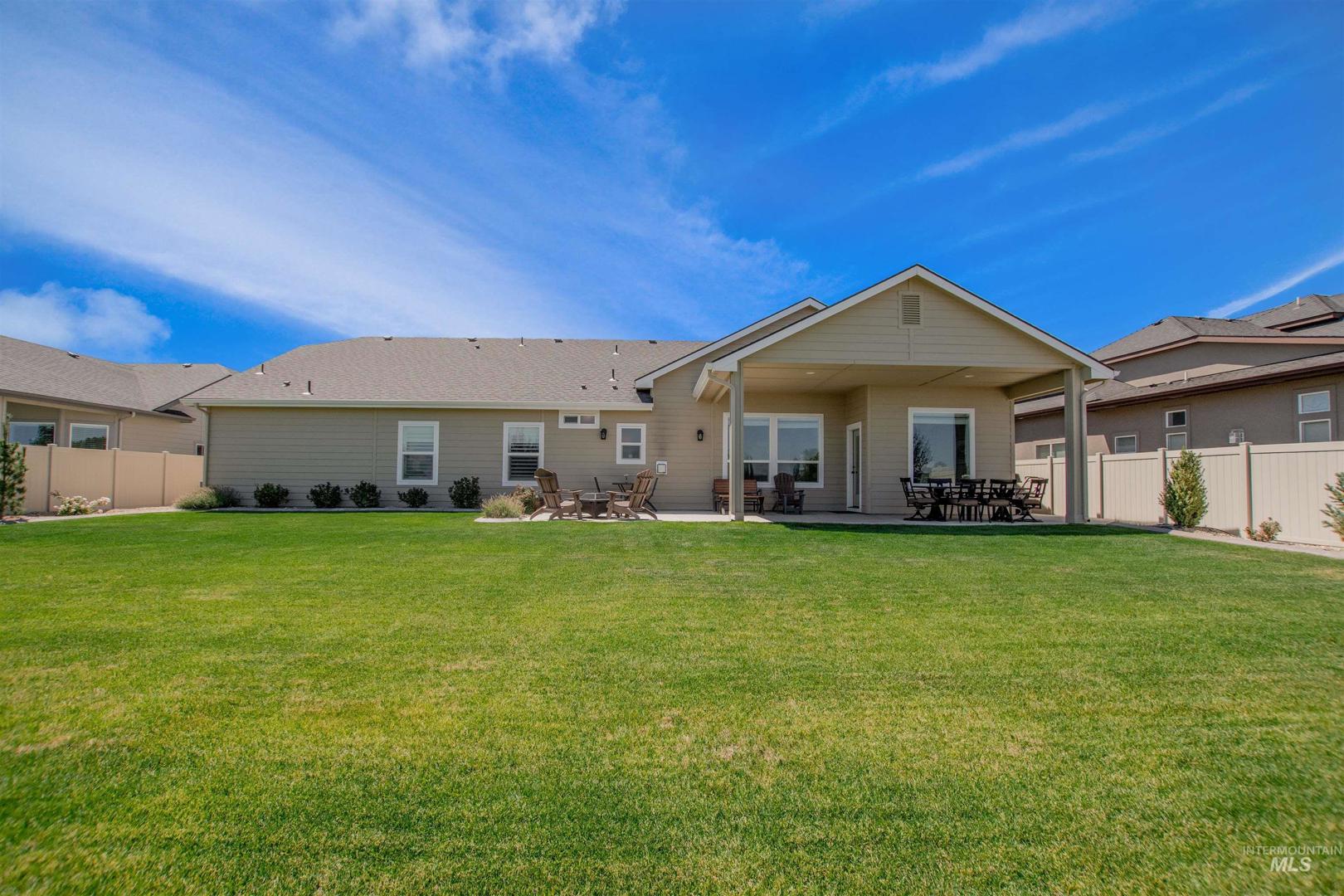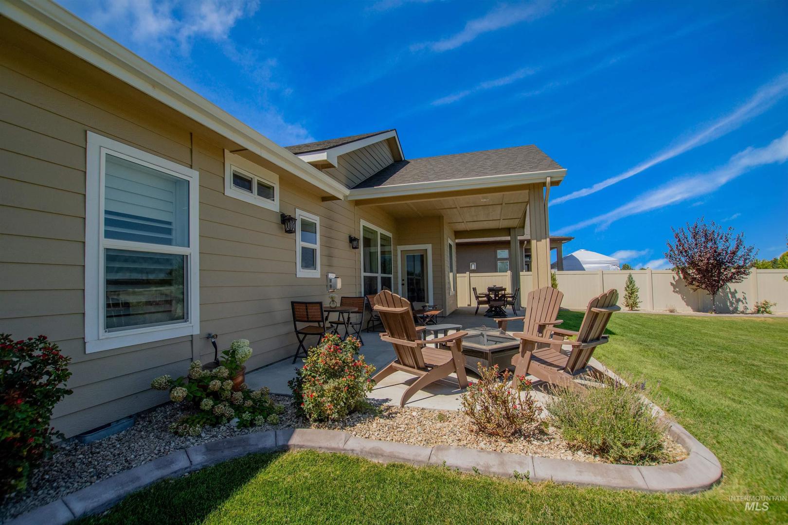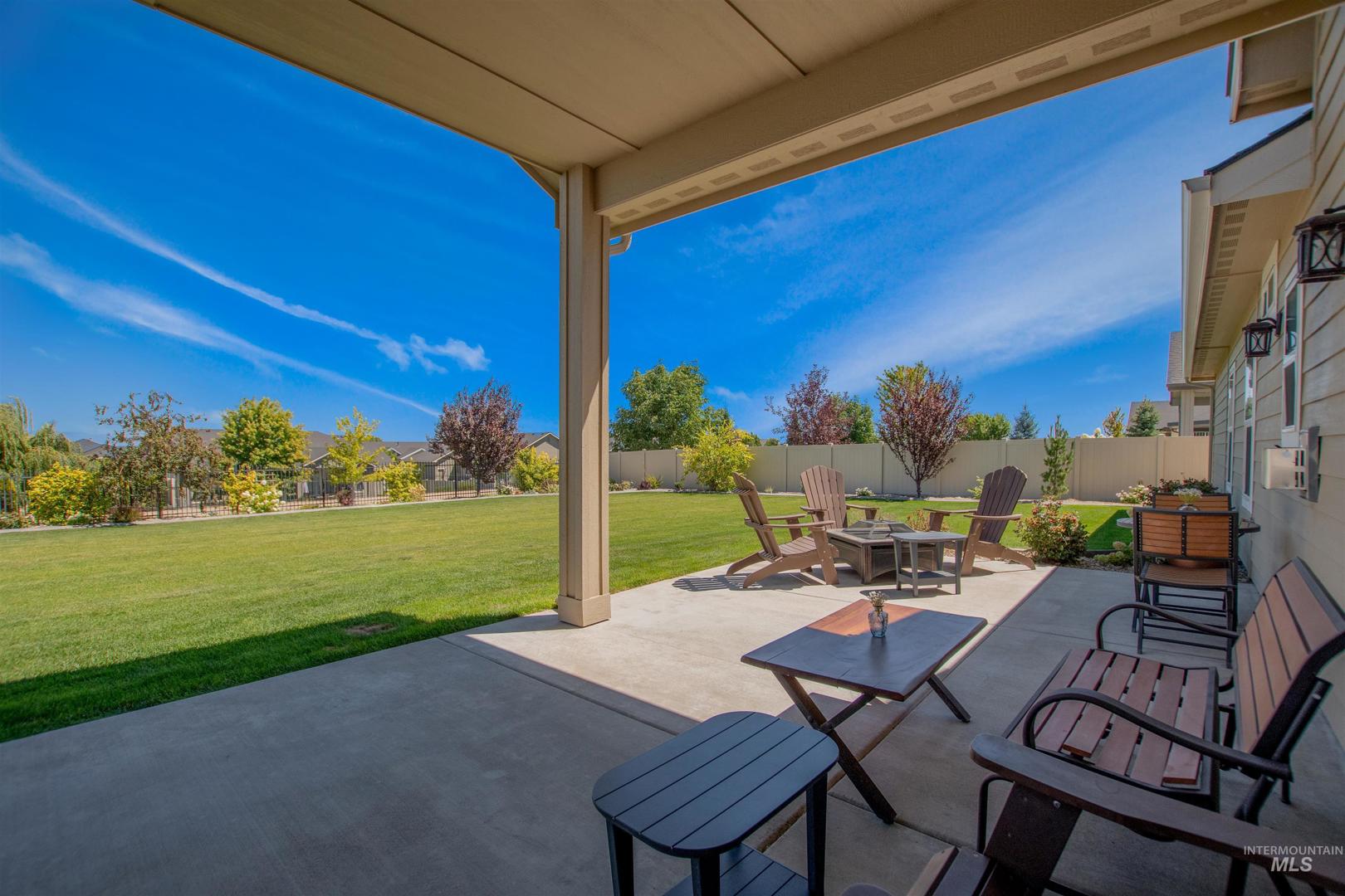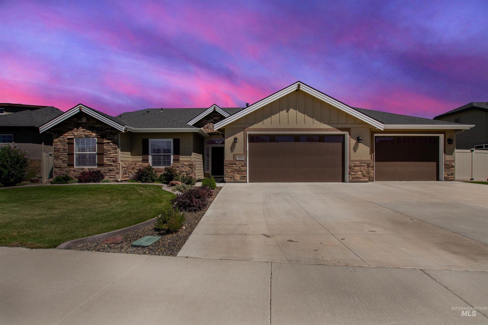 Gorgeous home in the highly sought after Sienna Hills Subdivision! 2nd bedroom is HUGE and can accommodate a King Bed, Couch, TV area, Desk-office area, and a Dresser. It could be used as a Second Master, a Multigenerational area, or a Bonus Room. Home features engineered hardwood floors, granite counters throughout, a coffer with beautiful beam like structures in the great room, plantation shutters, a gas fireplace, beautiful cabinetry, tons of natural light, and a stunning wooden arch structure in the entry. The laundry room includes a sink, cabinetry, and a mudroom organizer to store unwashed laundry. The artistically designed backyard feels like your own private park with no back neighbors. It has a HUGE patio area, partially covered -which can easily accommodate 14+ people for outside eating/entertainment. Views of the Boise Mountains. Community Pool, Clubhouse, Tennis, Pickleball, and Basketball. Close to Lake Lowell Recreational Area & the Wine Country.
