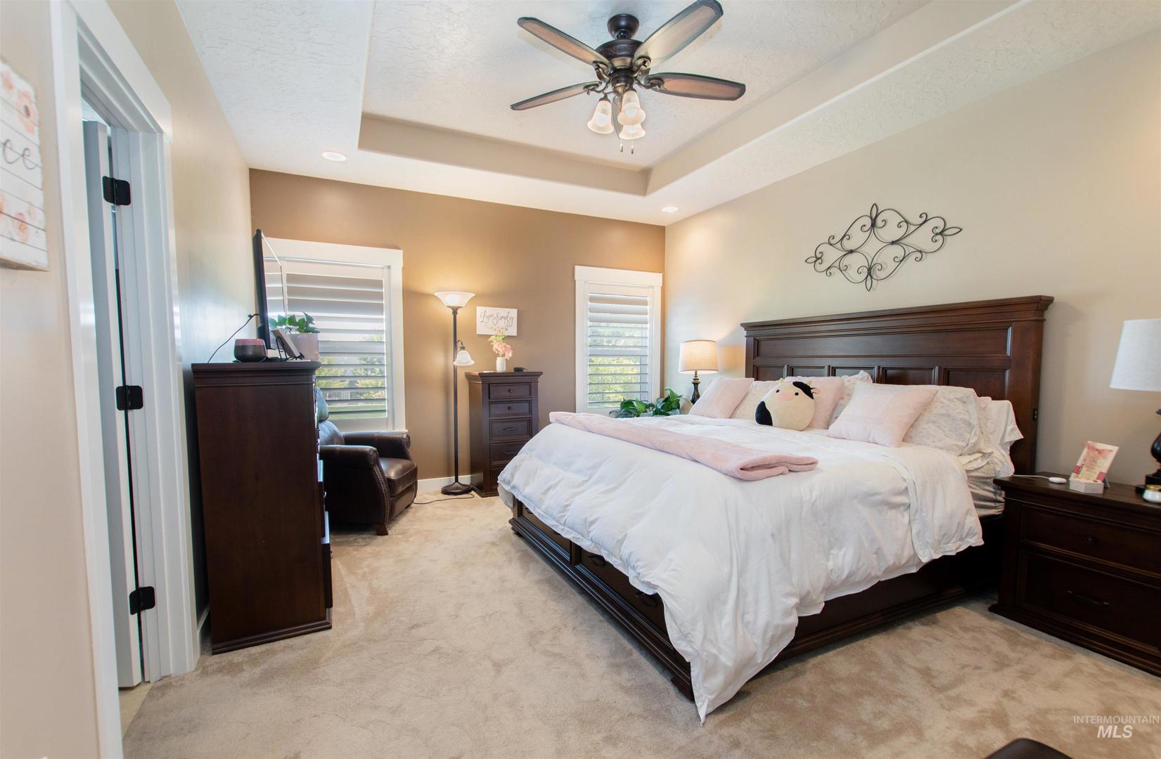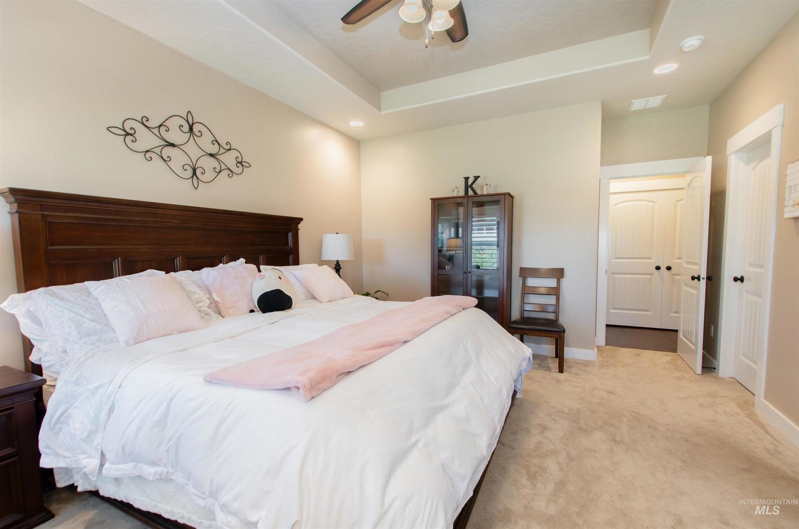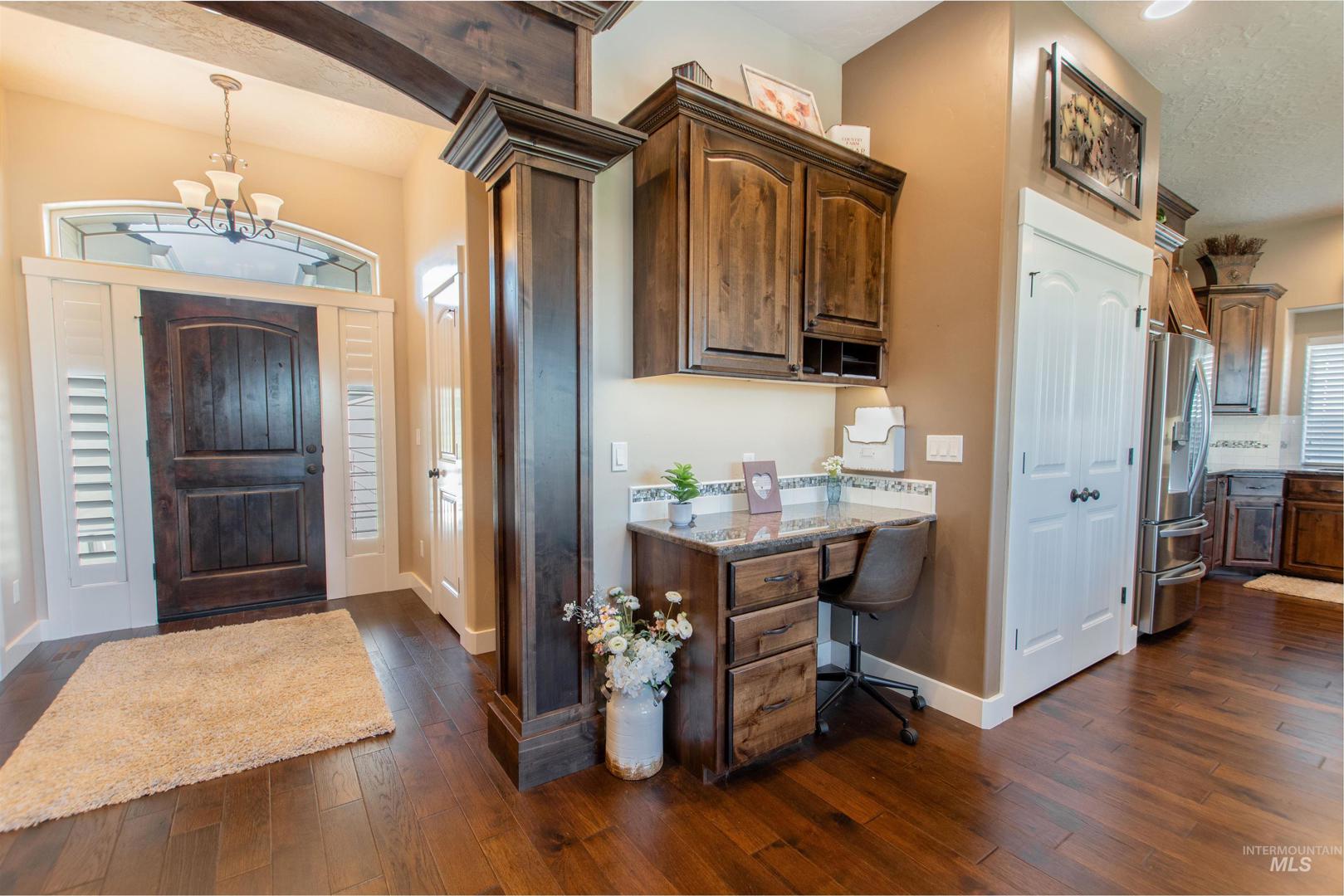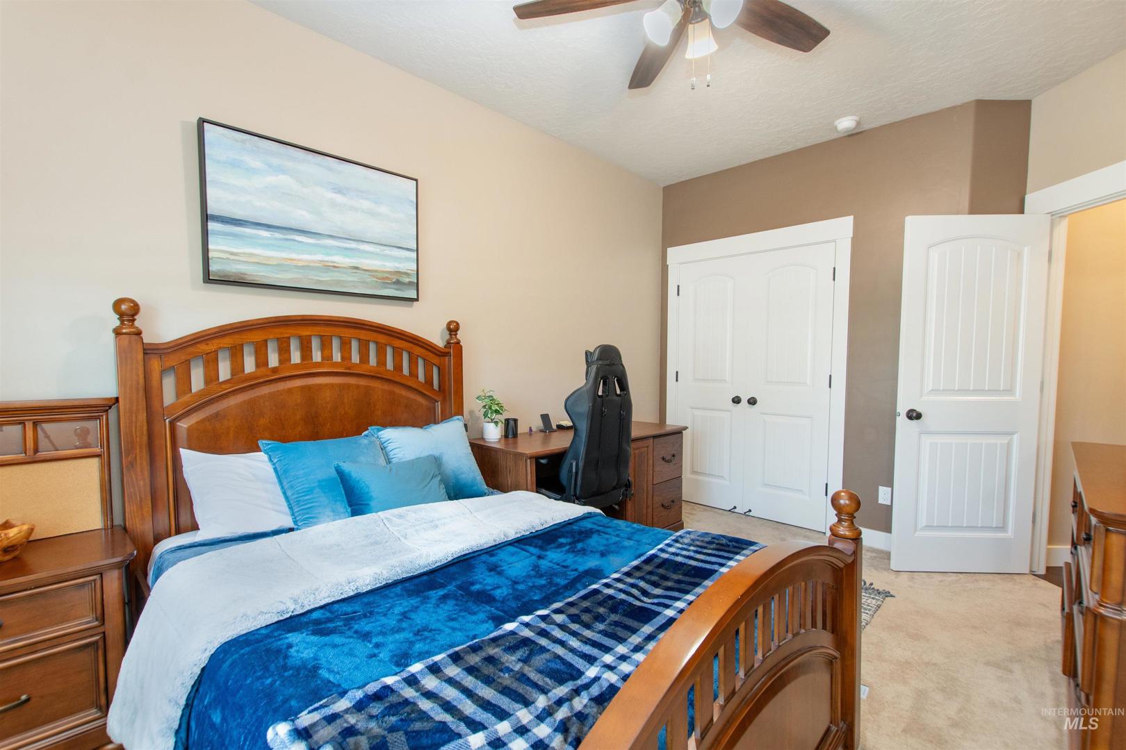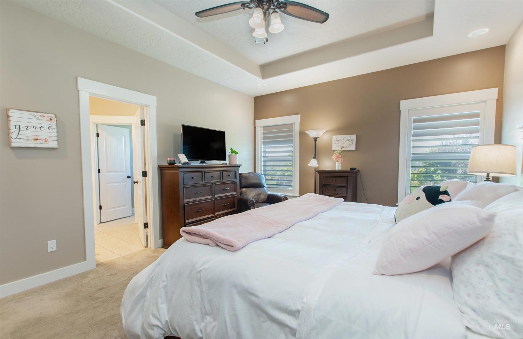 Gorgeous home in the highly sought after Sienna Hills Subdivision! 2nd bedroom is HUGE and can accommodate a King Bed, Couch, TV area, Desk-office area, and a Dresser. It could be used as a Second Master, a Multigenerational area, or a Bonus Room. Home features engineered hardwood floors, granite counters throughout, a coffer with beautiful beam like structures in the great room, plantation shutters, a gas fireplace, beautiful cabinetry, tons of natural light, and a stunning wooden arch structure in the entry. The laundry room includes a sink, cabinetry, and a mudroom organizer to store unwashed laundry. The artistically designed backyard feels like your own private park with no back neighbors. It has a HUGE patio area, partially covered -which can easily accommodate 14+ people for outside eating/entertainment. Views of the Boise Mountains. Community Pool, Clubhouse, Tennis, Pickleball, and Basketball. Close to Lake Lowell Recreational Area & the Wine Country.