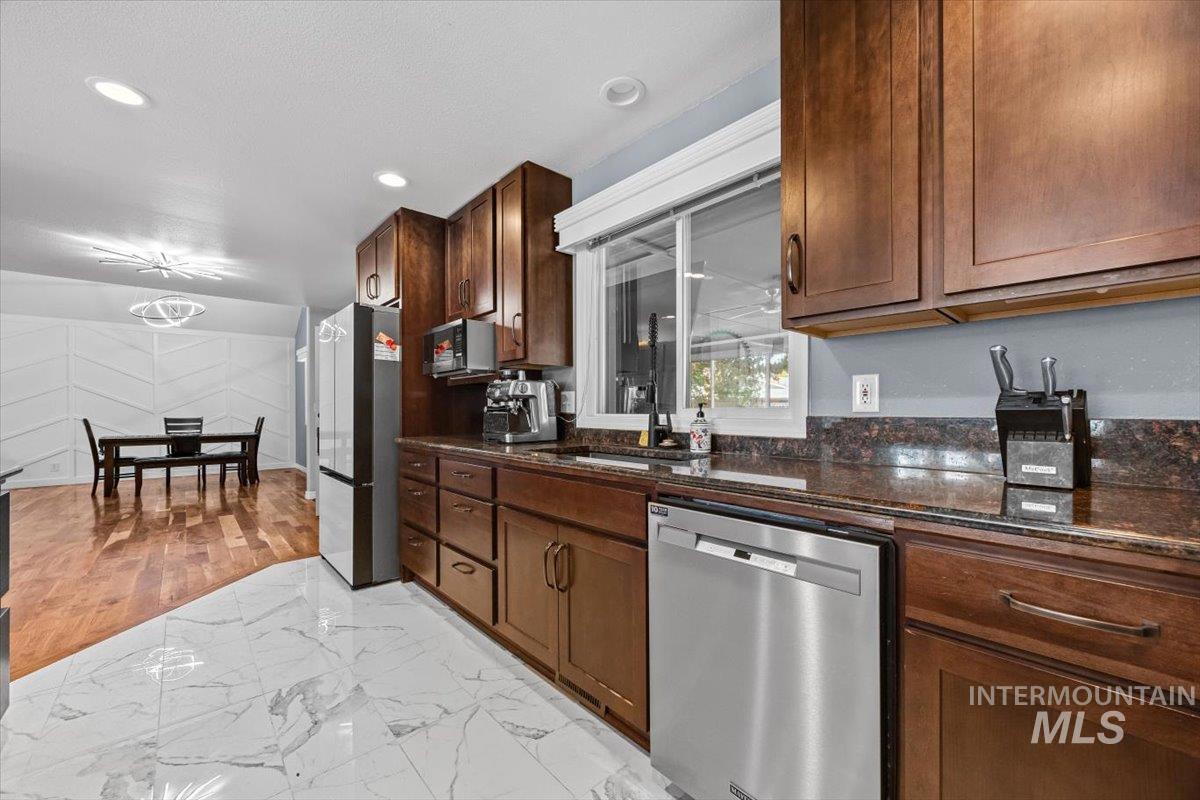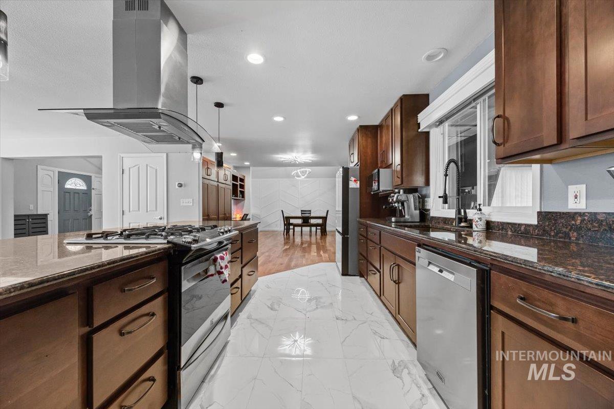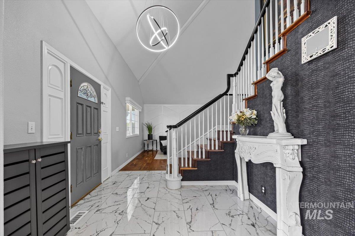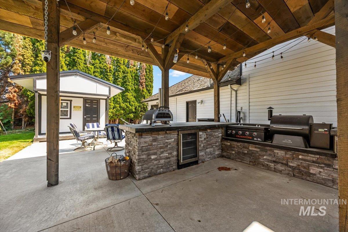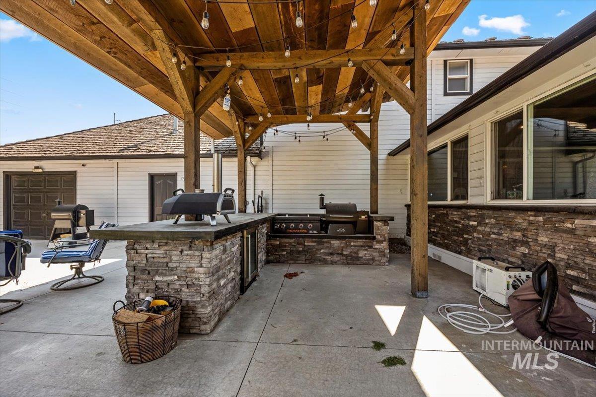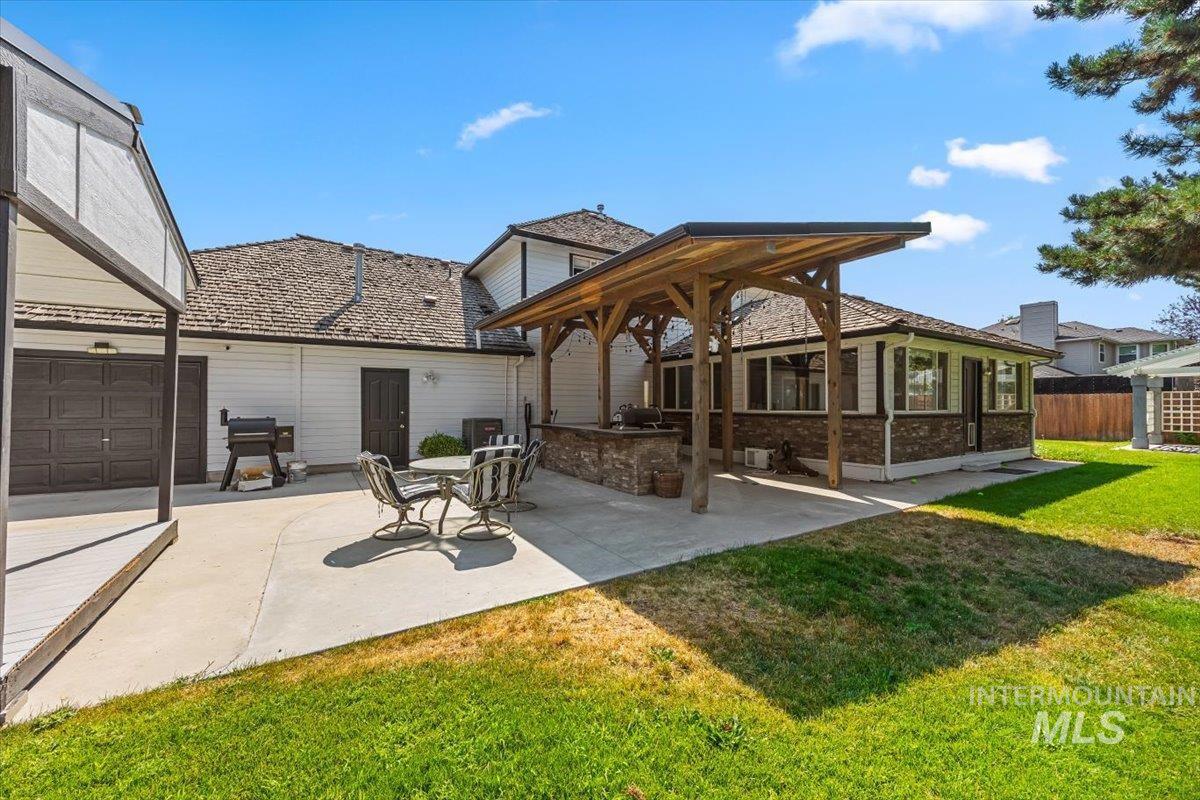 ***PRICE REDUCTION *** Remodeled gem in desirable Meridian Greens close to entertainment, dining parks, shopping & freeway. Backyard Oasis is perfect for entertaining family & friends w/mature shade trees, casita, large patio & gardening spaces. Enjoy game day in the newly built beautiful covered outdoor kitchen including grill, traeger bbq pizza oven, refrigerator & cool lighting. Attractive front exterior stone veneer invites you into the bright elegant marble floor entry highlighting modern fixtures throughout. Open Kitchen features marble floor, granite counters, island breakfast bar, gas range, and ample cabinets. Main floor includes family room, separate formal/music room, bedroom w/direct bathroom access, laundry room and mud room. Relax year round in the homes special feature, the Media/game room w/wood flooring, custom blinds & direct access to the back yard. Primary suite includes W/I closet, clawfoot tub &remodeled walk in shower. 2 additional bedrooms, remodeled bathrooms & additional laundry room are on 2nd floor