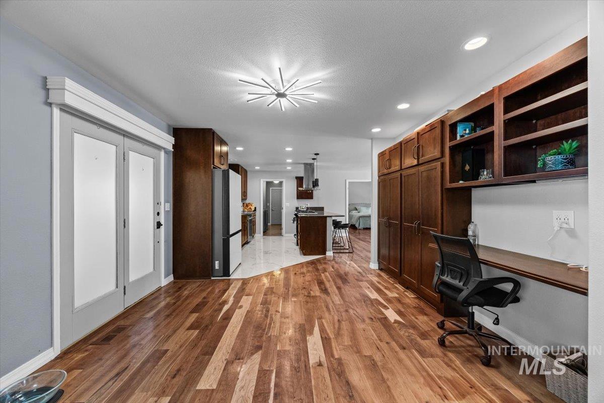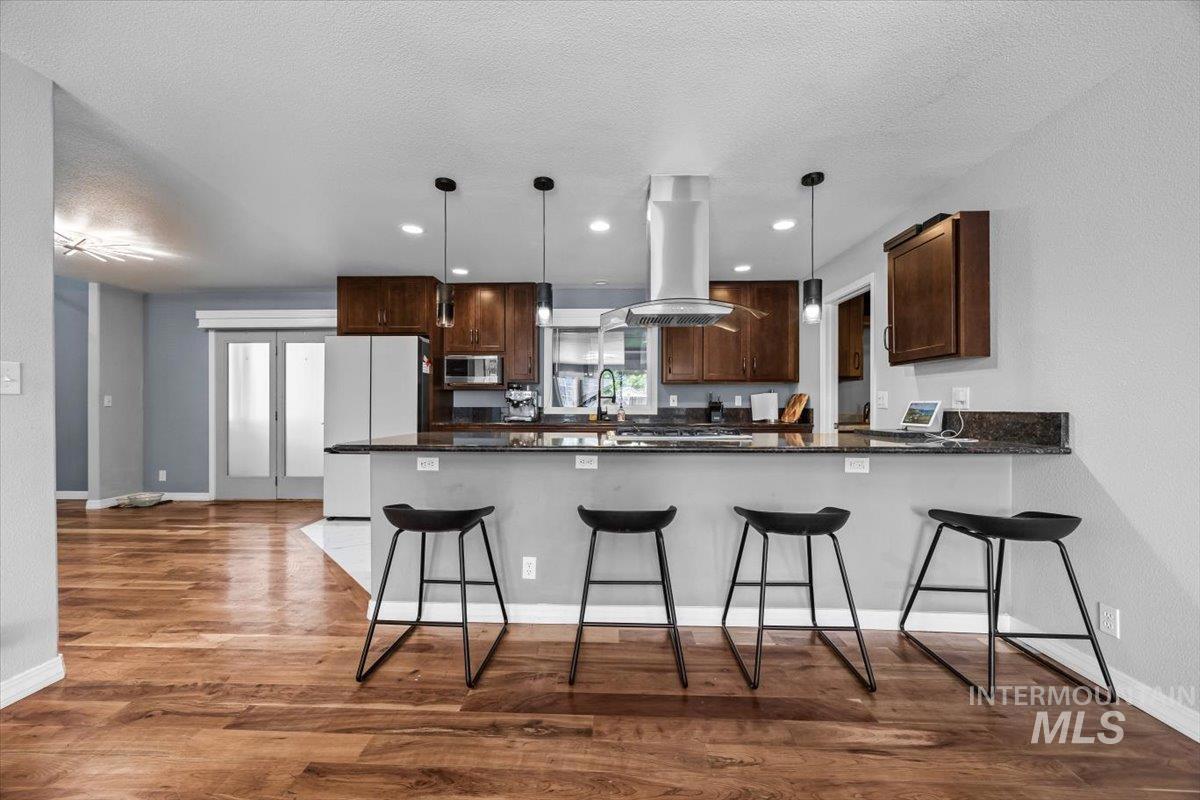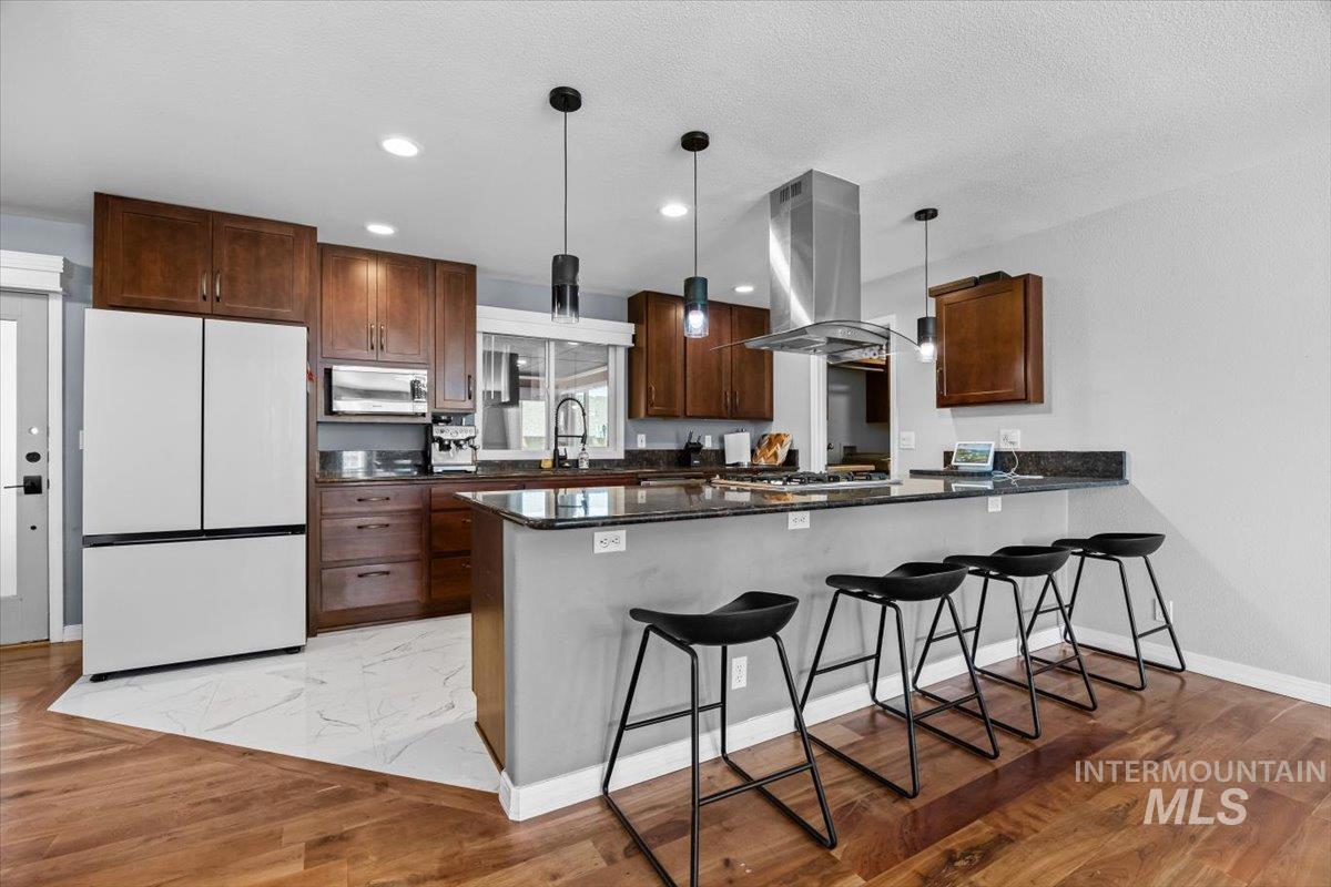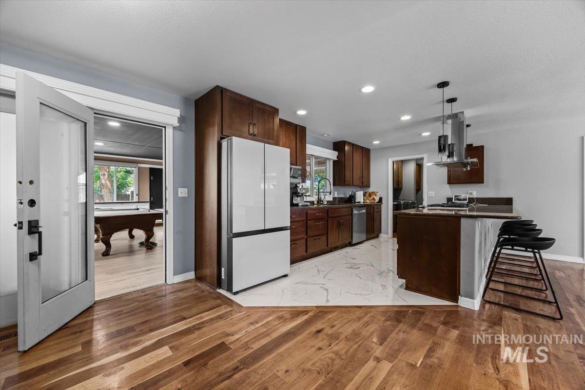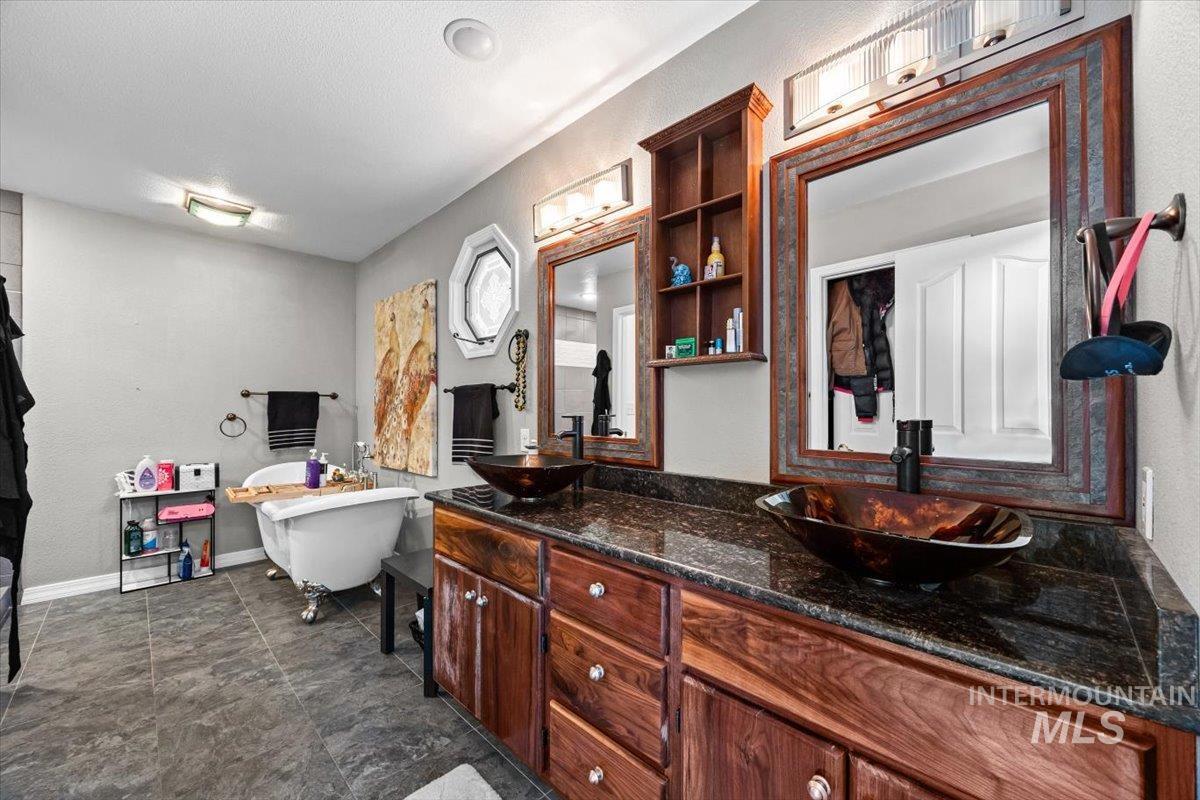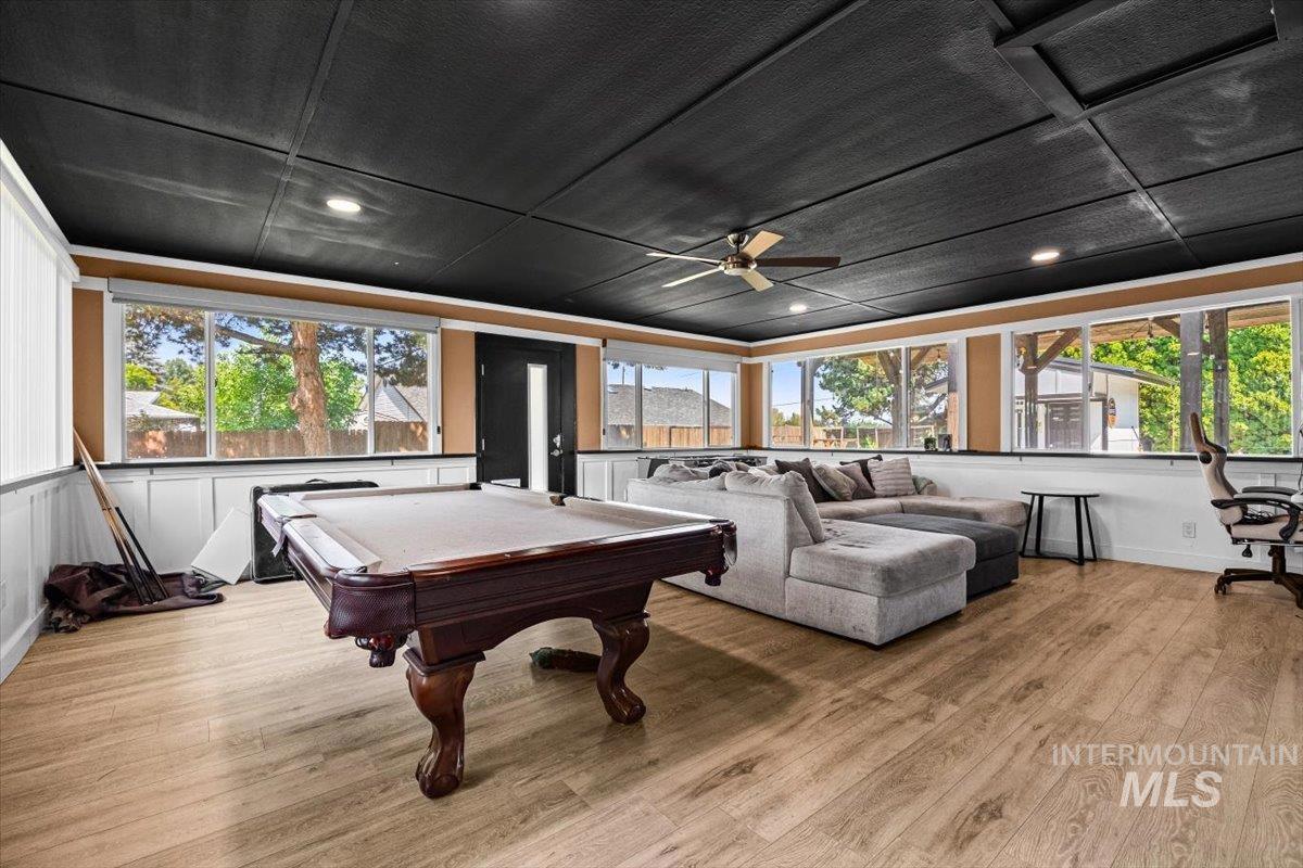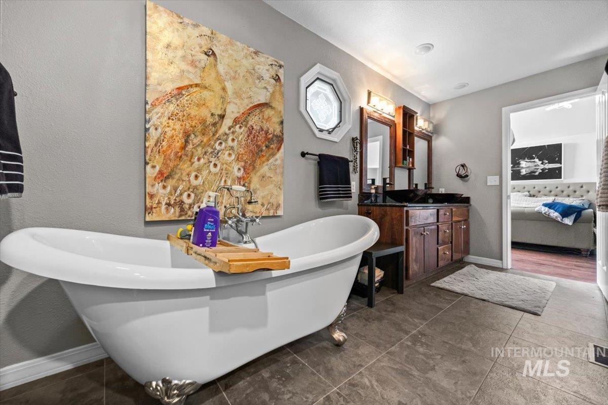 ***PRICE REDUCTION *** Remodeled gem in desirable Meridian Greens close to entertainment, dining parks, shopping & freeway. Backyard Oasis is perfect for entertaining family & friends w/mature shade trees, casita, large patio & gardening spaces. Enjoy game day in the newly built beautiful covered outdoor kitchen including grill, traeger bbq pizza oven, refrigerator & cool lighting. Attractive front exterior stone veneer invites you into the bright elegant marble floor entry highlighting modern fixtures throughout. Open Kitchen features marble floor, granite counters, island breakfast bar, gas range, and ample cabinets. Main floor includes family room, separate formal/music room, bedroom w/direct bathroom access, laundry room and mud room. Relax year round in the homes special feature, the Media/game room w/wood flooring, custom blinds & direct access to the back yard. Primary suite includes W/I closet, clawfoot tub &remodeled walk in shower. 2 additional bedrooms, remodeled bathrooms & additional laundry room are on 2nd floor