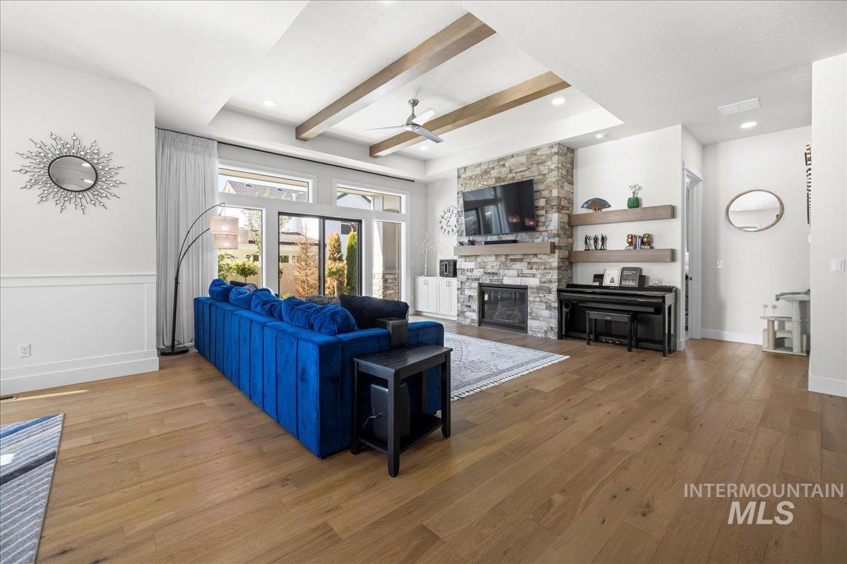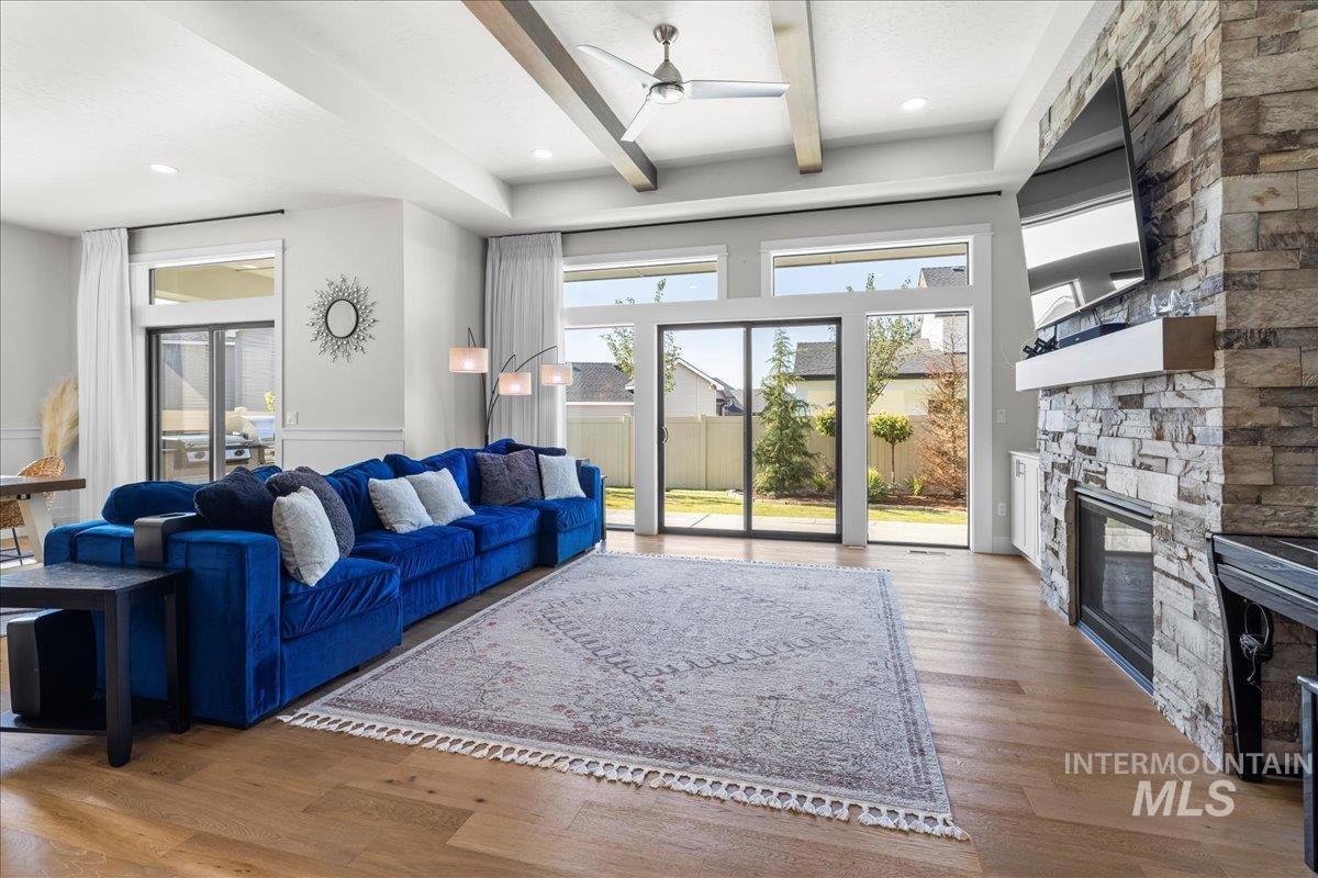 Luxury awaits in this beautiful home near River Birch Golf Course & vibrant downtown Star. Features 3 spacious bedrooms, 2 modern baths, & an upstairs bonus room with a full bath. Enjoy an open-concept layout with high ceilings, hardwood floors, & a gourmet kitchen with quartz counters, stainless appliances, & a butler-style pantry. The 3-car garage provides ample storage. The primary bedroom offers private access to the backyard via a large two-panel sliding glass doors. The newly renovated backyard offers a BBQ kitchen, hot tub, & elegant landscaping.