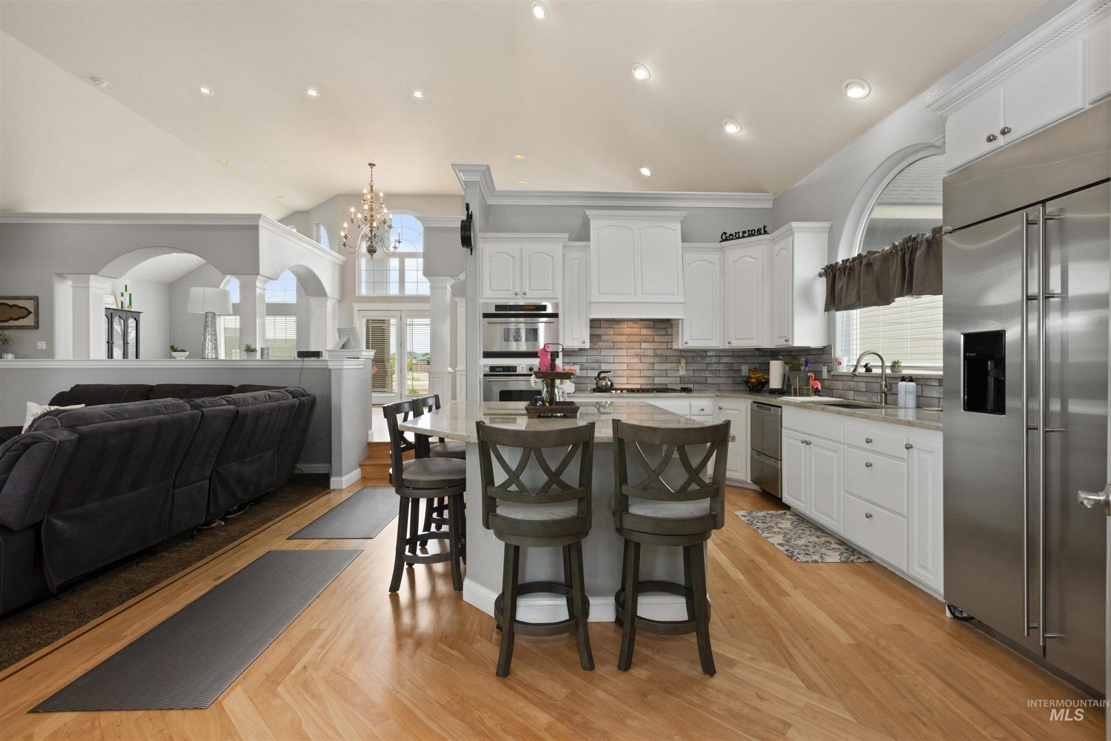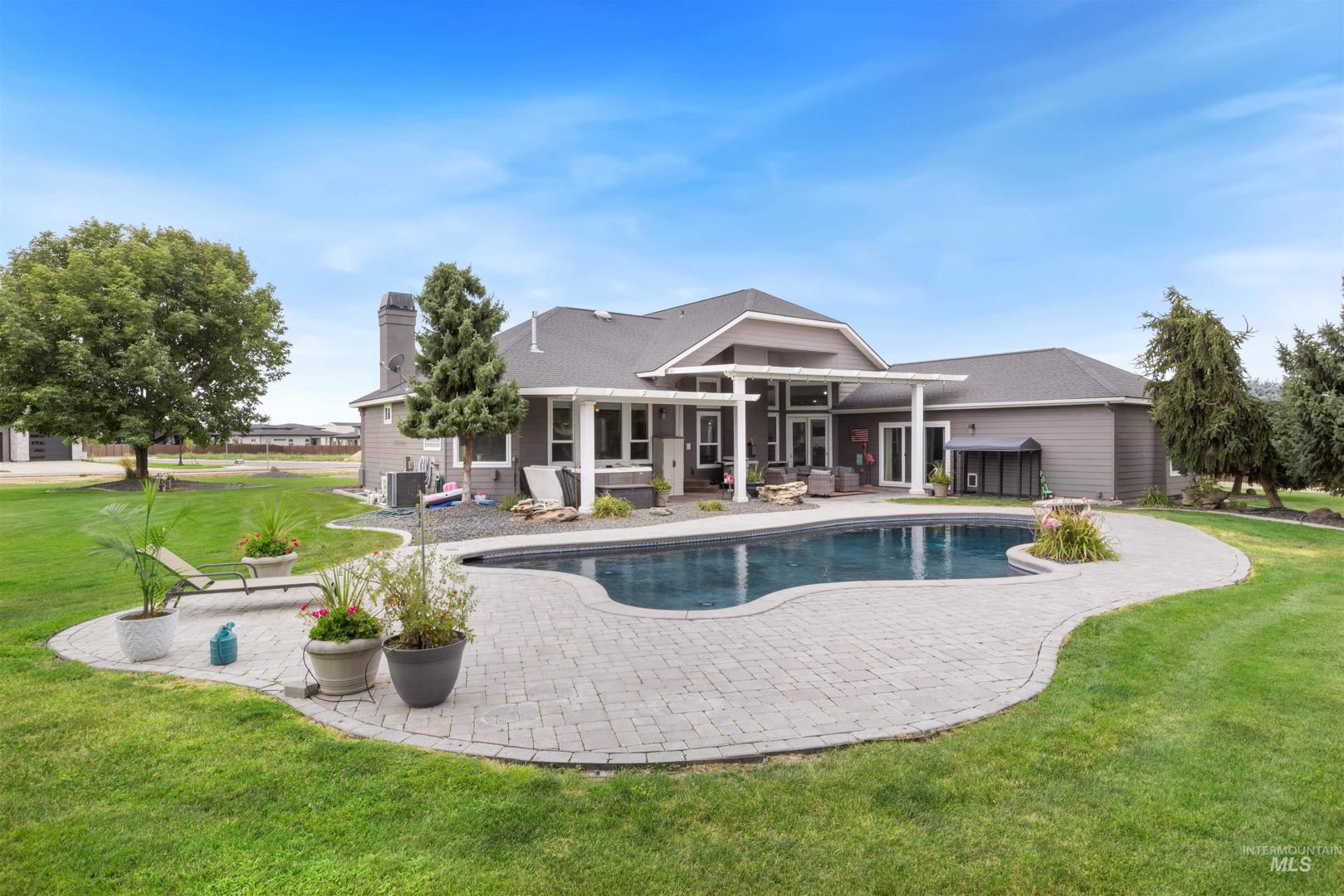 Discover timeless craftsmanship in this custom-built Jensen Fine Homes estate, showcased in the 2003 Parade of Homes. Nestled on 2.225 acres, this 5,576 sq. ft. residence offers 4 bedrooms, 4.5 bathrooms, and an exceptional lifestyle without the restrictions of an HOA. The home features a formal dining room, office/den, spacious bonus room currently set up as a gym, and a lower-level recreation area complete with a bar, pool table, and home theater system—perfect for entertaining. Outdoors, enjoy your private retreat with a sparkling pool, expansive patio, and lush landscaping designed for relaxation and gatherings. A large shop with its own bathroom adds incredible versatility for hobbies, storage, or business use. Blending elegance and functionality, this home offers both luxurious everyday living and an entertainer’s dream, all in a private setting. New address is 3418 N Costa Madera Way.