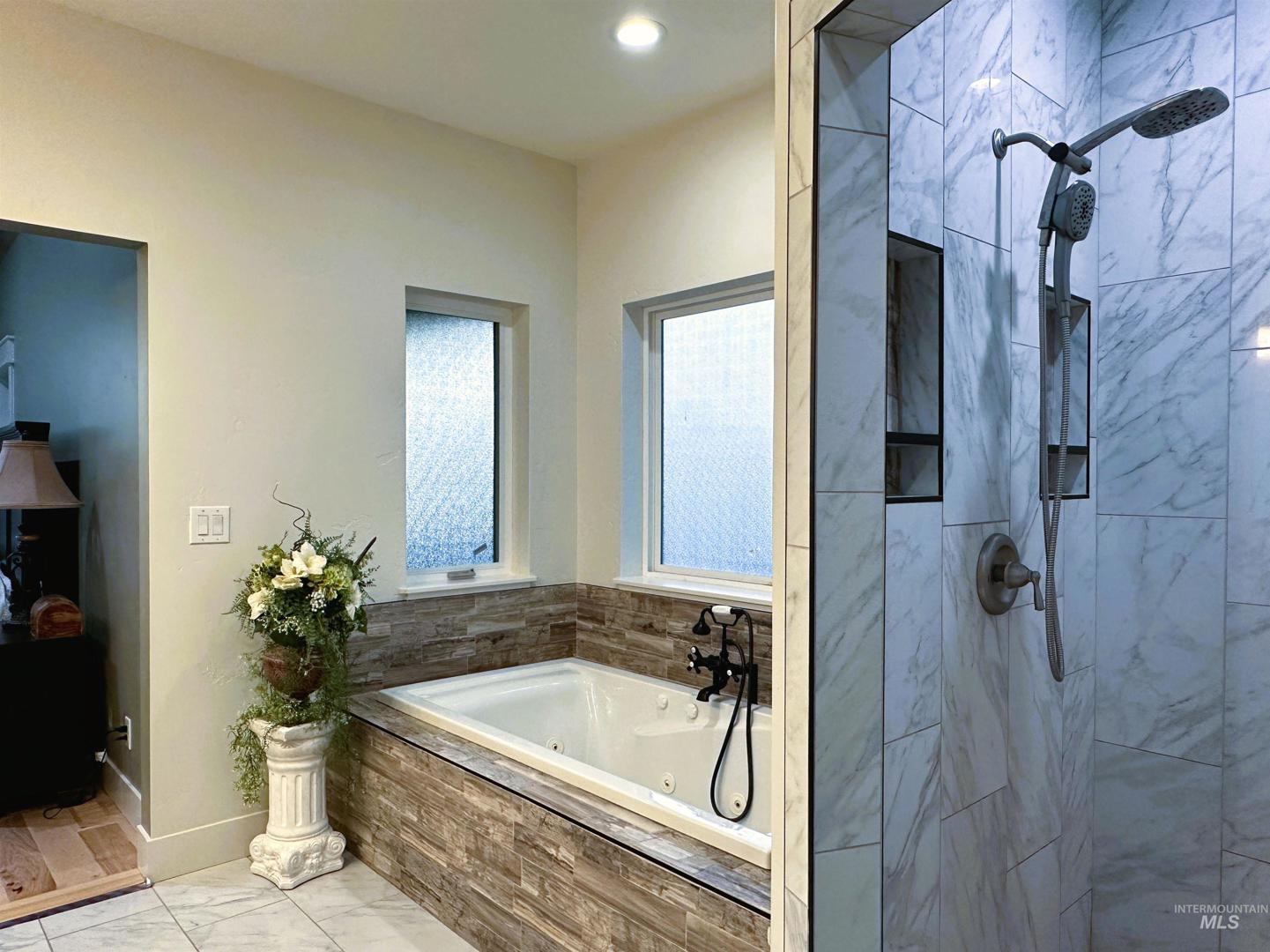 This 4-bedroom, 5.5-bath home offers 5,661 sq. ft. of living space, including a 1,685 sq. ft. partially finished basement. Hardwood floors and open living areas set the tone, while the secluded master suite features a spa-like bathroom with a soaking jetted tub. Upstairs, a large bonus room and private office provide extra flexibility. The tall, wide 3-car garage easily accommodates oversized vehicles, and a small shed is perfect for gardening or homestead essentials. Set on 1.08 acres just beyond city limits, this property combines the peace of country living with the convenience of being minutes from town, a rare blend of modern comfort and homestead charm.