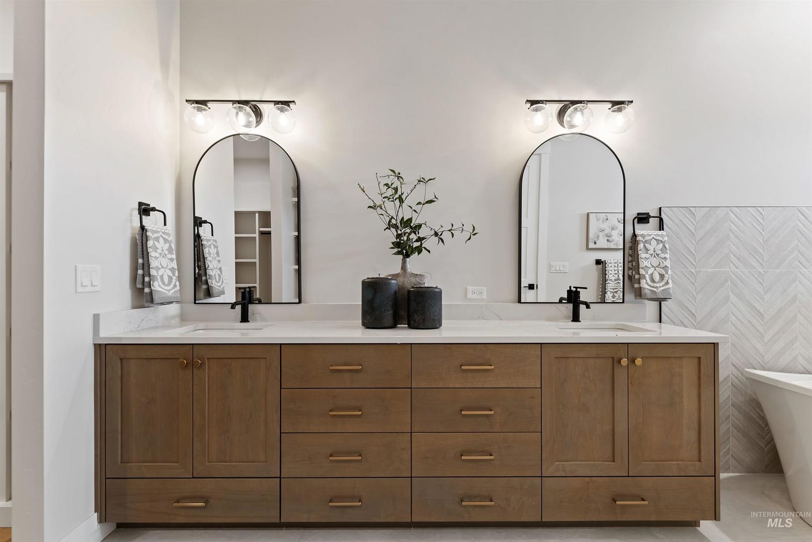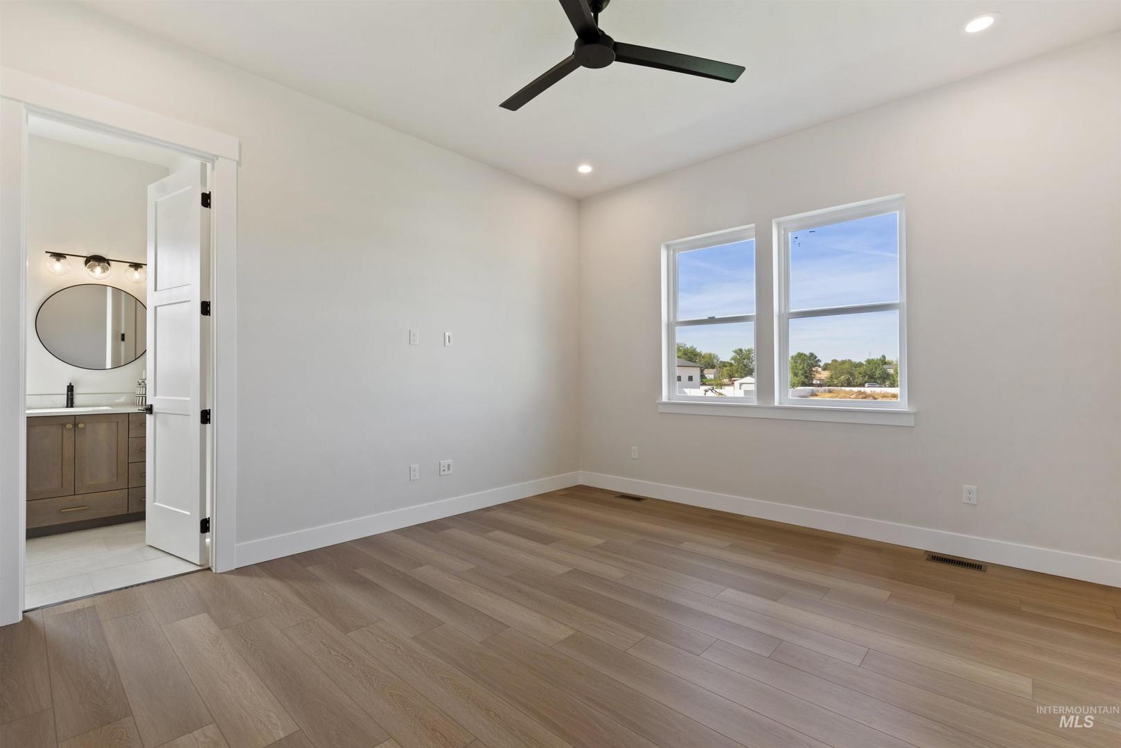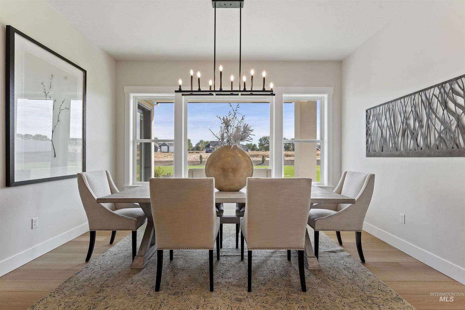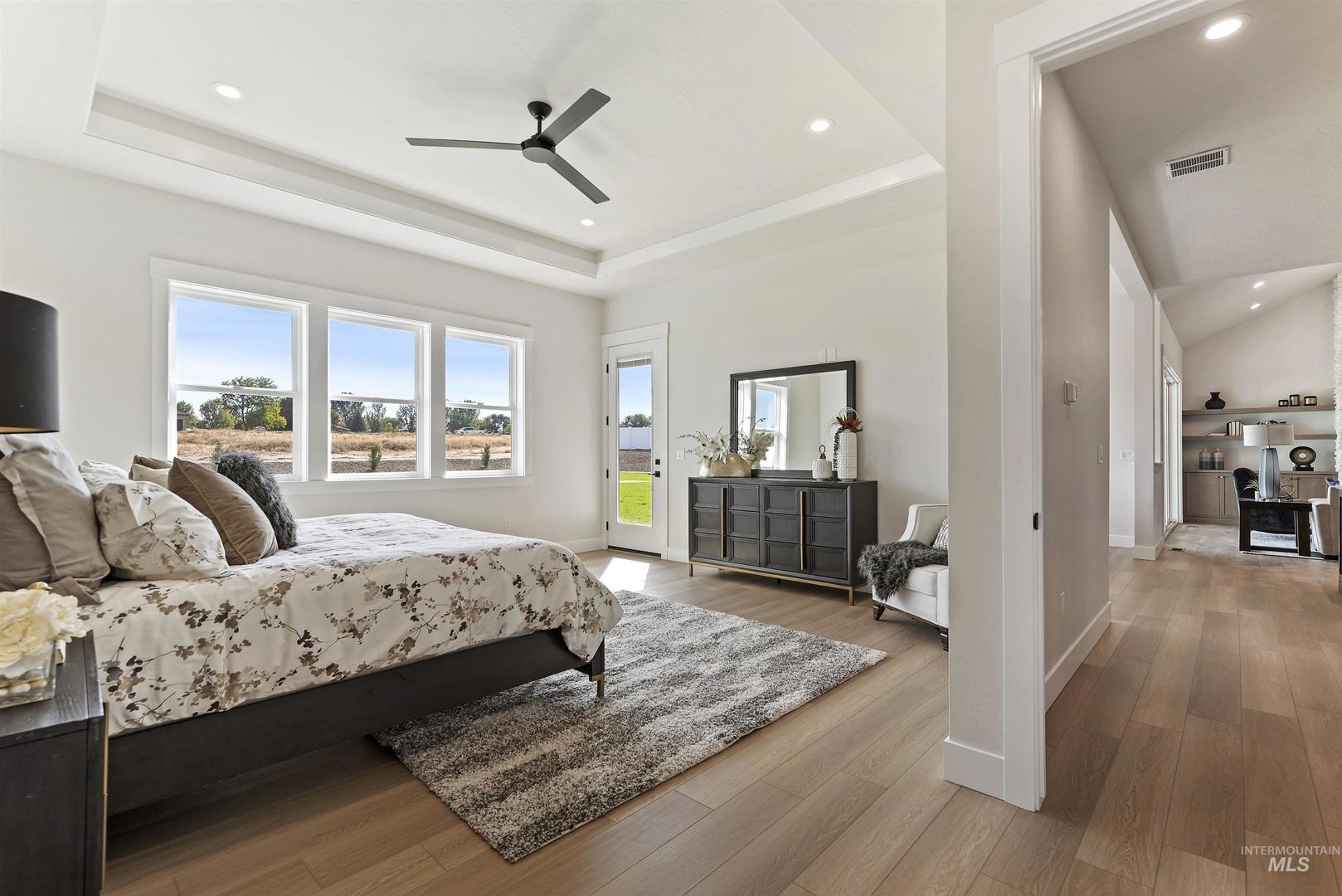 Come Enjoy the Idaho Experience Living in the sought-after Spring Hill Ranch Community! This stunning new construction home sits on a full acre with incredible views, blending luxury with everyday functionality. Featuring 4 bedrooms, 3.5 baths, and an 8-car insulated, painted garage with a 54’ RV bay, there’s plenty of room for all your vehicles and storage. Inside, you’ll find quartz countertops, matte black fixtures, and LVT flooring, all highlighted by soaring 10’+ ceilings. The gourmet kitchen boasts stainless steel appliances, a gas range, double ovens, and a butler’s pantry. The open-concept great room showcases a vaulted ceiling and stone fireplace, with direct access to a covered patio for indoor-outdoor living. Great for entertaining! The primary suite offers coffered ceilings, a walk-in tiled shower, soaking tub, dual vanities and dual walk-in closets. Located minutes to Exit 25, Purple Sage Golf Course, and down downtown Middleton!