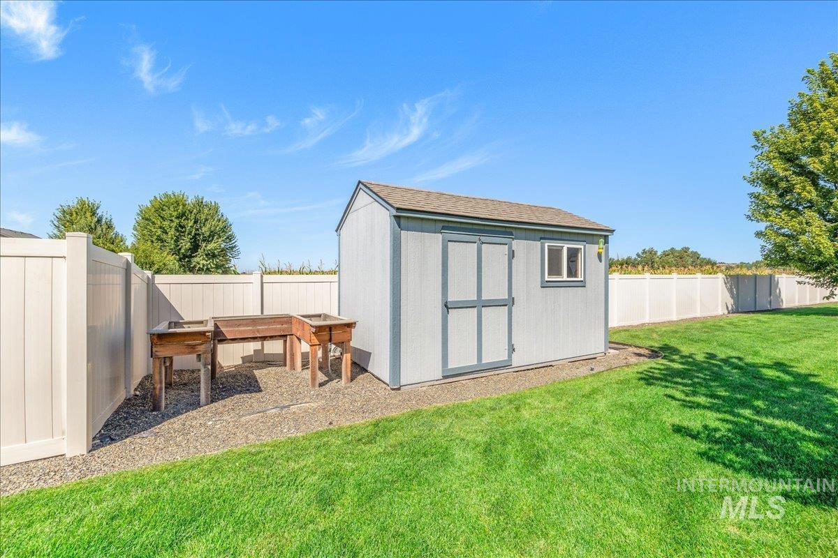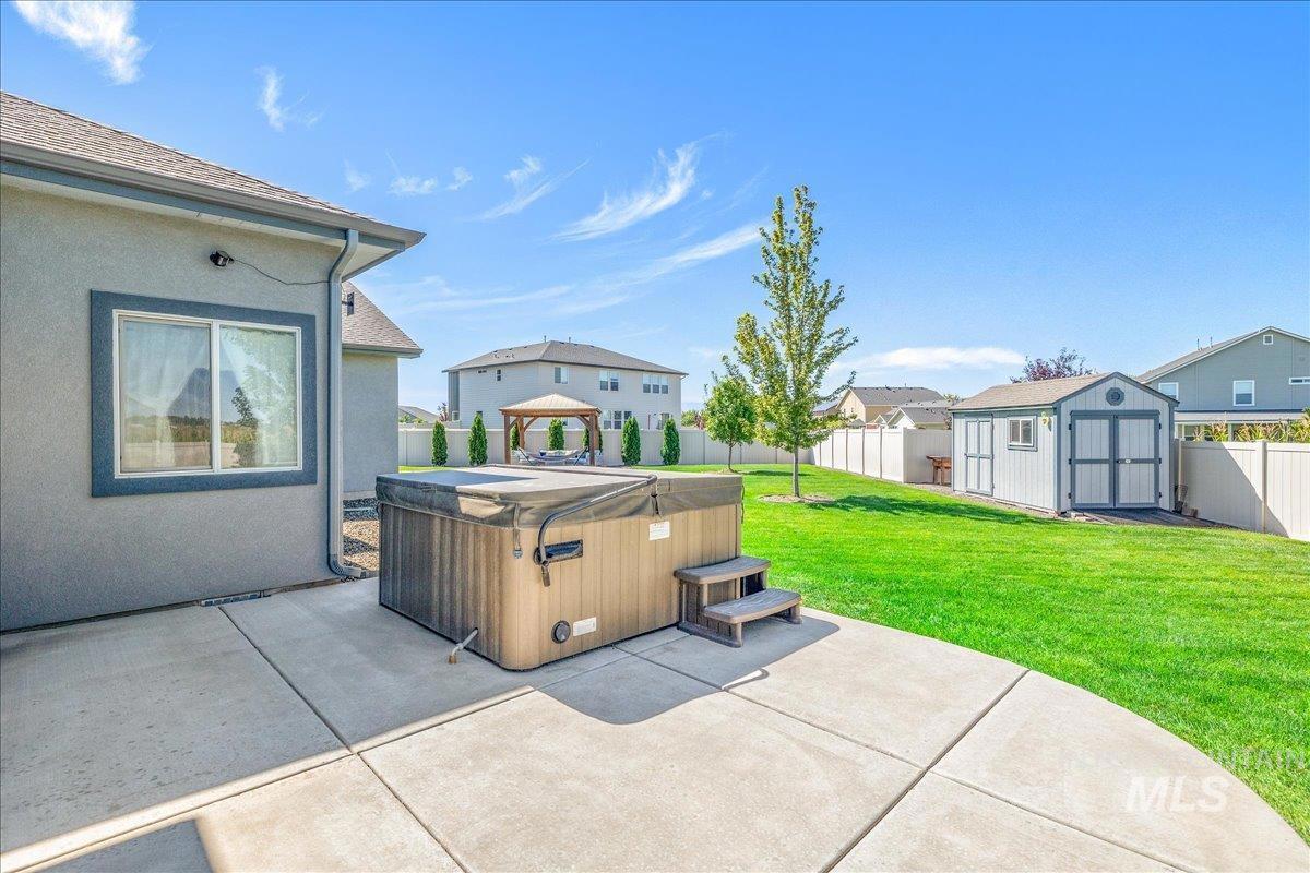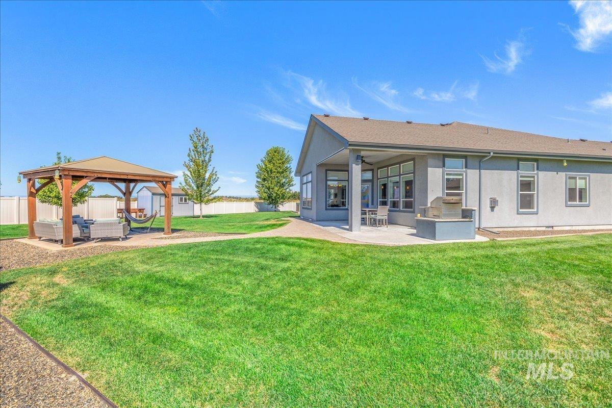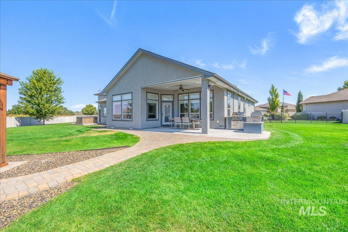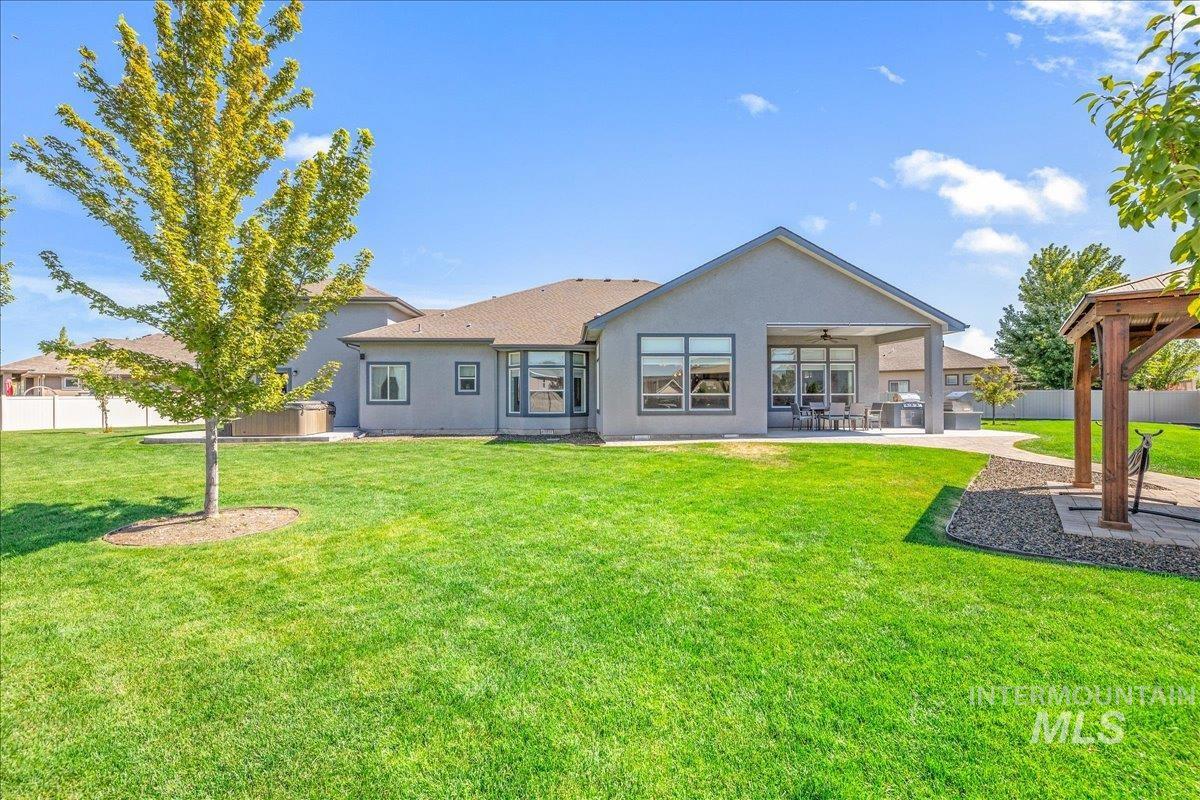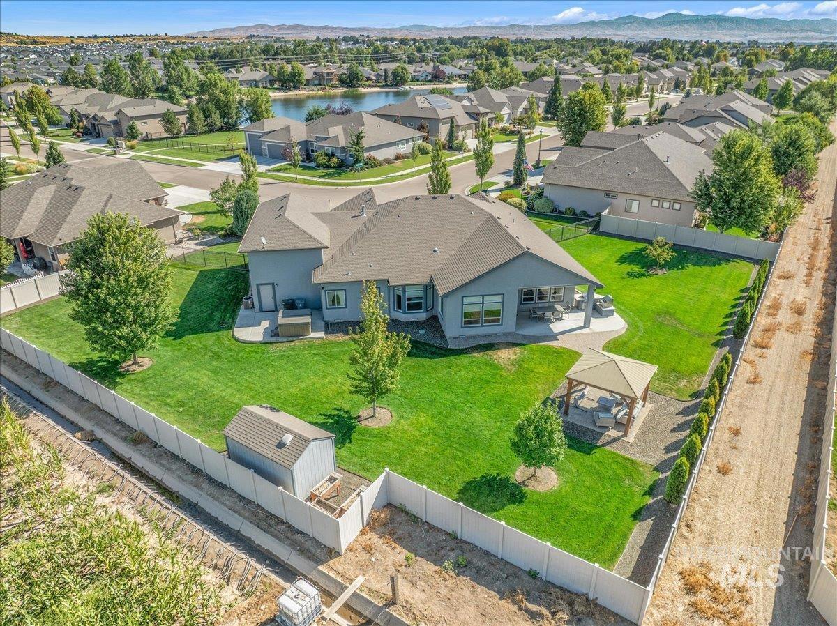 This home truly has it all--style, function and space. Meticulously maintained single level home on a rare .51 acre lot in The Lakes at Pristine Meadows. Perfect blend of comfort and luxury with 3 spacious bedrooms, 2.5 bathrooms, dedicated office, and an expansive 40 ft RV garage. Featuring soaring vaulted ceilings, beautiful chef`s kitchen with high end appliances, granite counter tops, large island and huge butler`s pantry. Outside is a massive fully fenced yard with a big covered patio, an entertainer`s dream w/ built-in gas grill, relaxing hot tub, shed for your lawnmower, and garden boxes for growing fresh vegetables; plus room leftover for whatever you envision. Step into the garage to find plenty of space for all your toys, custom built-in cabinets, EV charger, RV plug, and a built-in shower, perfect for washing off after a day of adventure-- for you or your 4 legged friends. Community features a private 5 acre lake, ideal for fishing, kayaking or simply enjoying the serene surroundings.