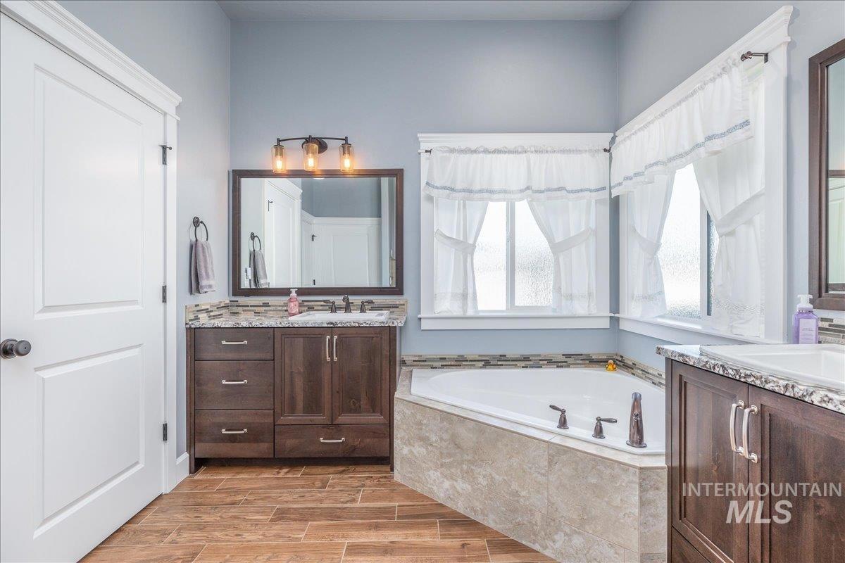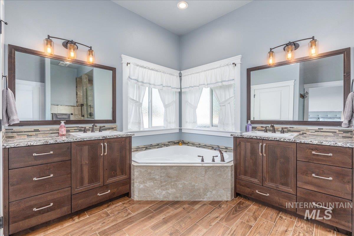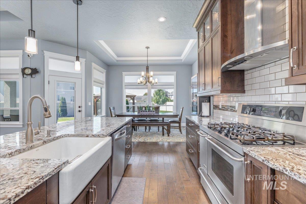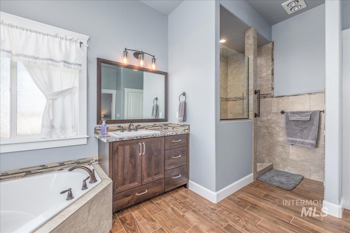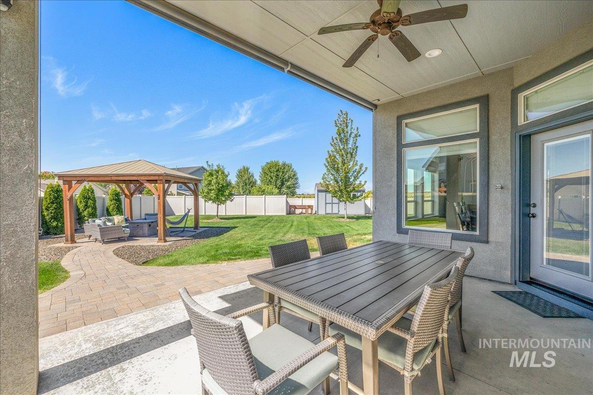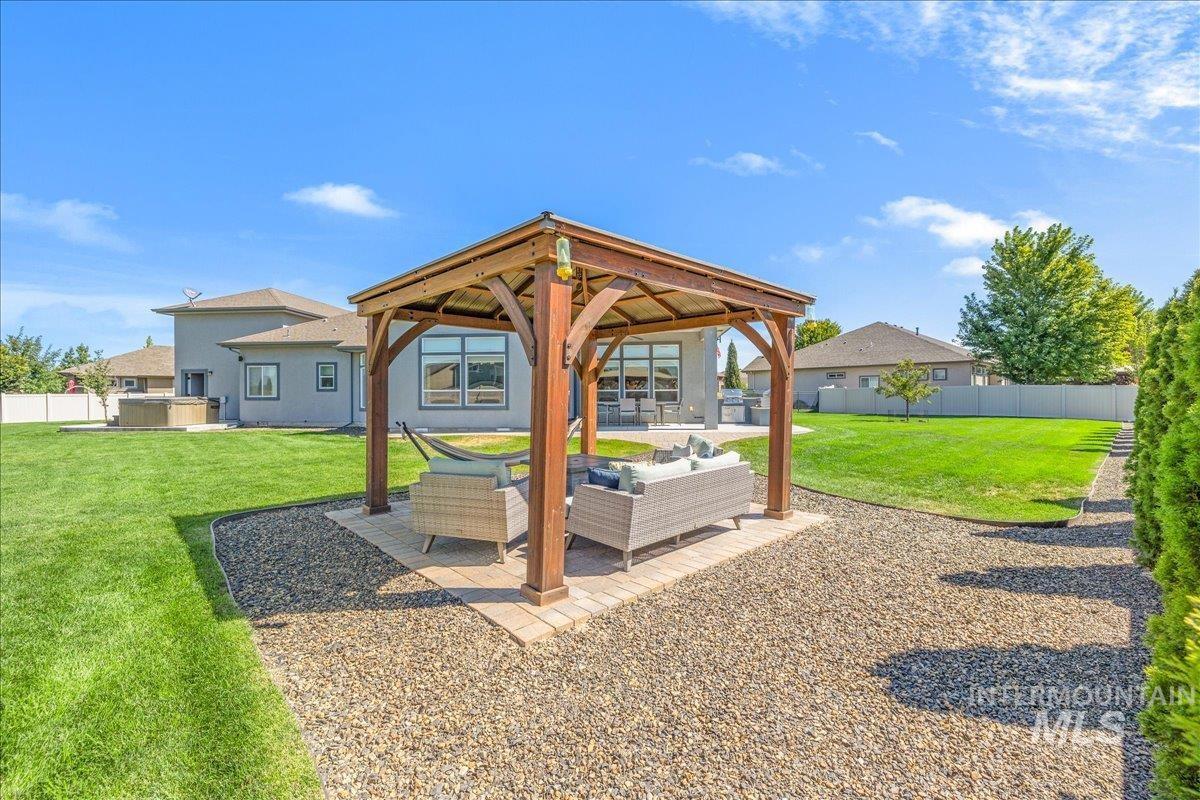 This home truly has it all--style, function and space. Meticulously maintained single level home on a rare .51 acre lot in The Lakes at Pristine Meadows. Perfect blend of comfort and luxury with 3 spacious bedrooms, 2.5 bathrooms, dedicated office, and an expansive 40 ft RV garage. Featuring soaring vaulted ceilings, beautiful chef`s kitchen with high end appliances, granite counter tops, large island and huge butler`s pantry. Outside is a massive fully fenced yard with a big covered patio, an entertainer`s dream w/ built-in gas grill, relaxing hot tub, shed for your lawnmower, and garden boxes for growing fresh vegetables; plus room leftover for whatever you envision. Step into the garage to find plenty of space for all your toys, custom built-in cabinets, EV charger, RV plug, and a built-in shower, perfect for washing off after a day of adventure-- for you or your 4 legged friends. Community features a private 5 acre lake, ideal for fishing, kayaking or simply enjoying the serene surroundings.