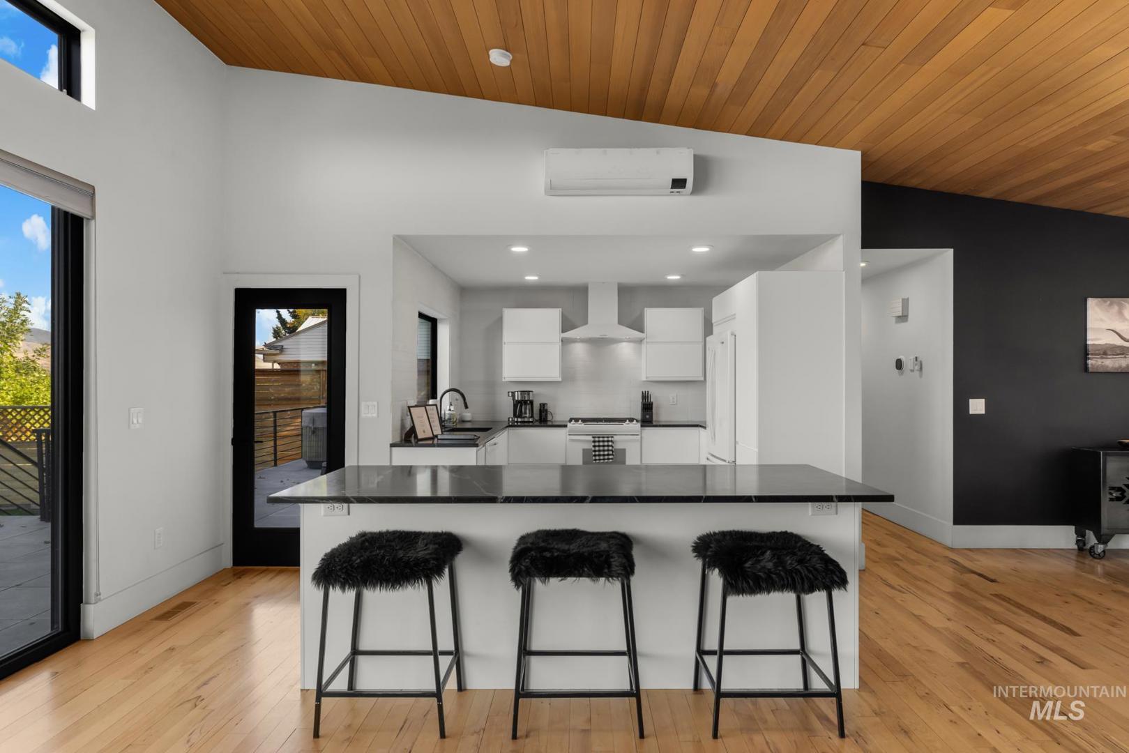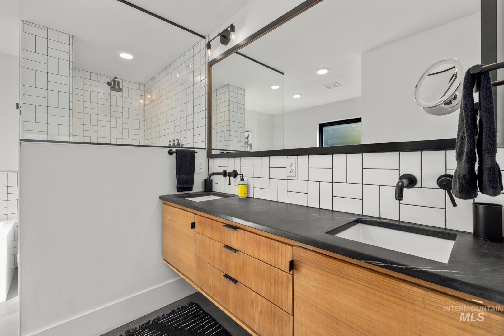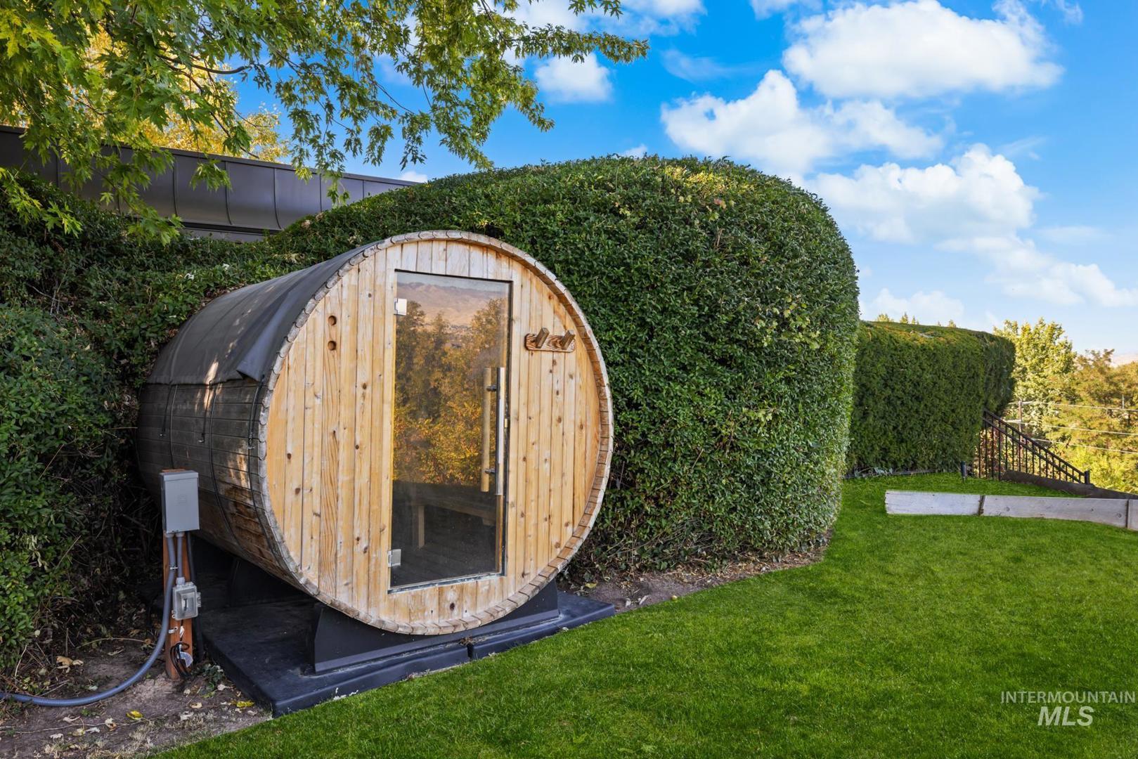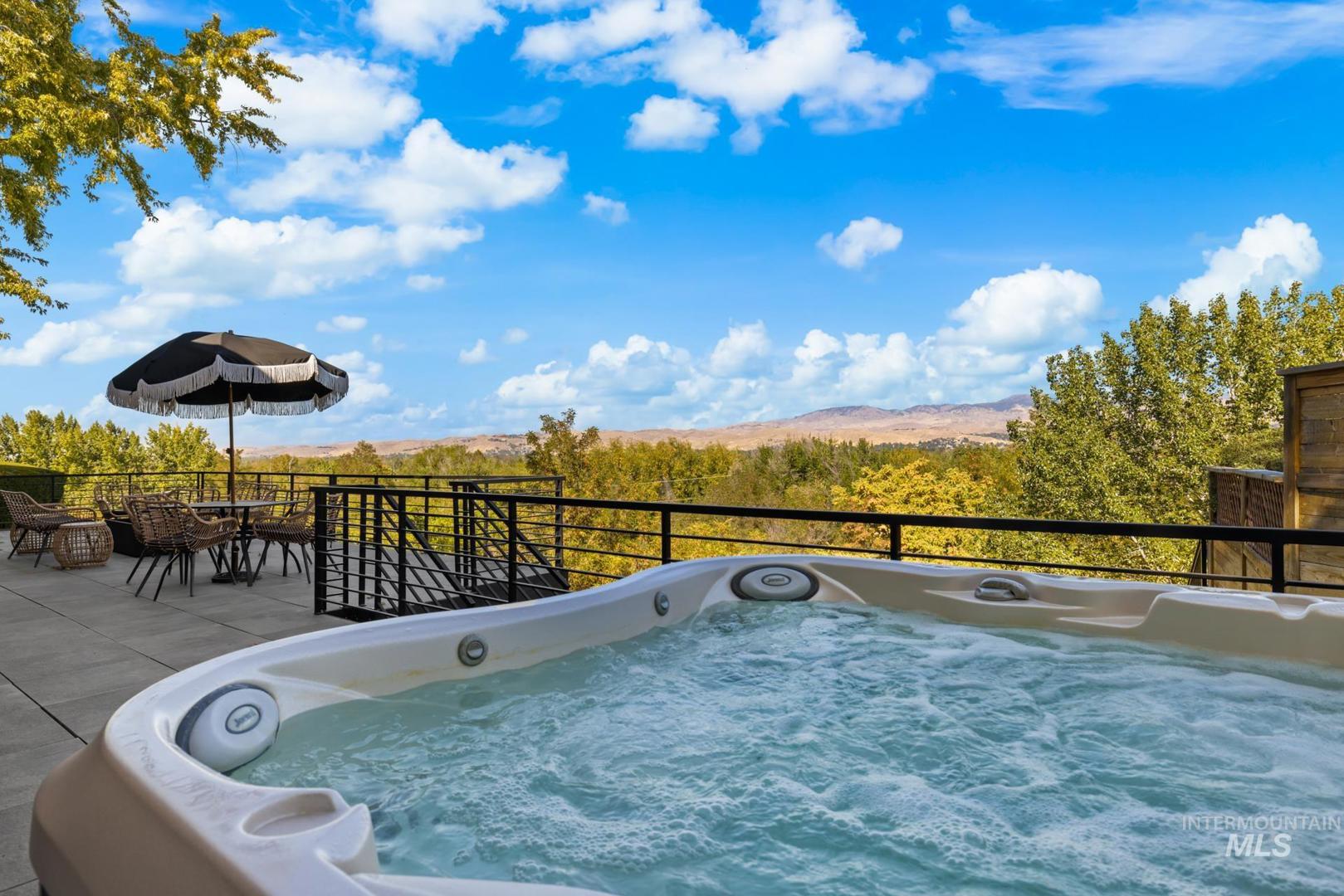 Perched on the rim of the Boise Bench in the coveted Central Rim, this mid-century modern commands iconic views of Kathryn Albertson Park, downtown Boise, Table Rock and the foothills. Fully remodeled in 2018 by HGTV’s Boise Boys, it blends modern sophistication with architectural pedigree. Clean lines, walls of windows and warm wood details create light-filled spaces that flow from the open living room with brick fireplace to a sleek kitchen with island, premium appliances and a storage wall. The main-level primary suite offers a walk-in closet, soaking tub, dual vanity and spa shower. A walkout lower level adds a second fireplace, three bedrooms, oversized laundry and bonus space. Updates include all major systems, expansive deck, hot tub, 8-person sauna and mature landscaping. With private neighborhood access to the Boise River and Greenbelt and just minutes from downtown, top restaurants and the airport, the location is as rare as the view itself.