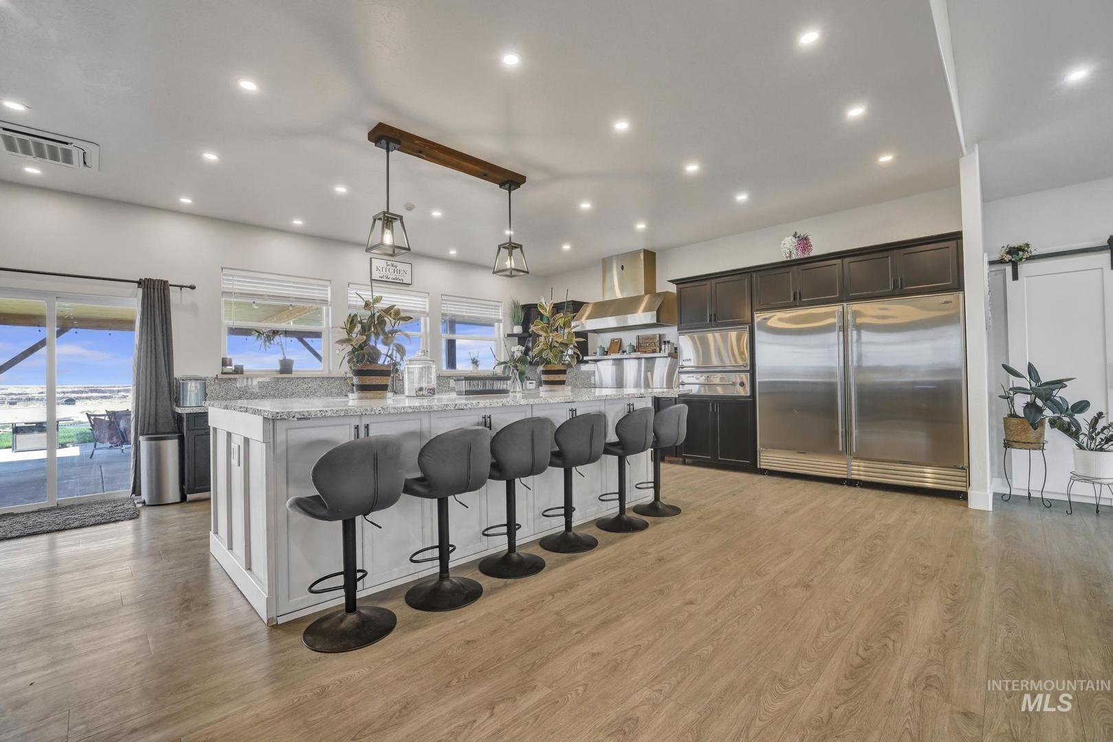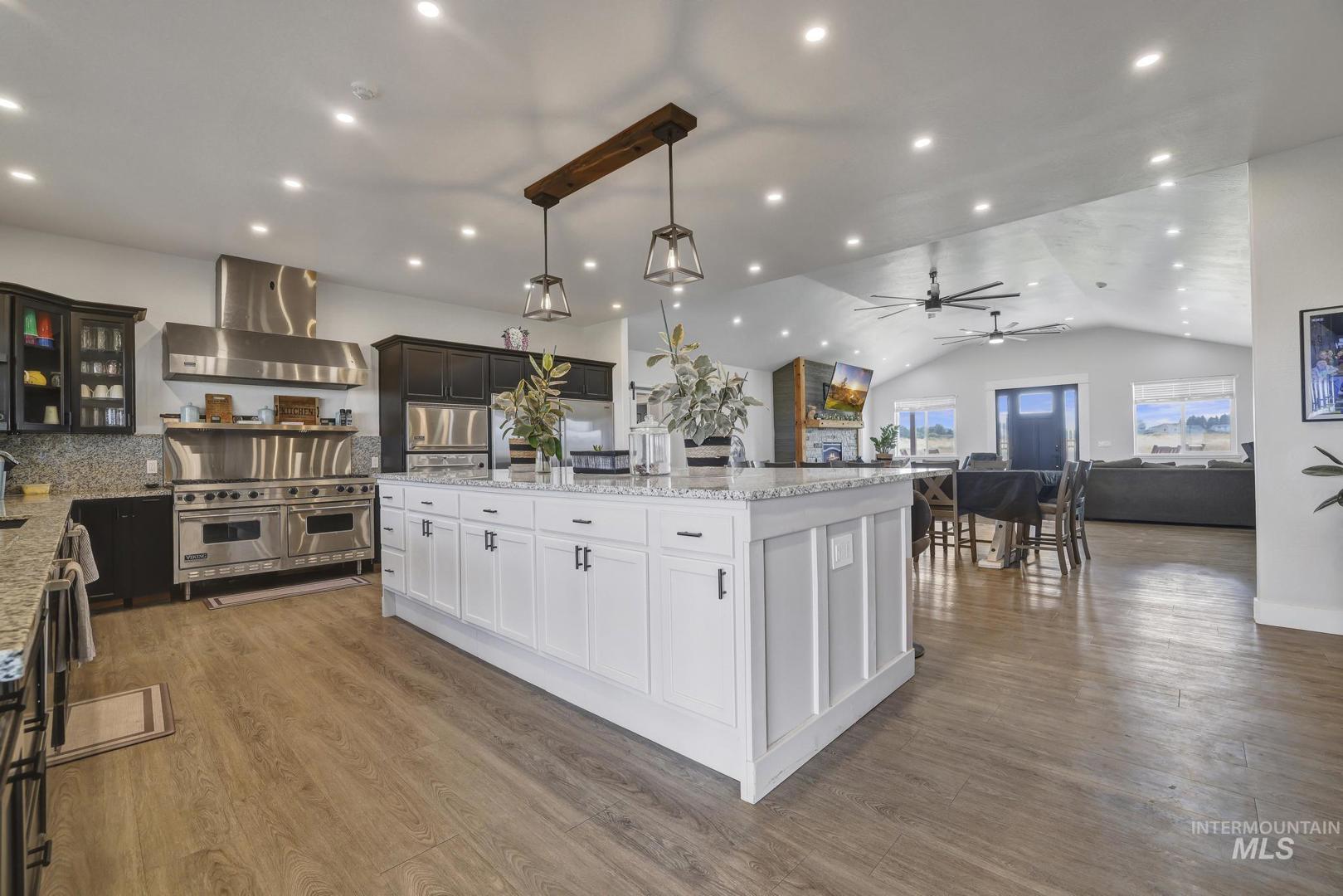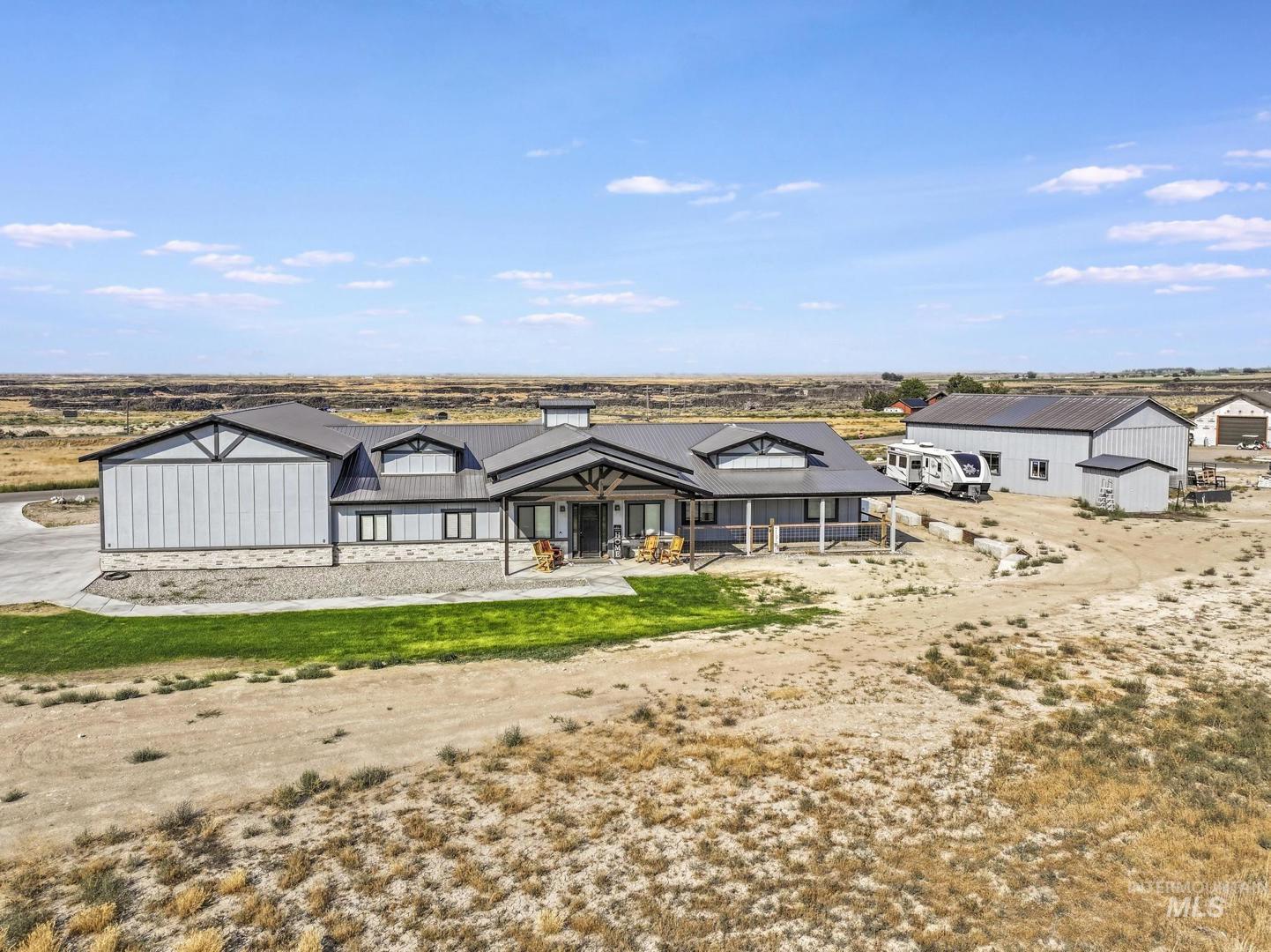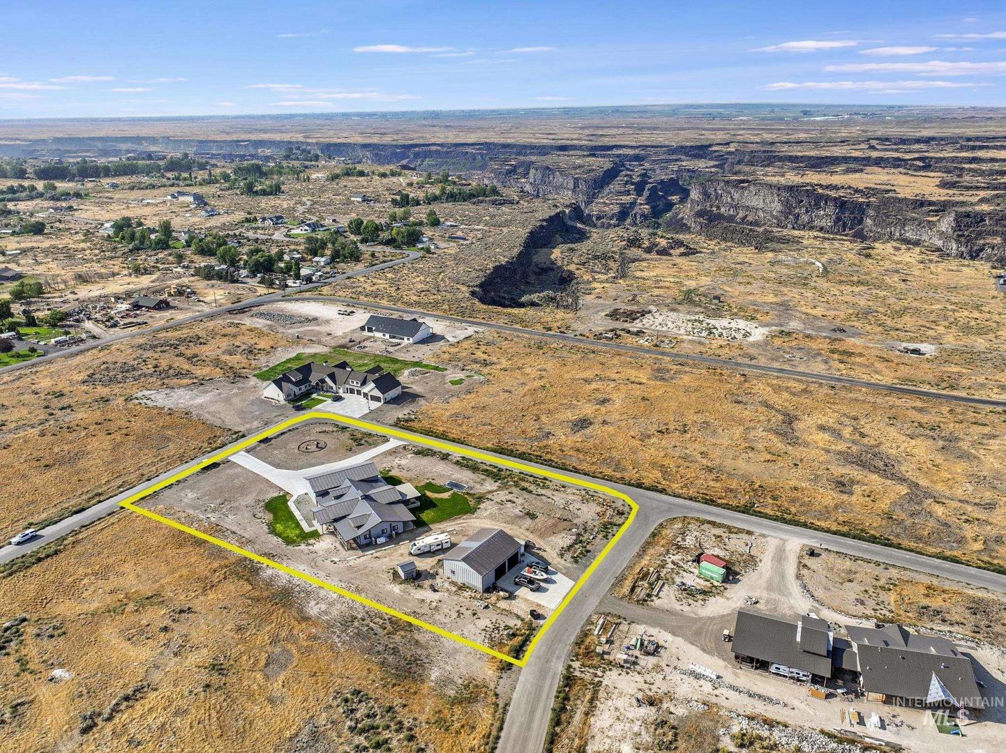 Stunning 4,404 sq ft home with breathtaking Snake River Canyon views and luxury finishes throughout! This 5-bedroom, 4-bath residence offers a spacious floor plan with a 9x13 custom pantry, in-home office/flex room, and even an extra shower in the laundry room for added convenience. The chef’s kitchen features high-end appliances and flows seamlessly to a massive 2,000 sq ft covered patio with a full outdoor kitchen—perfect for entertaining. The garage includes a 600 sq ft loft plus a gym area, while a 2,000 sq ft unfinished shop offers endless potential. Located minutes from Twin Falls Falls access, this property combines luxury, functionality, and unmatched views.